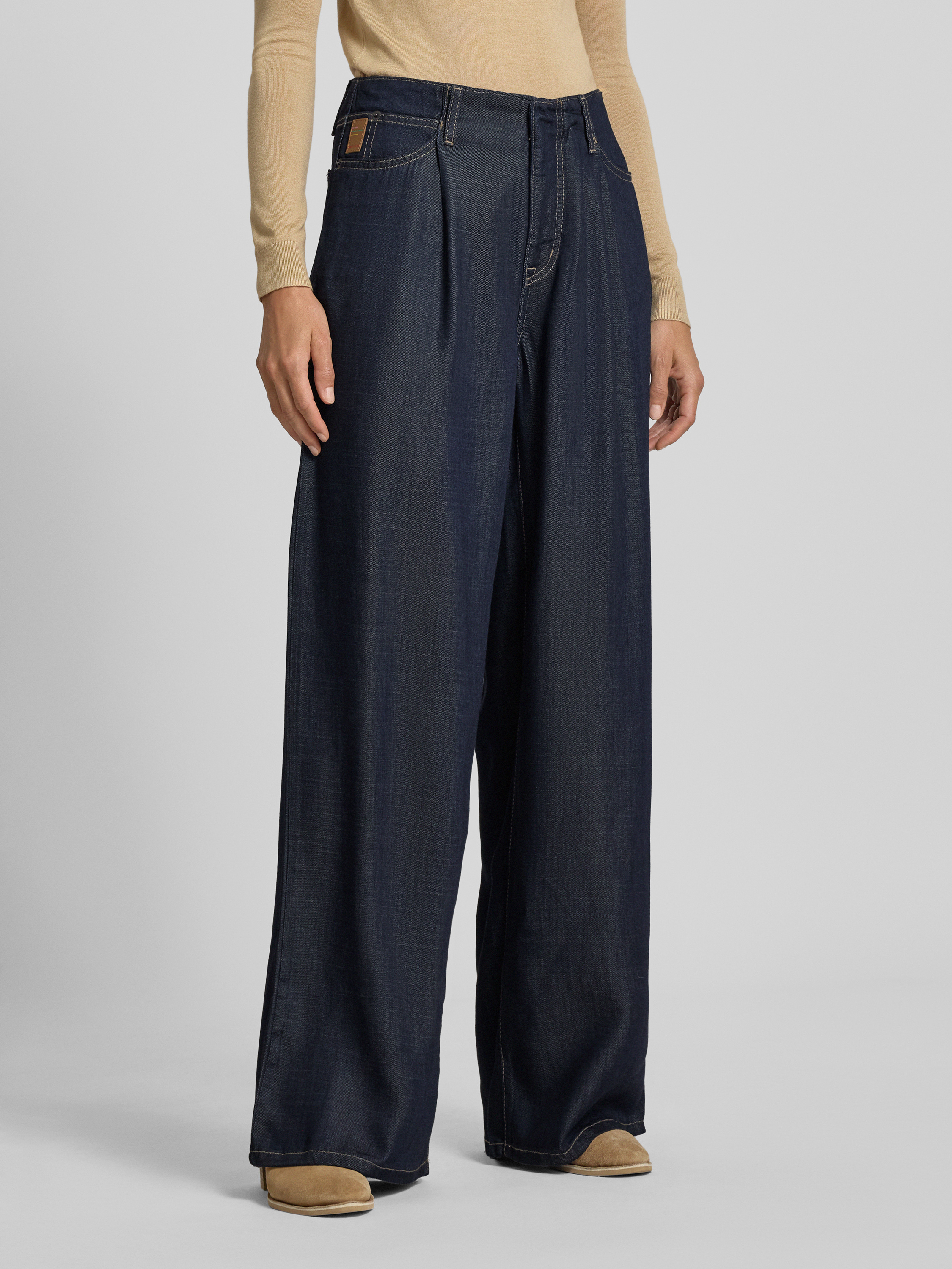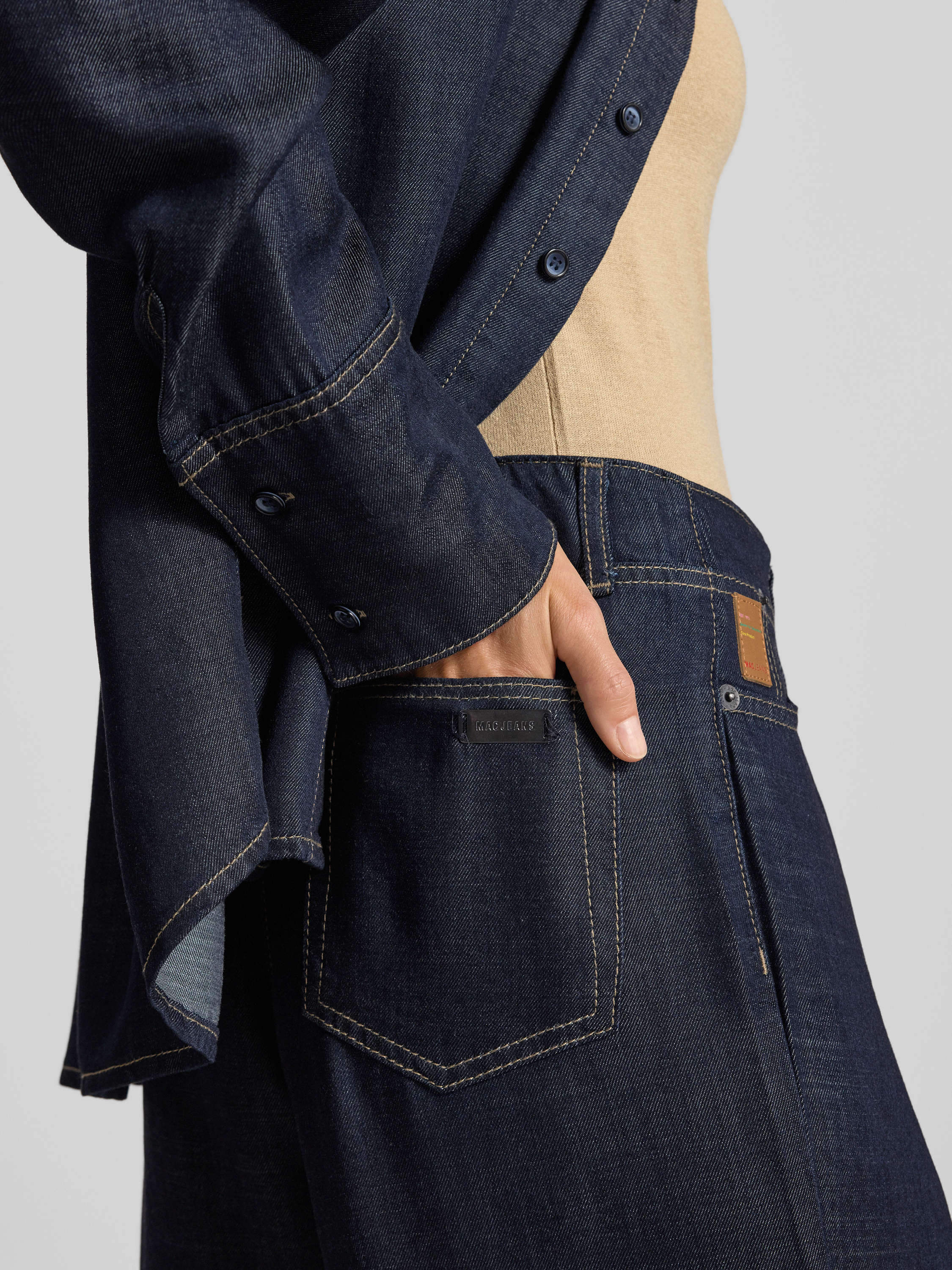 Jeansy z szerokimi nogawkami i wpuszczanymi kieszeniami model ‘NAILA’ - ciemnoniebieski