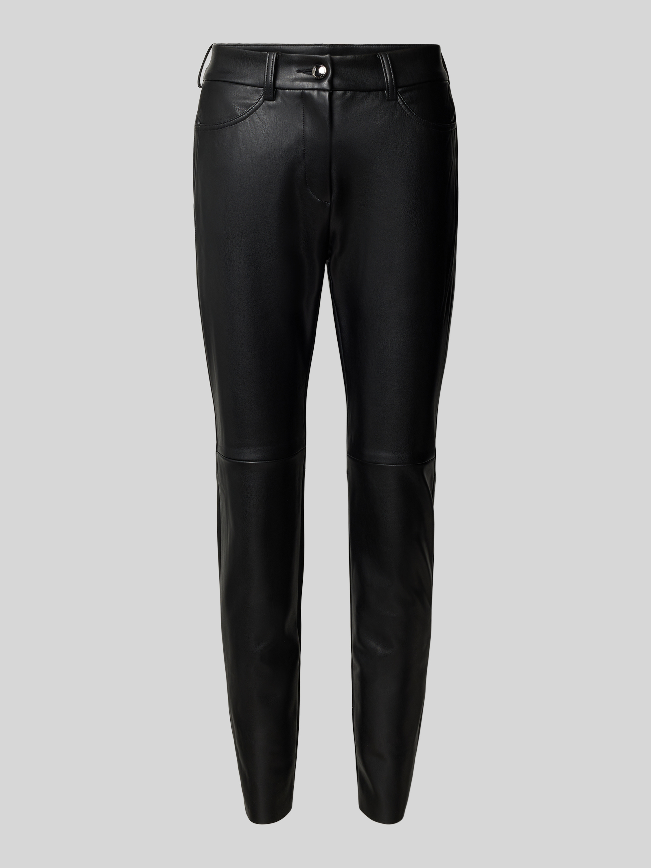 Spodnie materiałowe o kroju slim fit z imitacji skóry model ‘Vegan’ - czarny