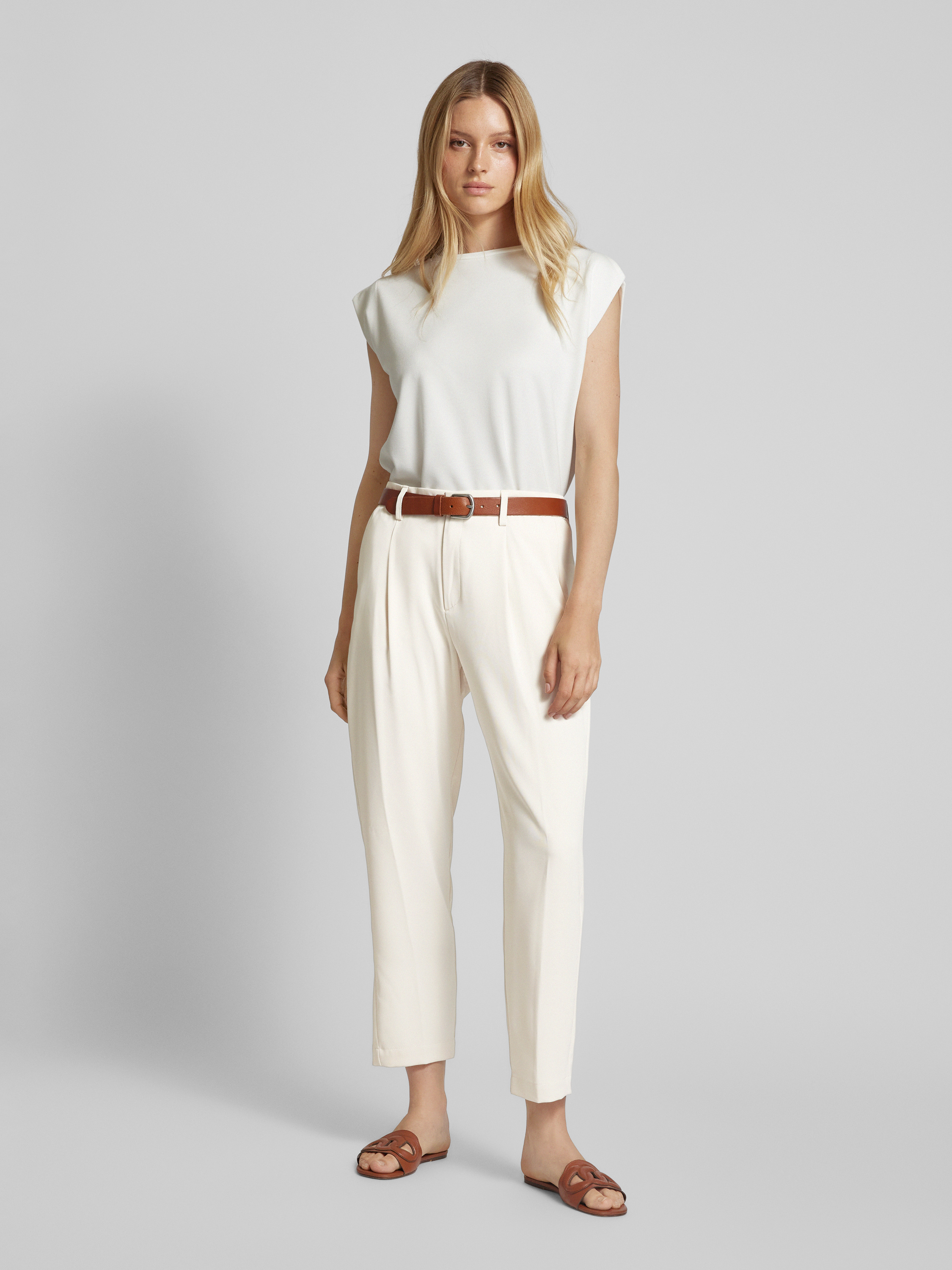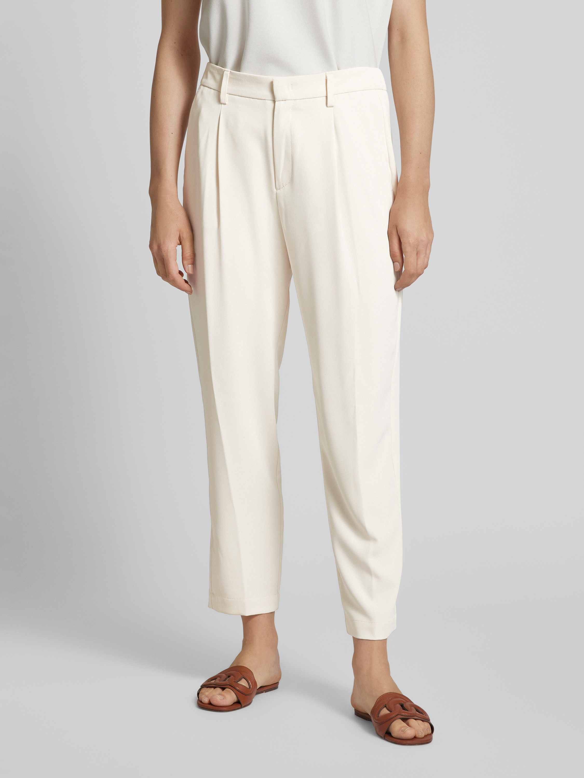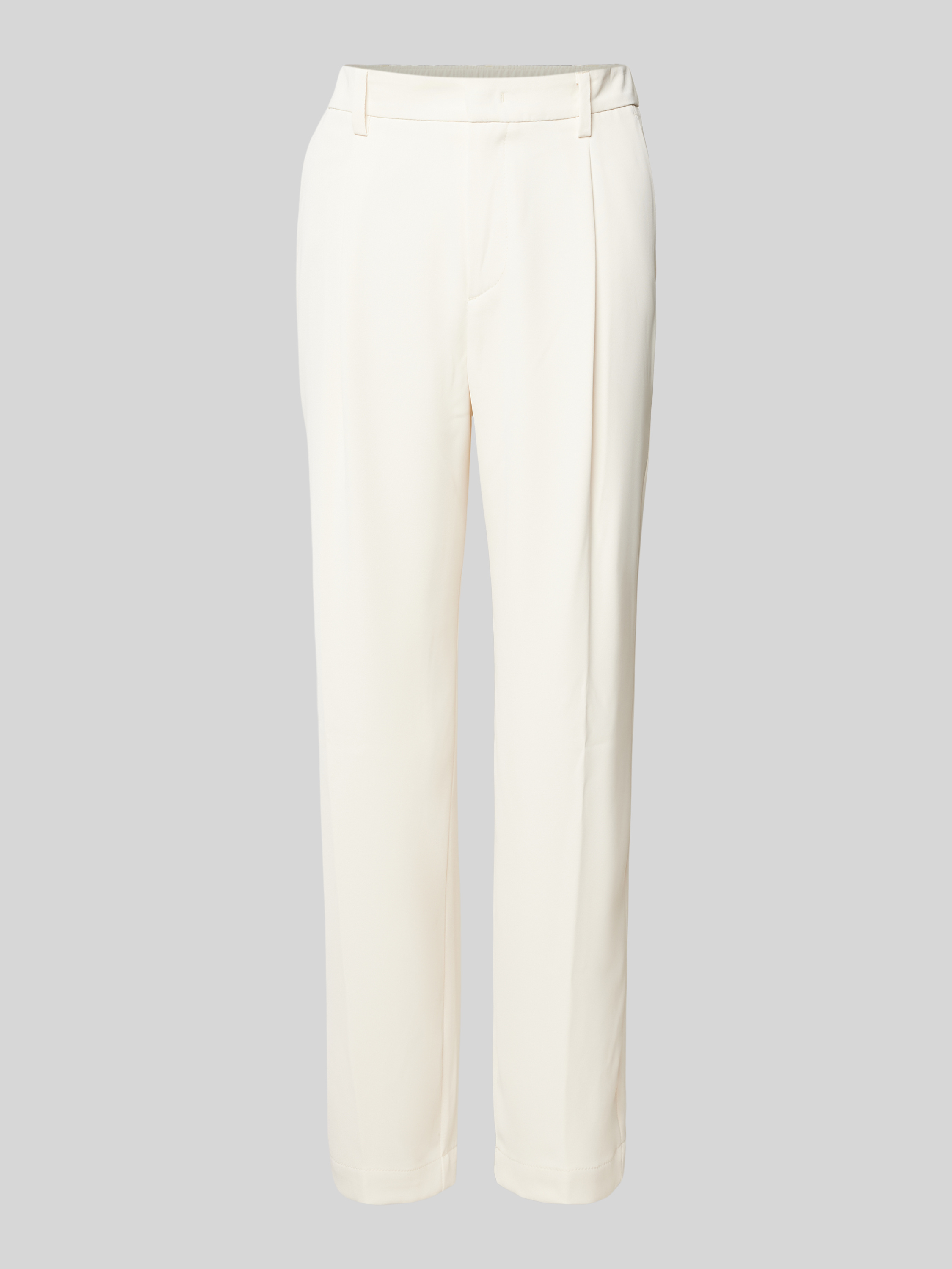 Spodnie o kroju regular fit z zakładkami w pasie i szlufkami na pasek model ‘Calla’ - złamany biały