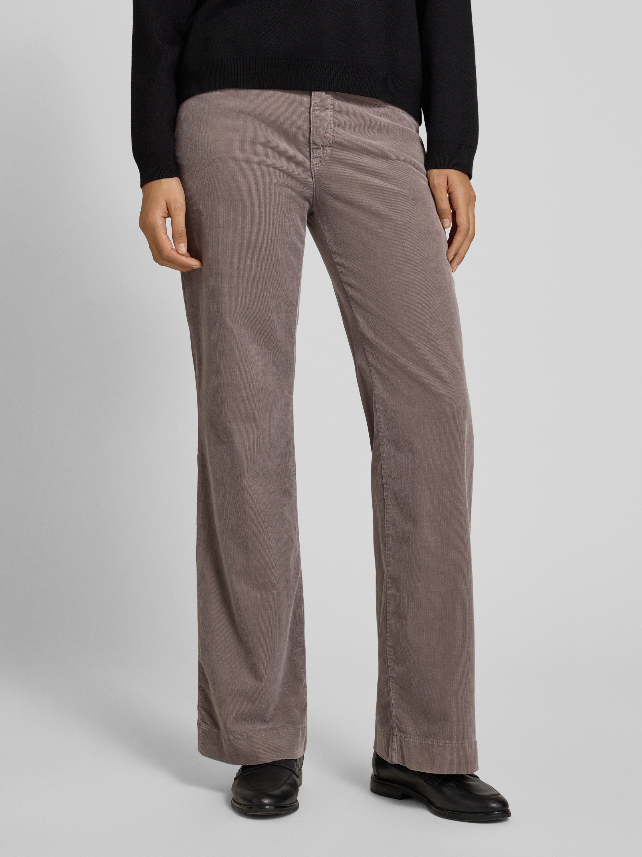 Spodnie sztruksowe z szerokimi nogawkami i wpuszczanymi kieszeniami - szarobrązowy