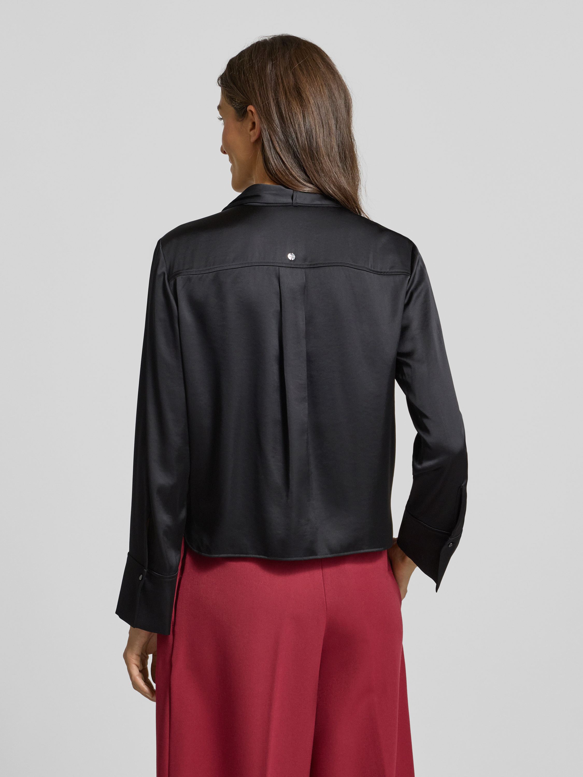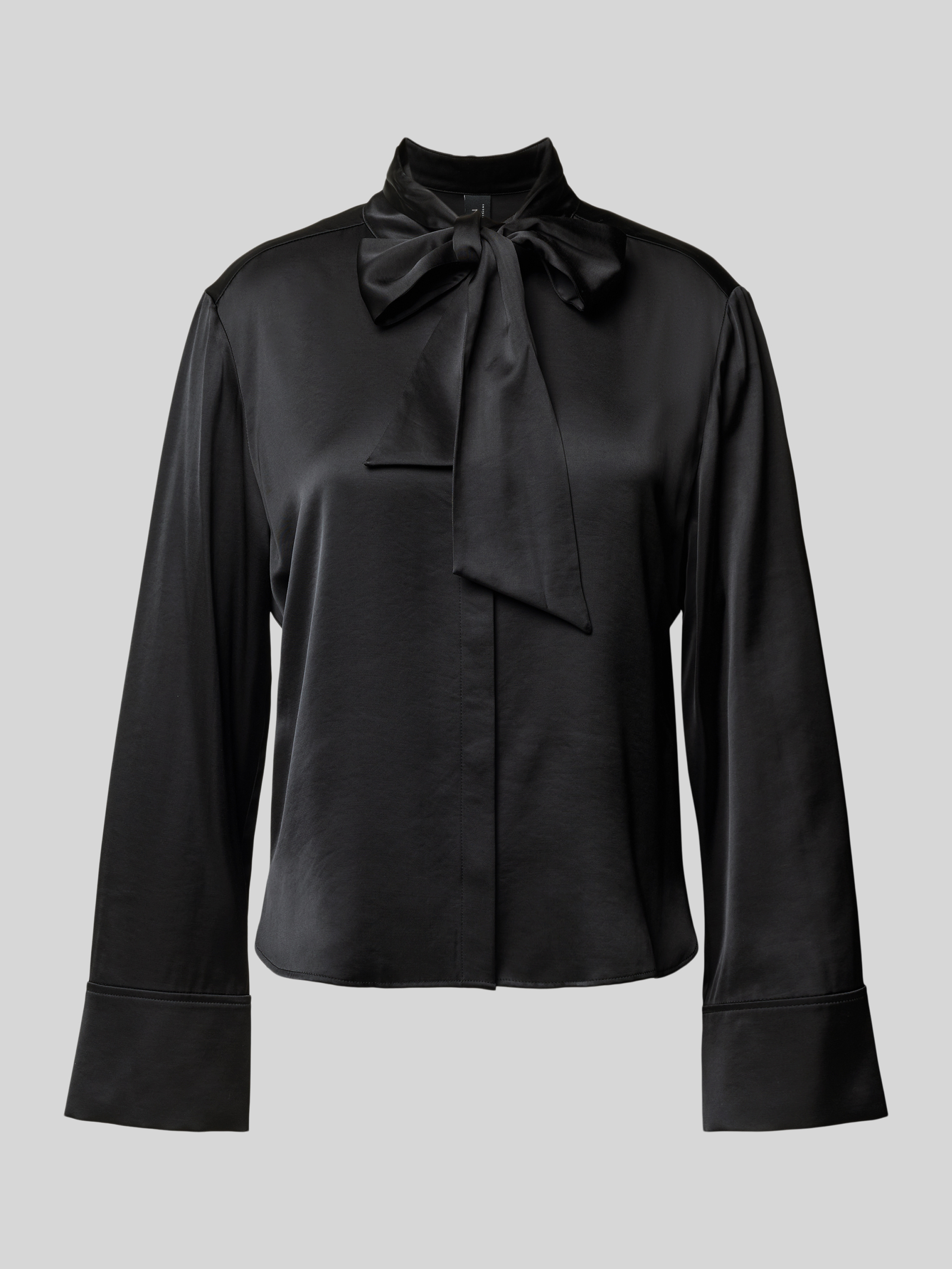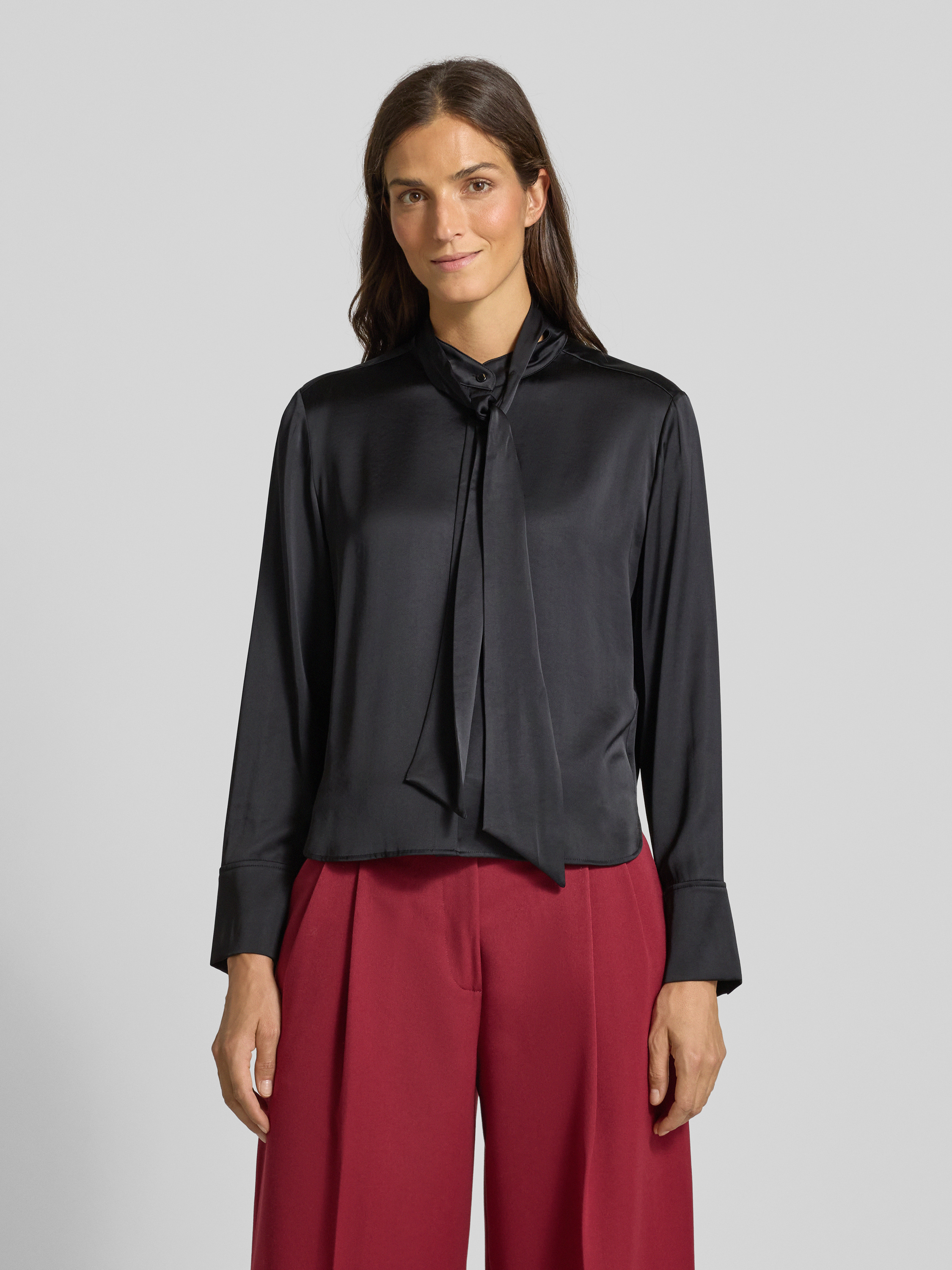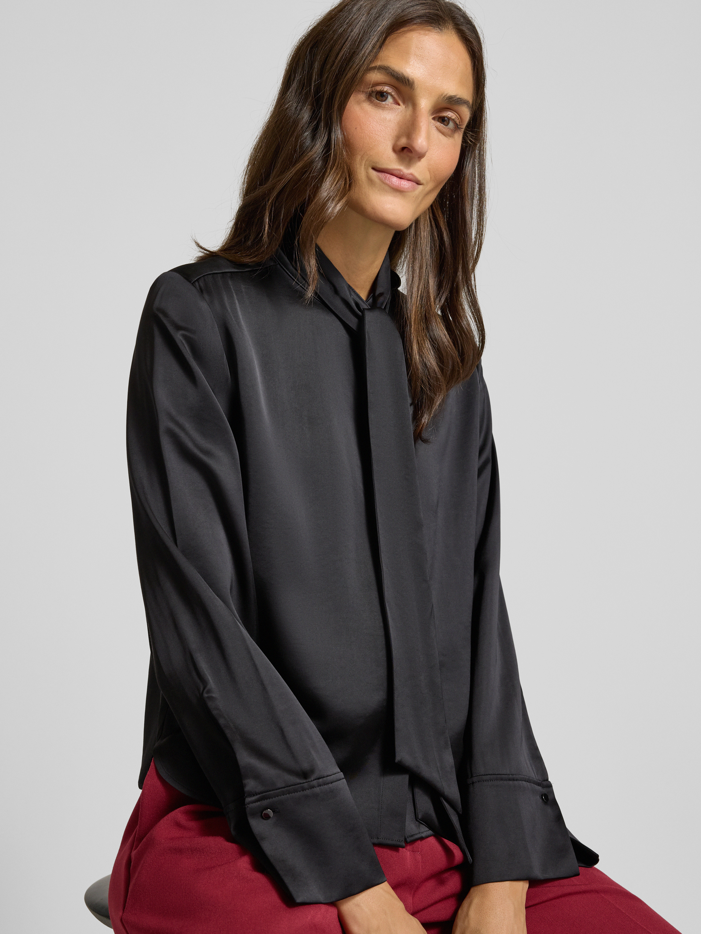 Bluzka o kroju regular fit wiązaniem pod szyją i krytą listwą guzikową - czarny
