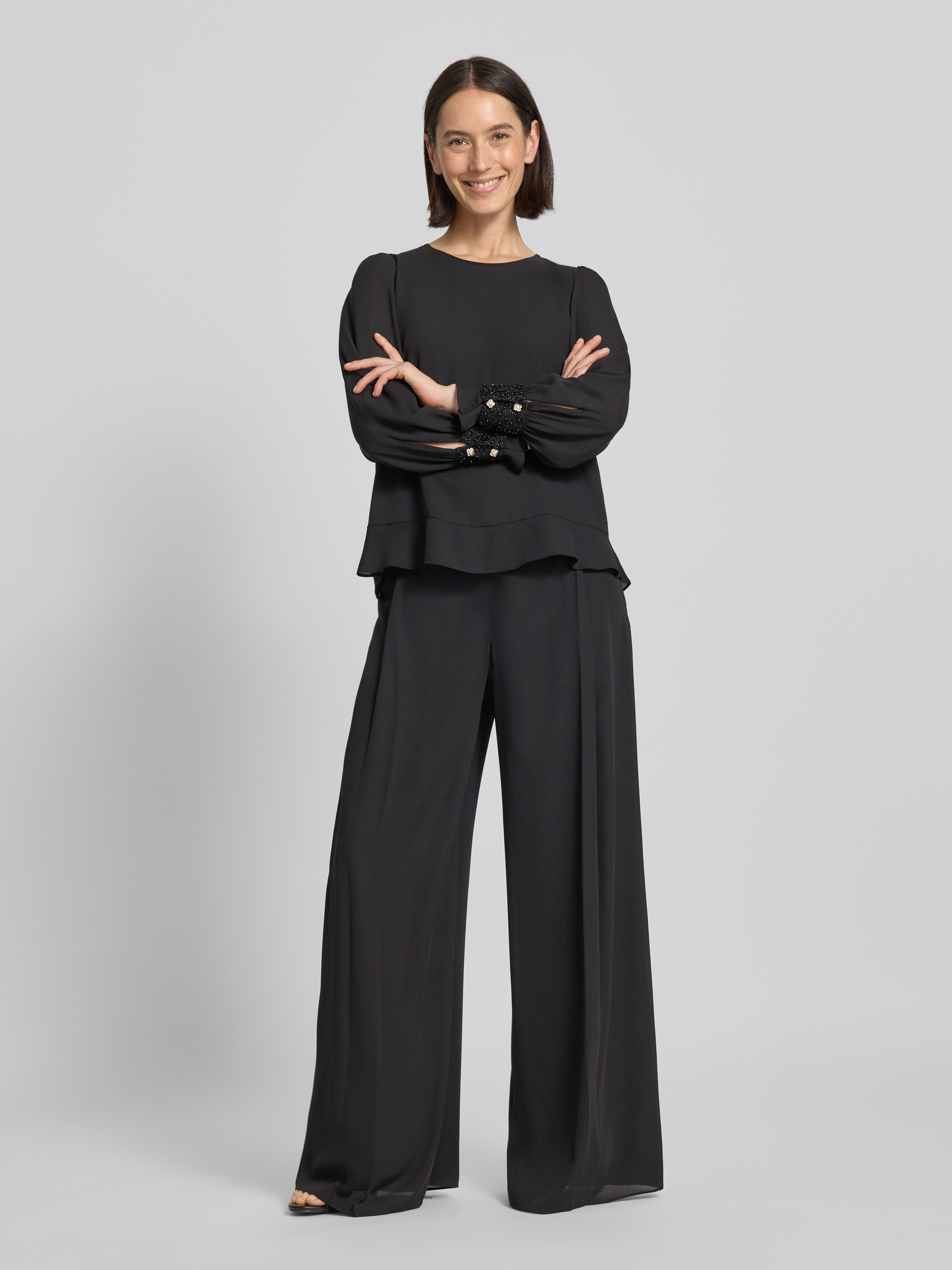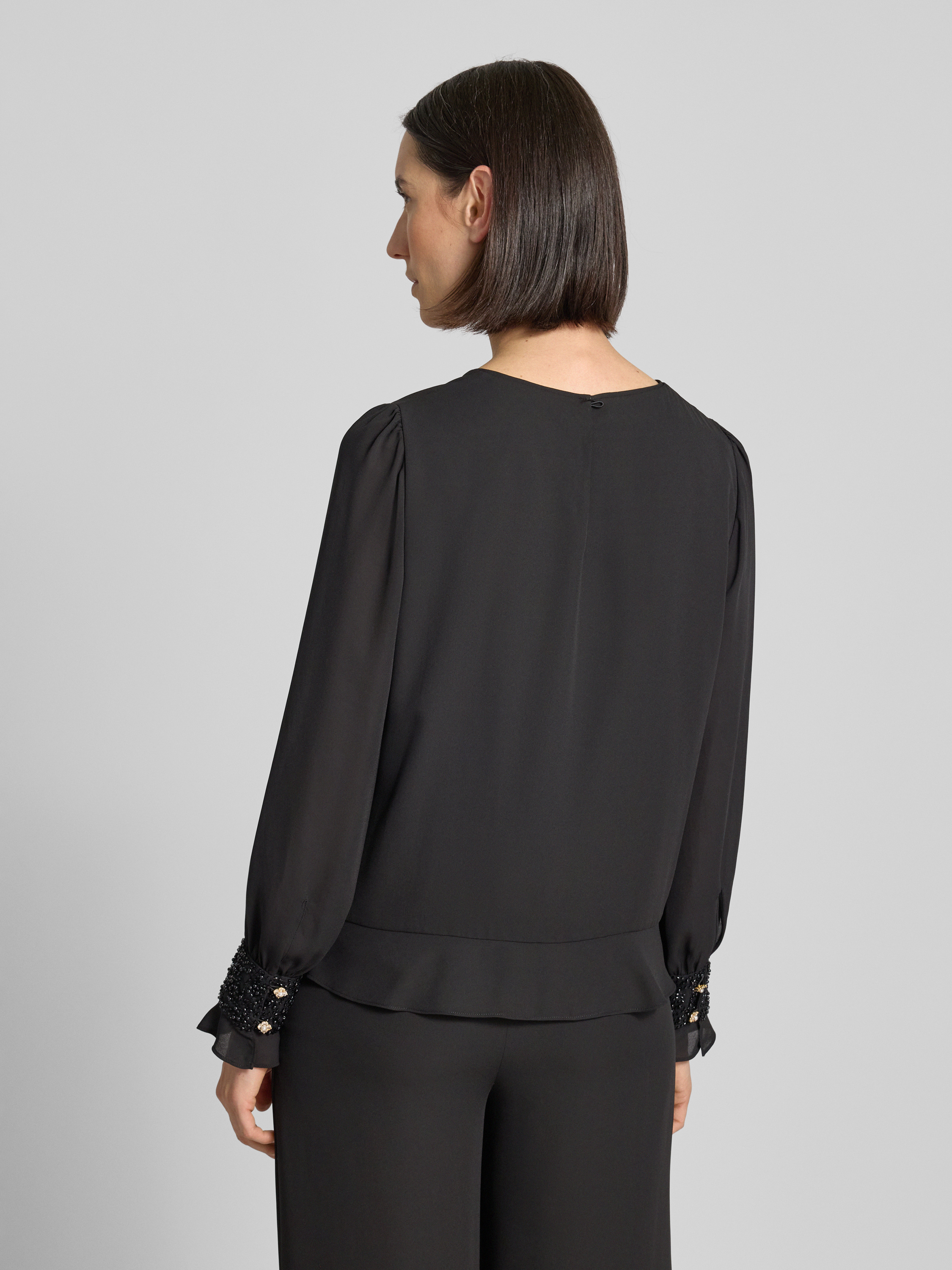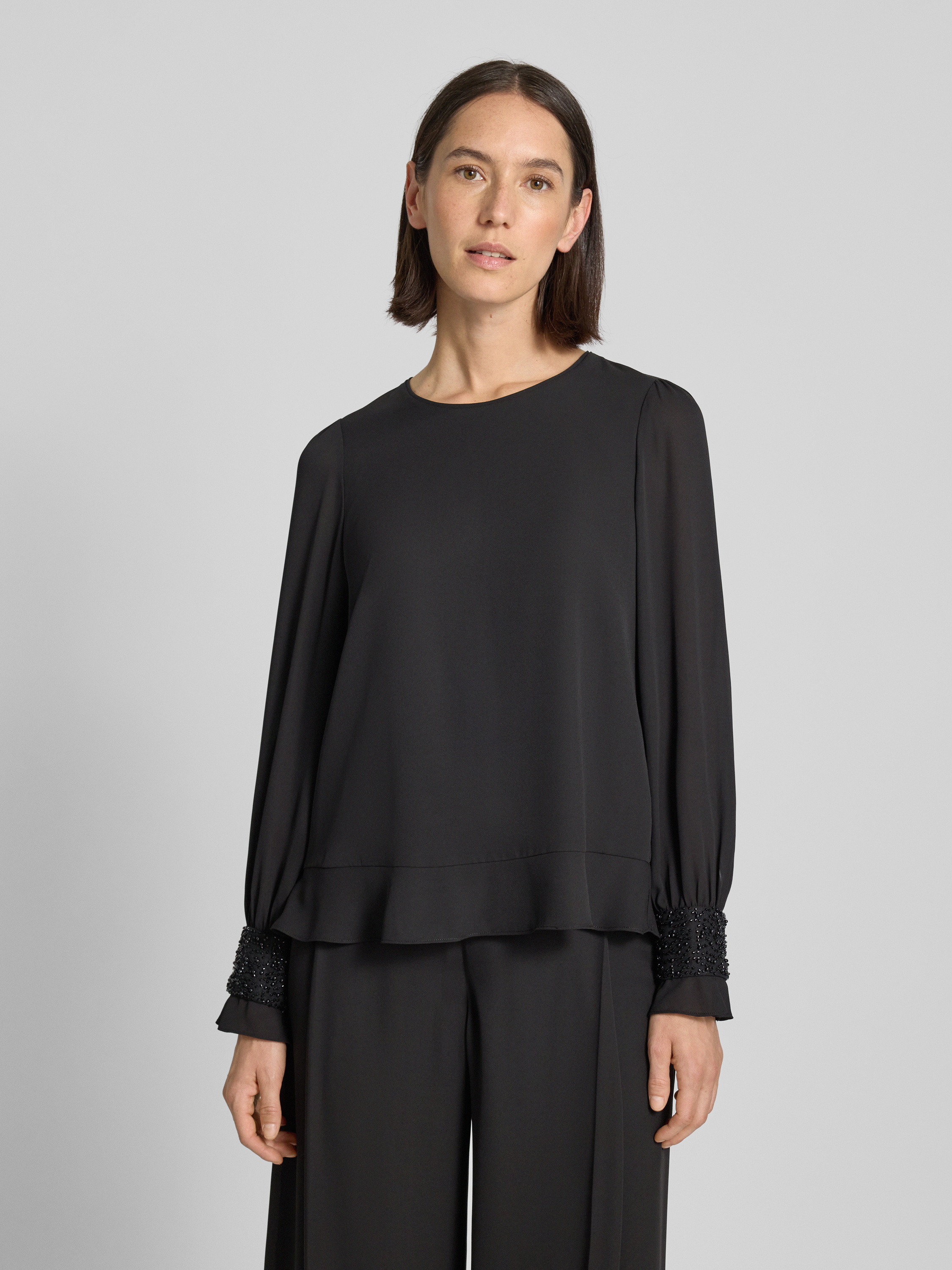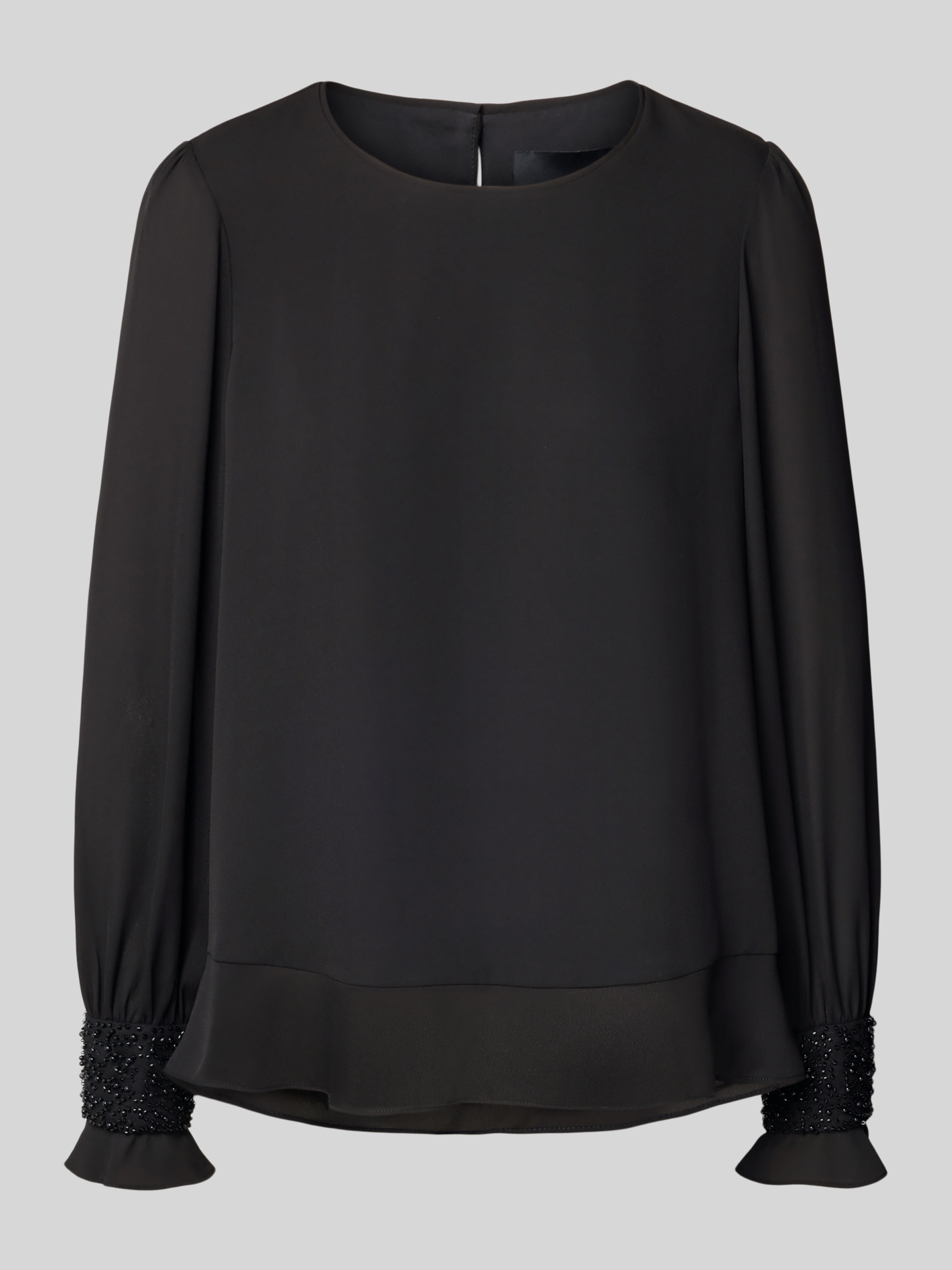 Bluzka o kroju regular fit z perełkami i okrągłym dekoltem - czarny
