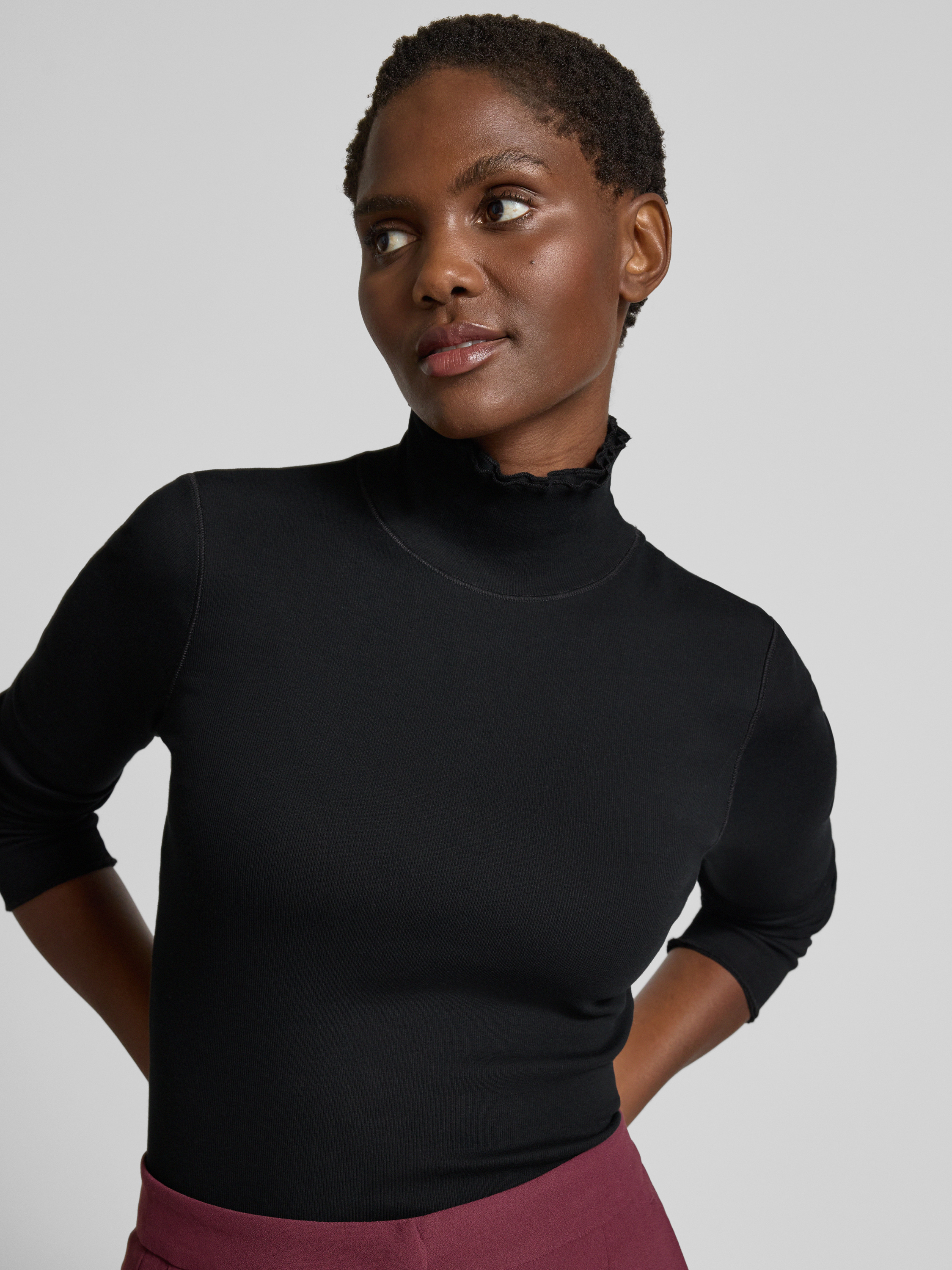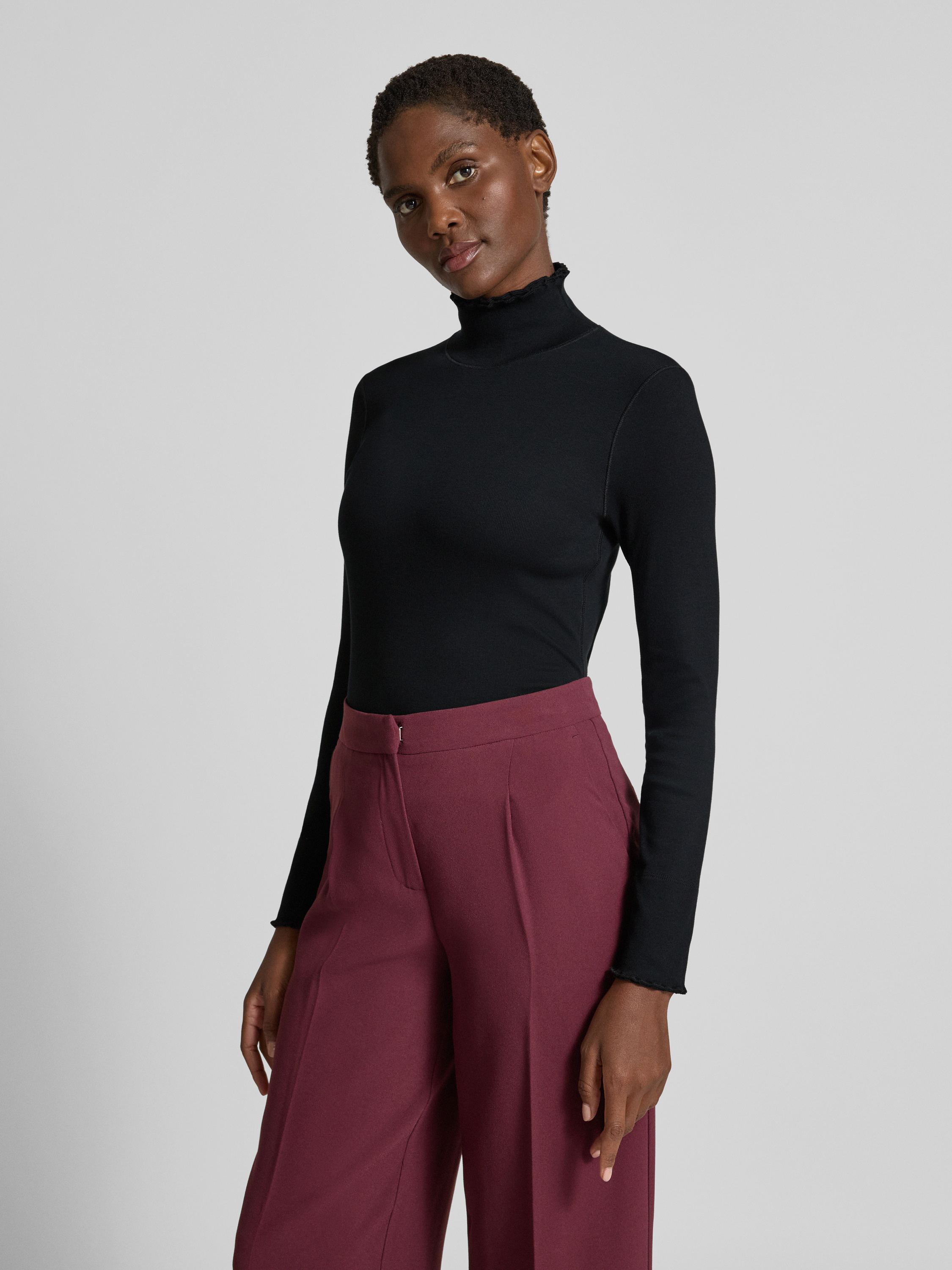 Bluzka z długim rękawem ze stójką - czarny