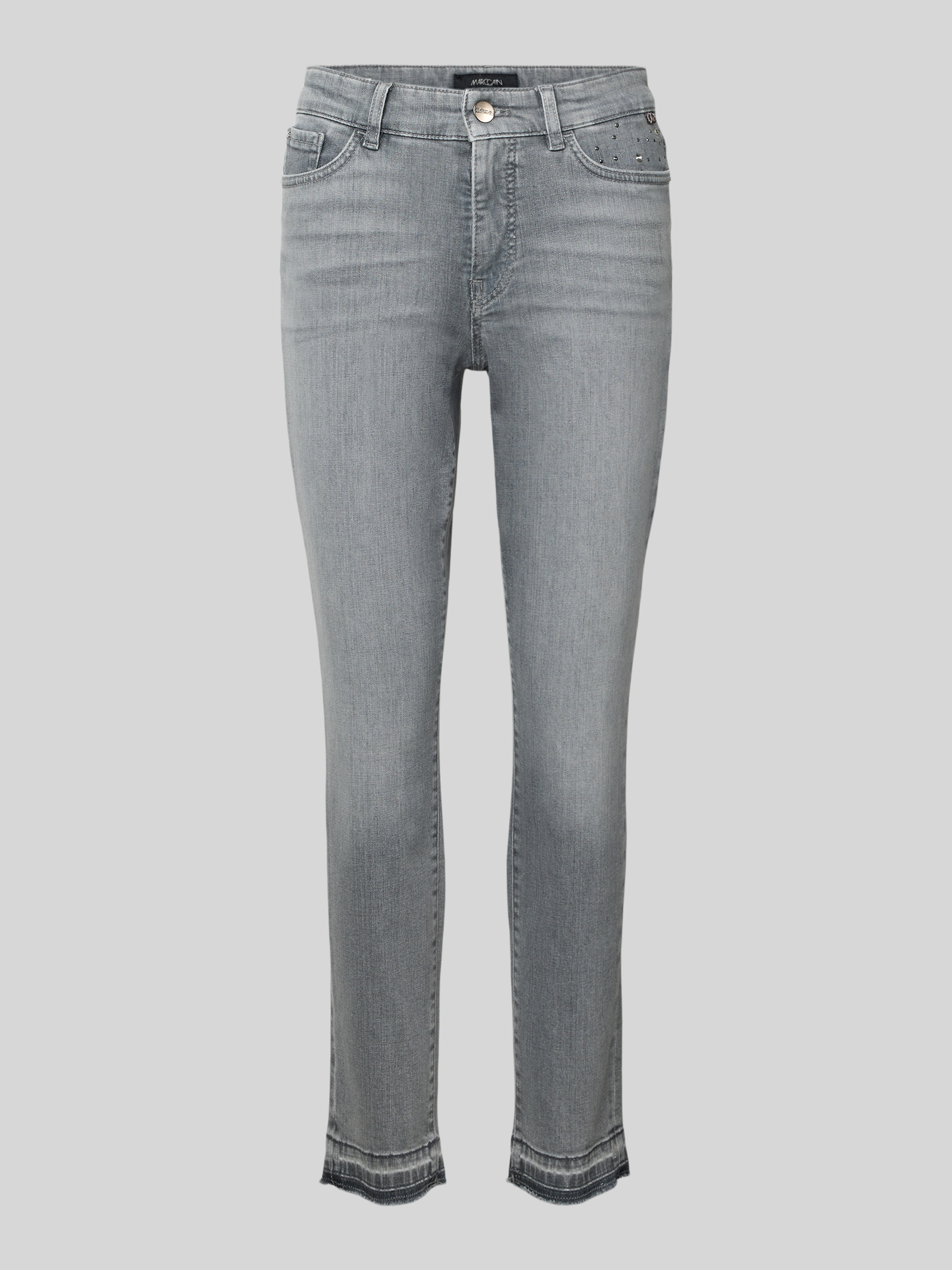 Jeansy o kroju slim fit z efektem znoszenia i ozdobnymi kamieniami - jasnoszary