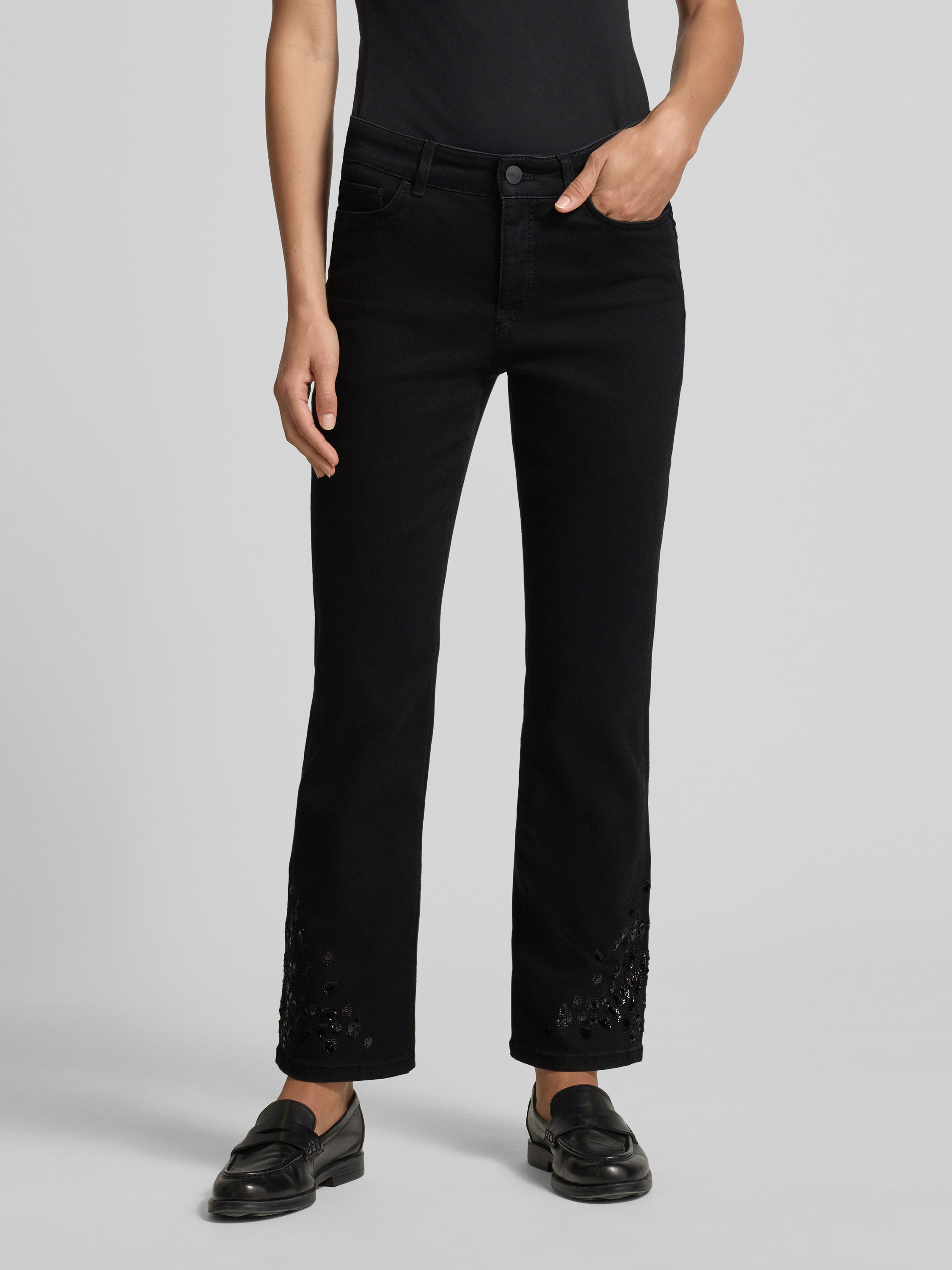 Jeansy rozkloszowane z 5 kieszeniami - czarny