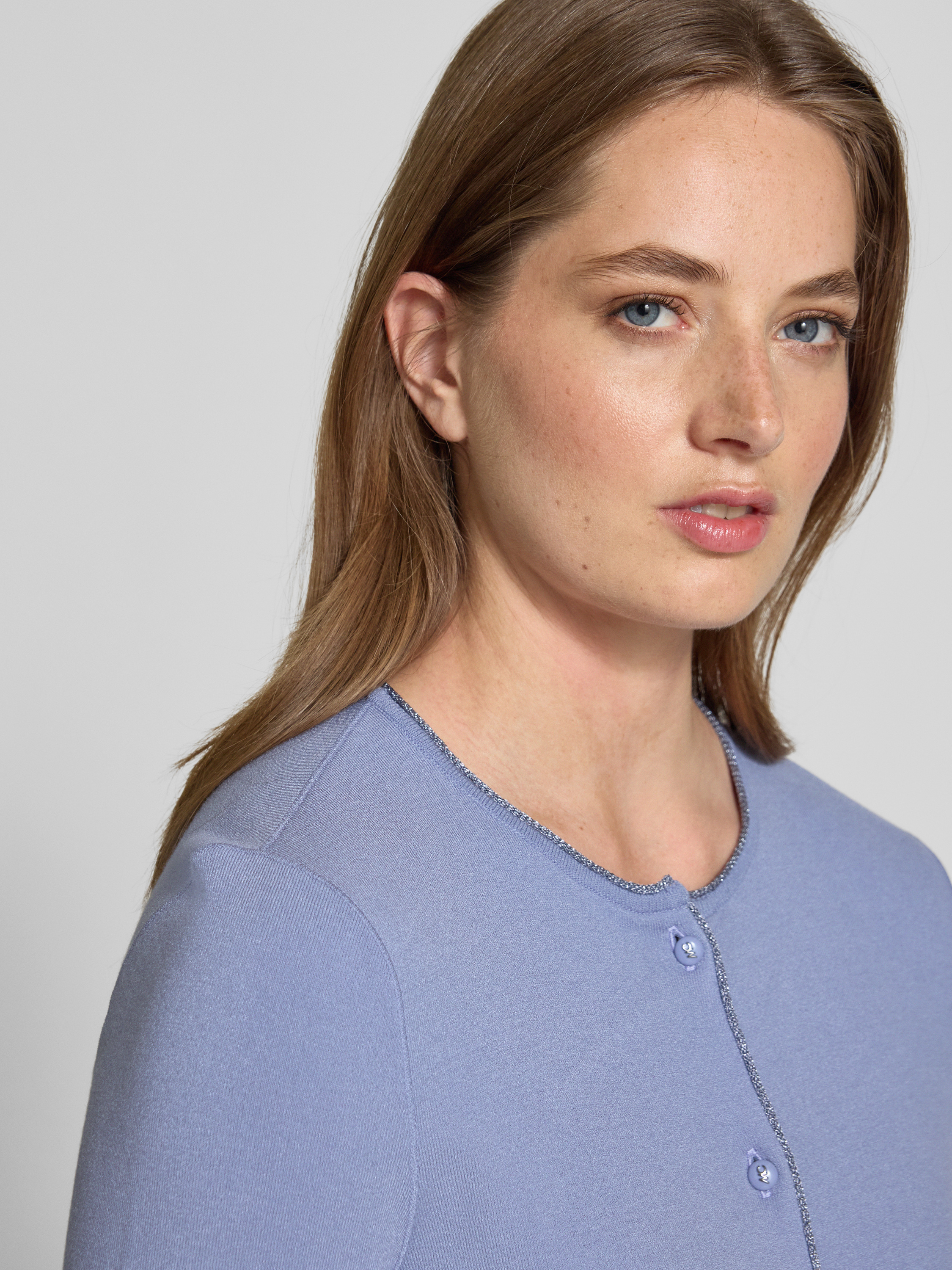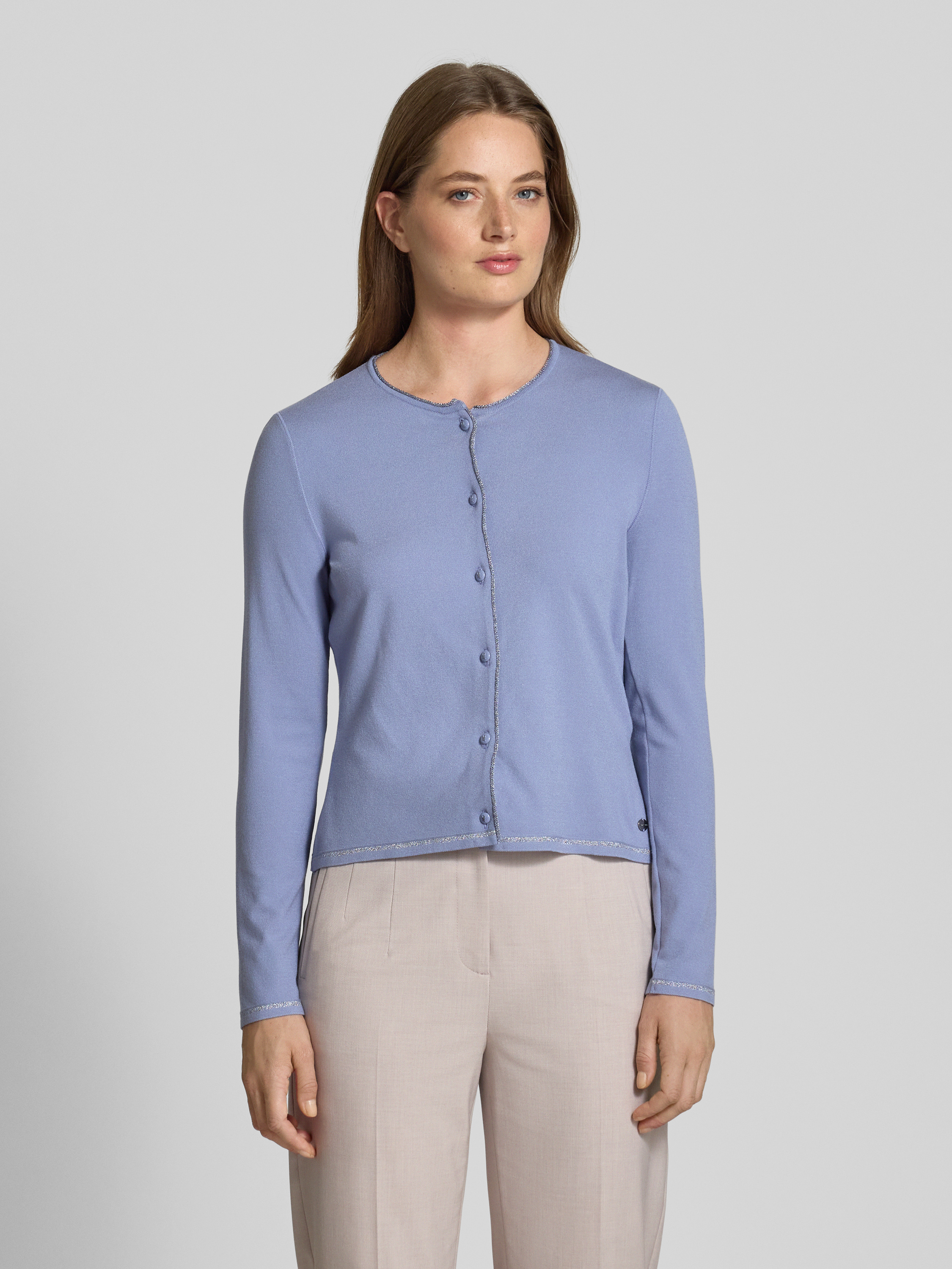 Kurtka z dzianiny z mieszanki wiskozy z okrągłym dekoltem - lawendowy