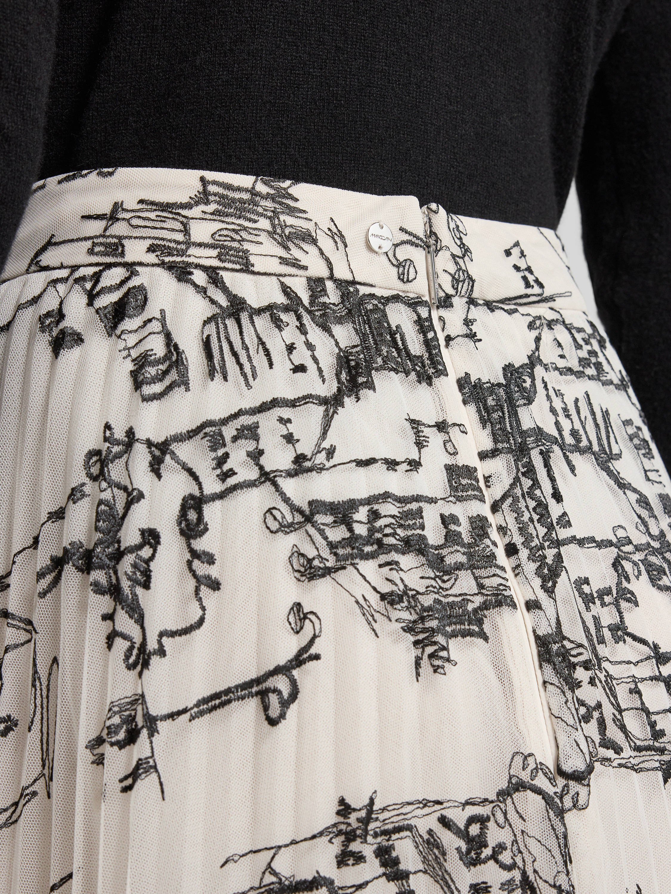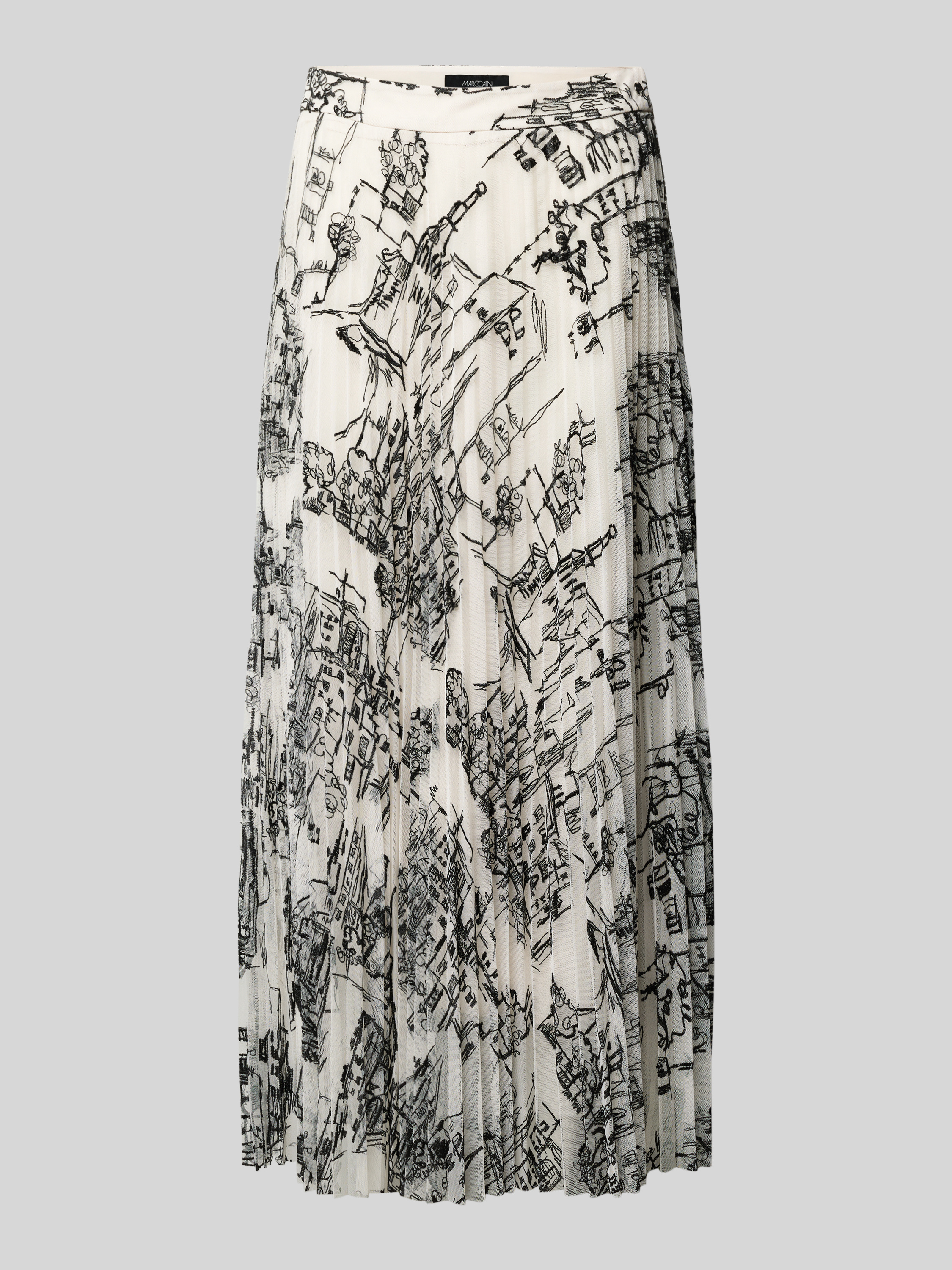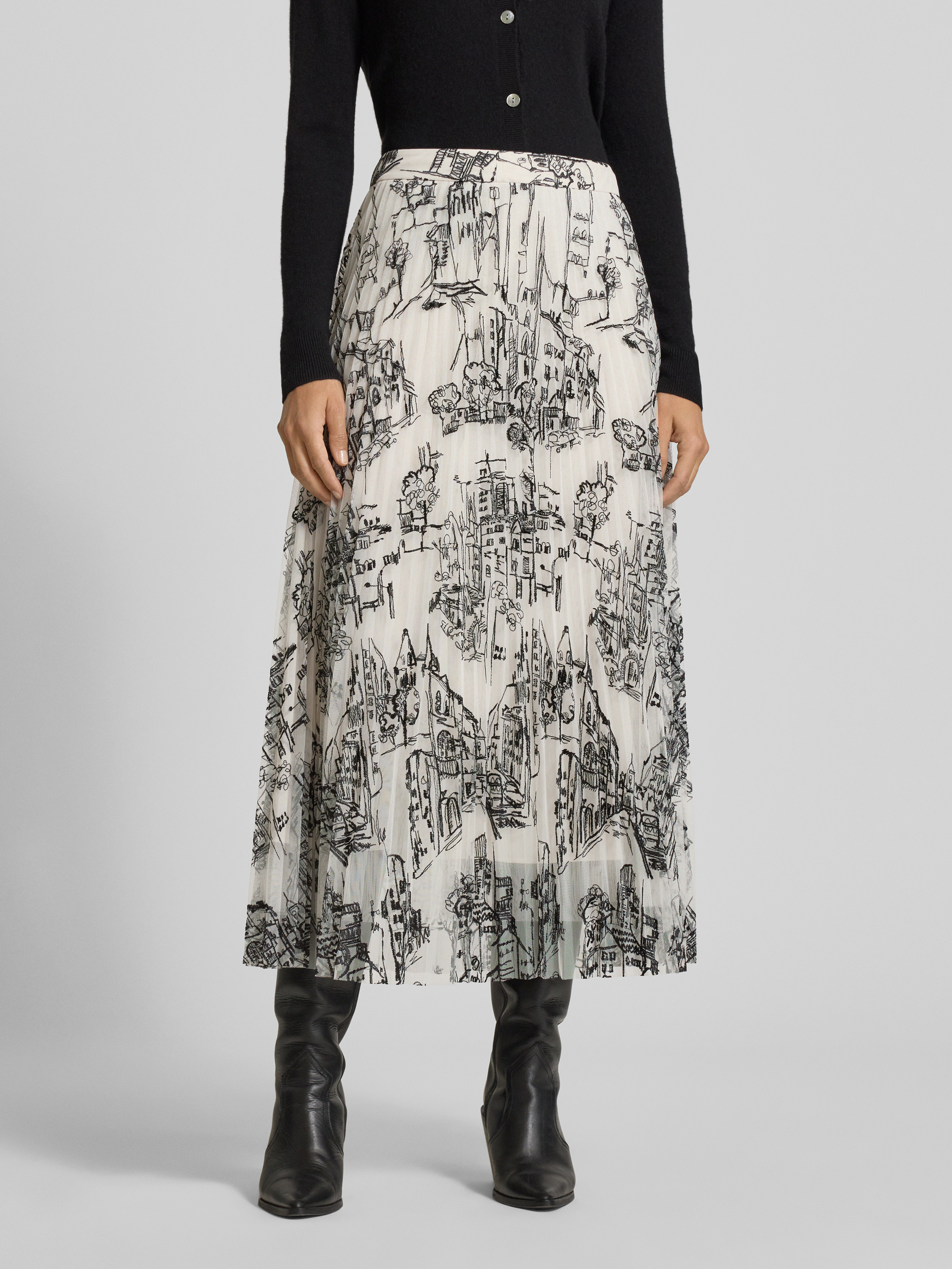 Spódnica midi ze wzorem na całej powierzchni - piaskowy