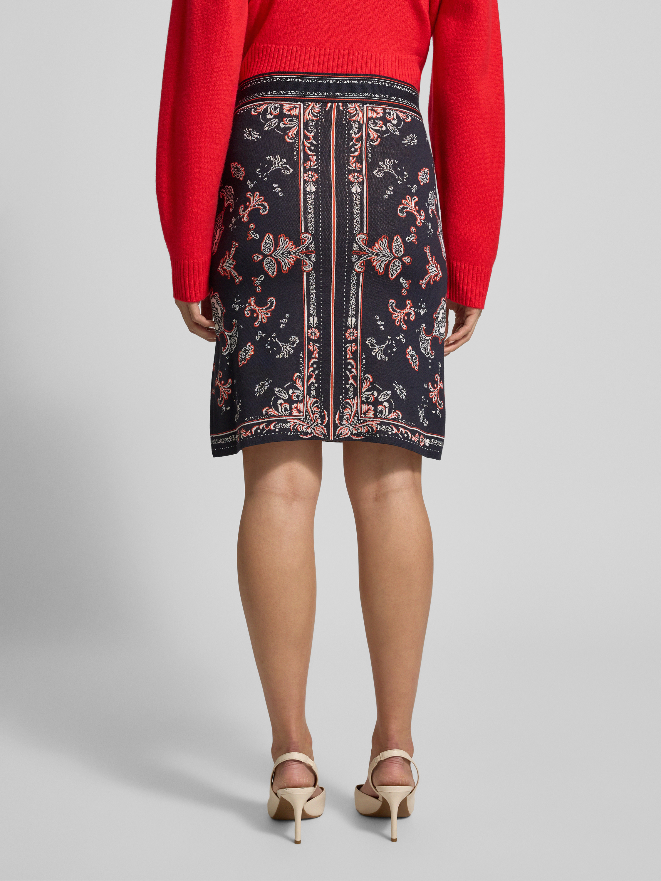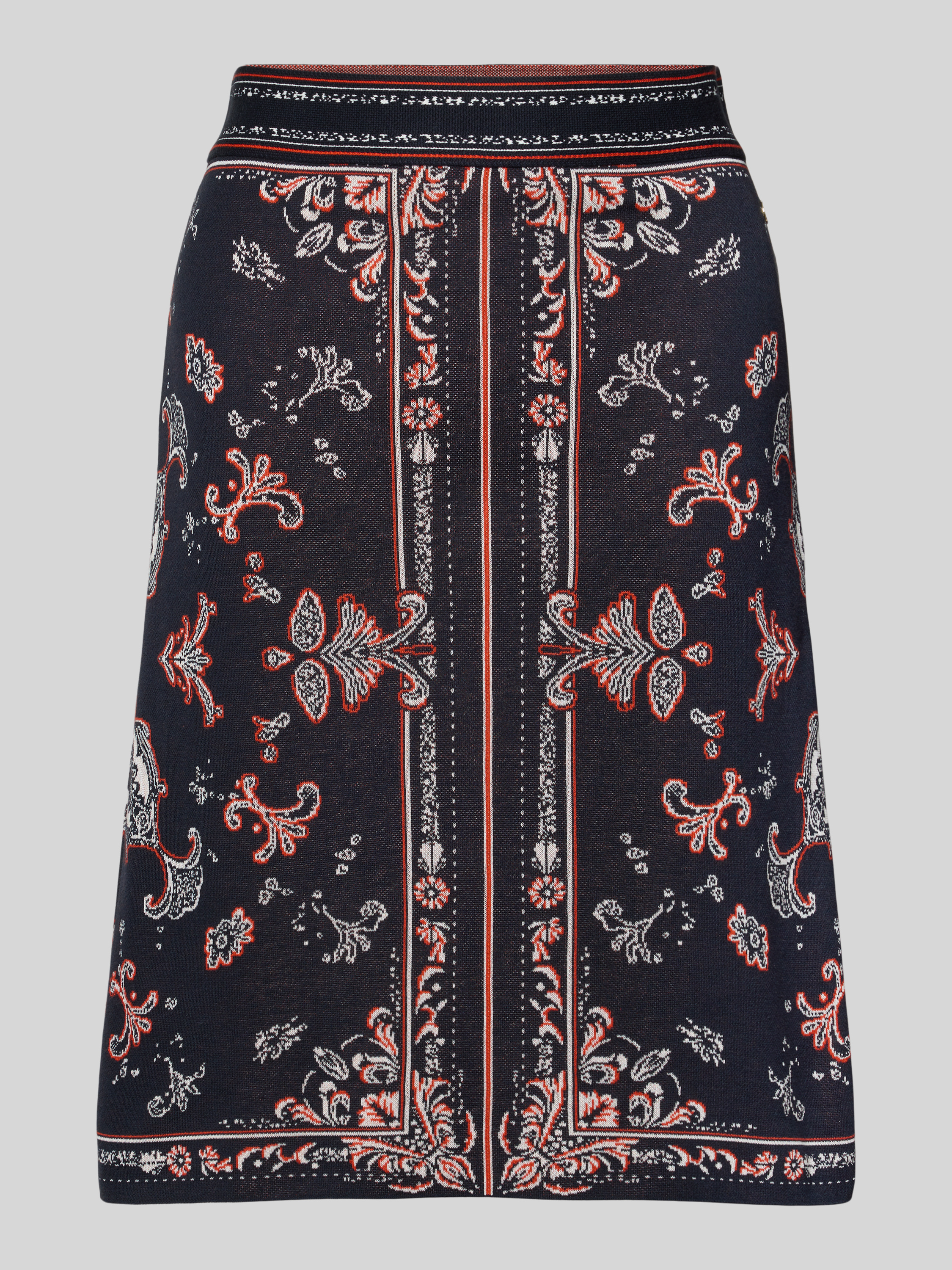 Spódnica o długości do kolan z dzianiny ze wzorem na całej powierzchni - granatowy