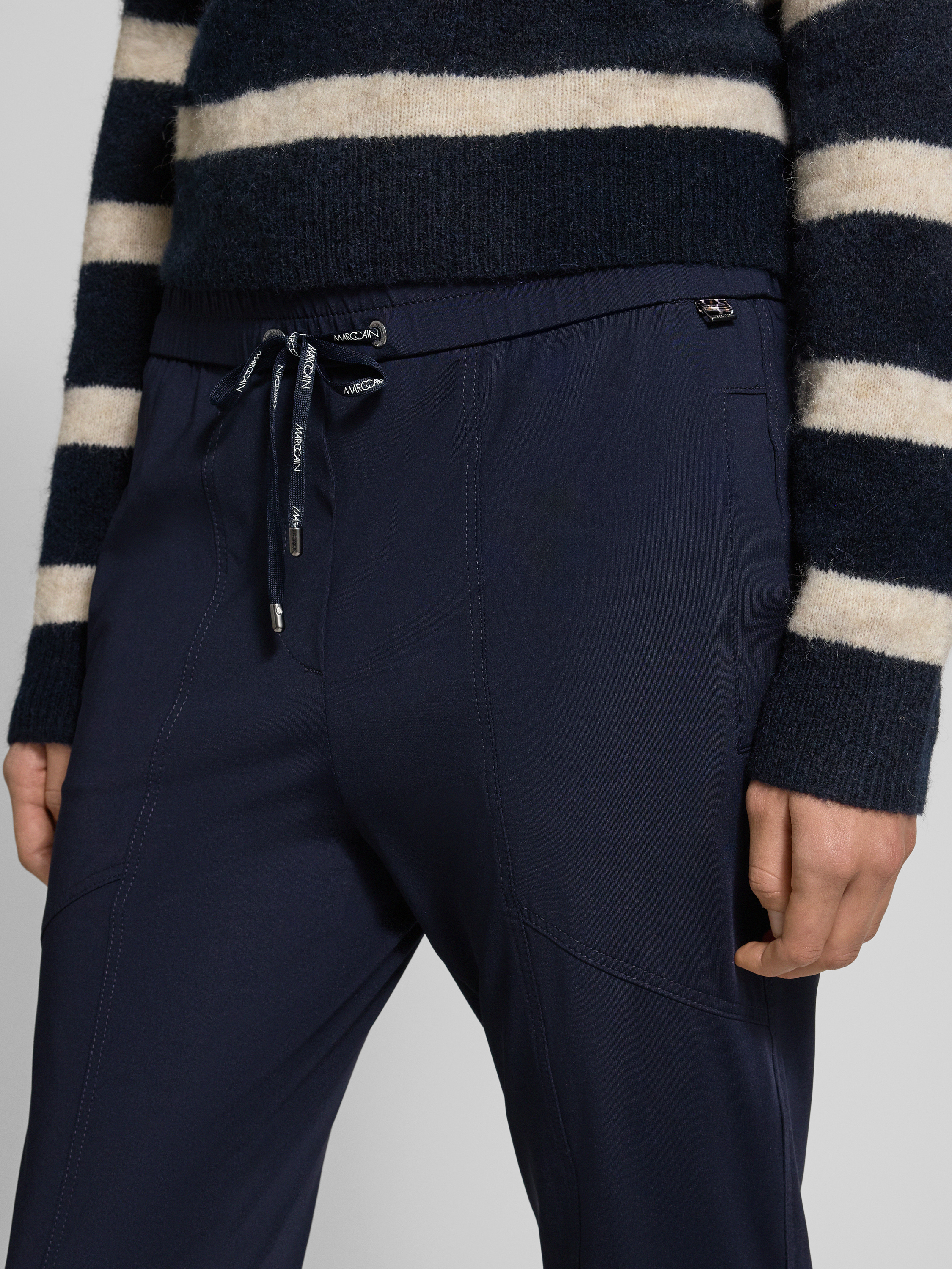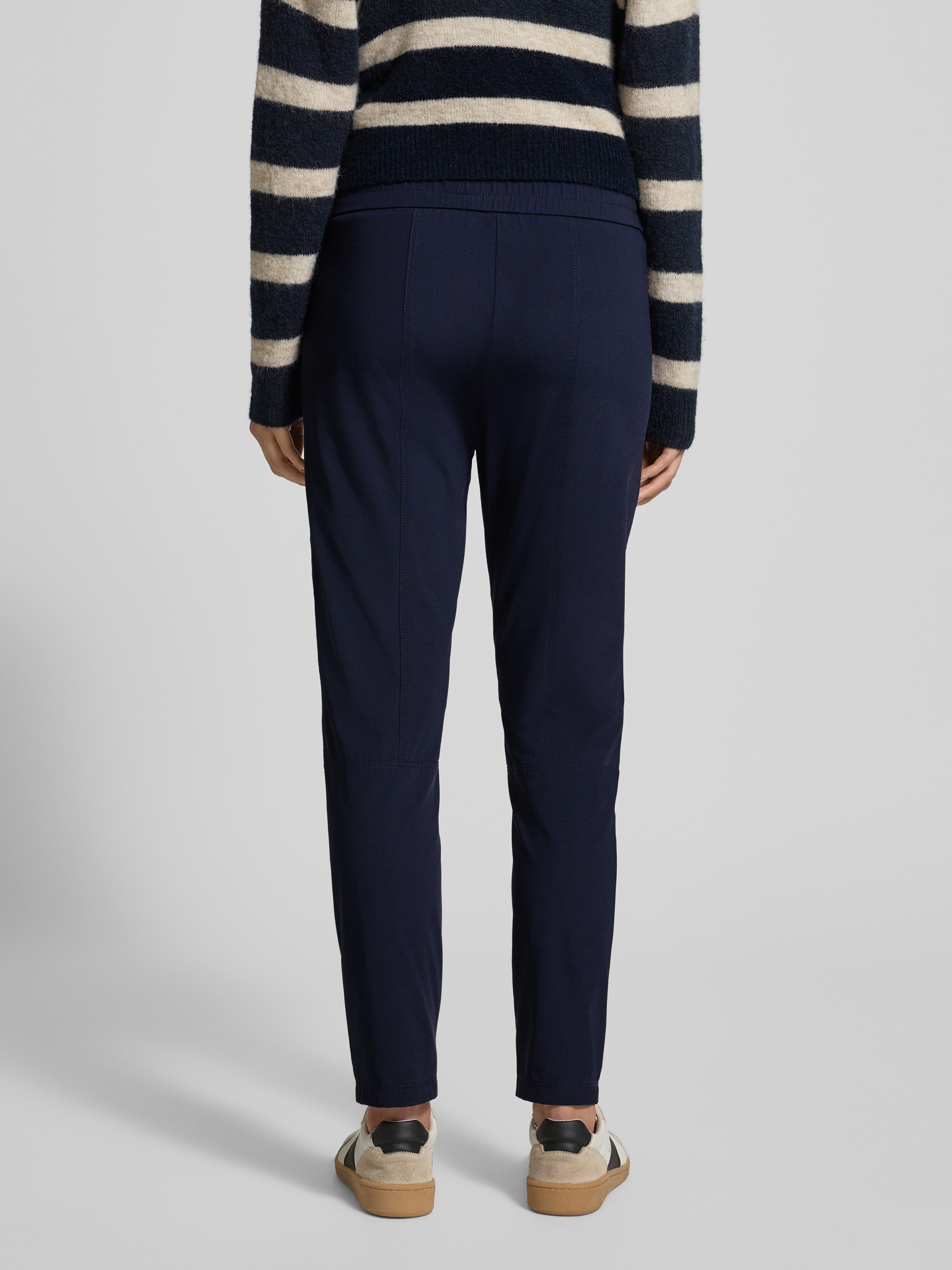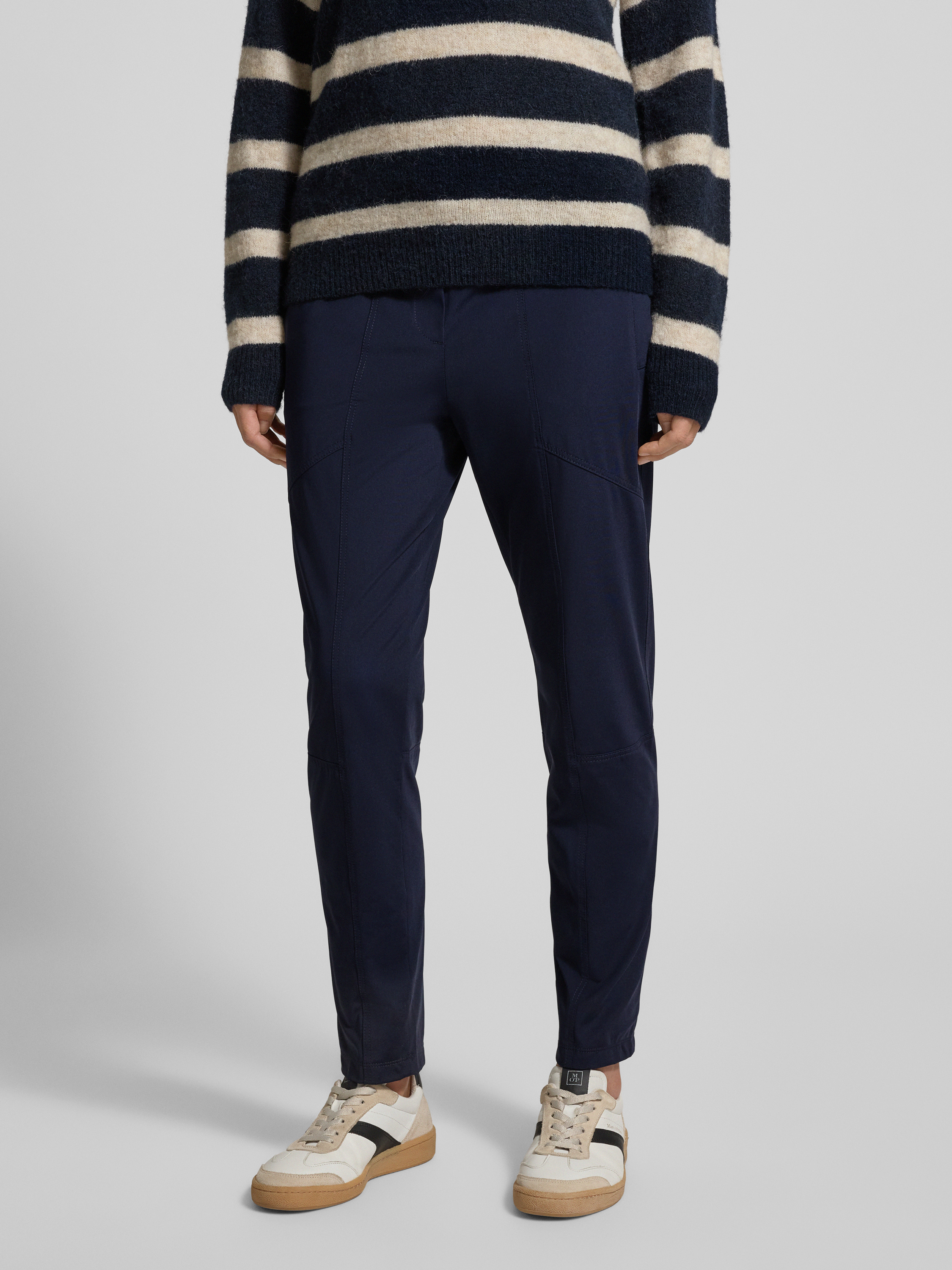 Spodnie materiałowe o kroju slim fit z kieszeniami zapinanymi na zamek błyskawiczny - granatowy