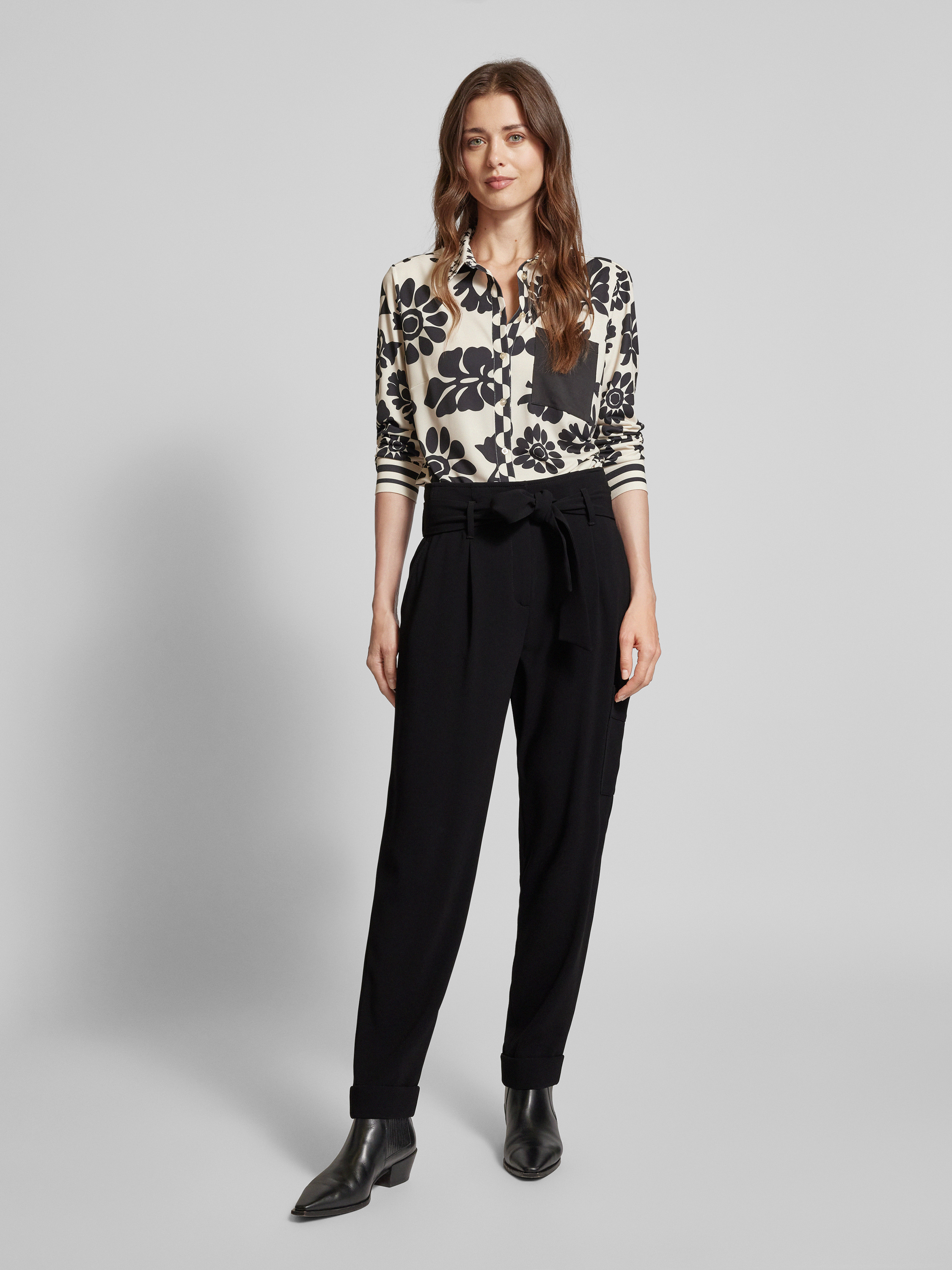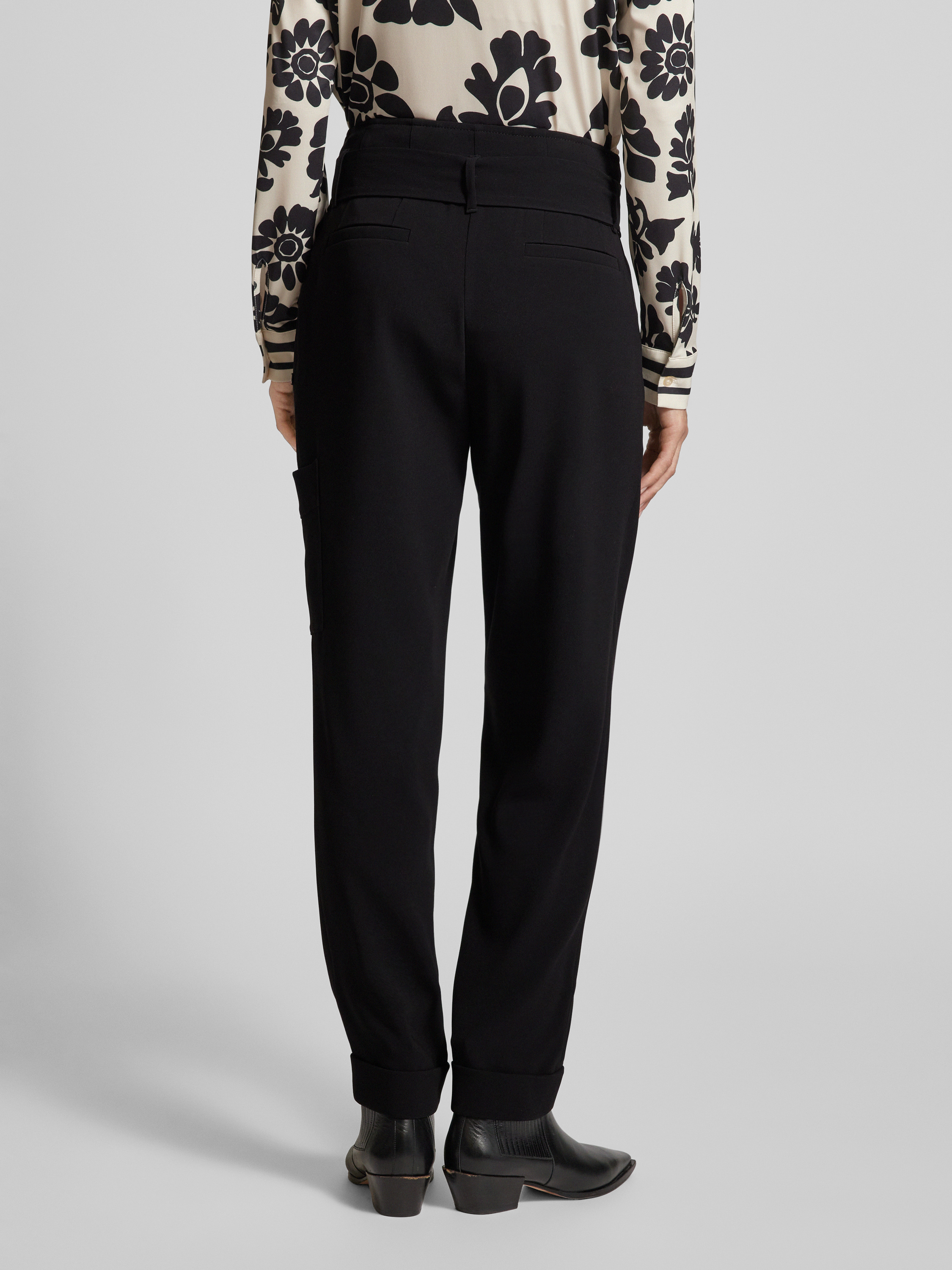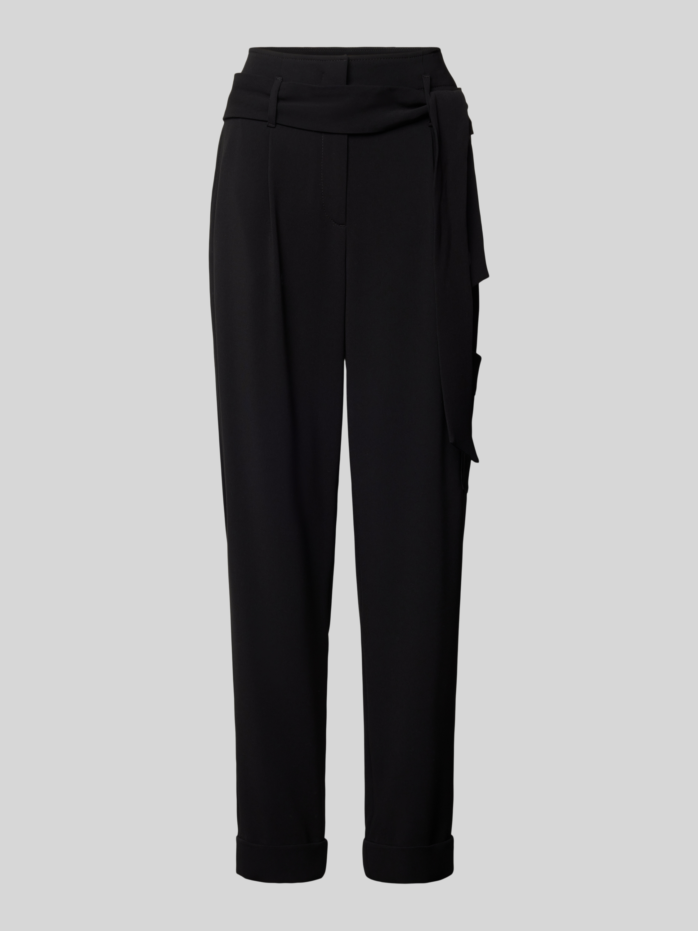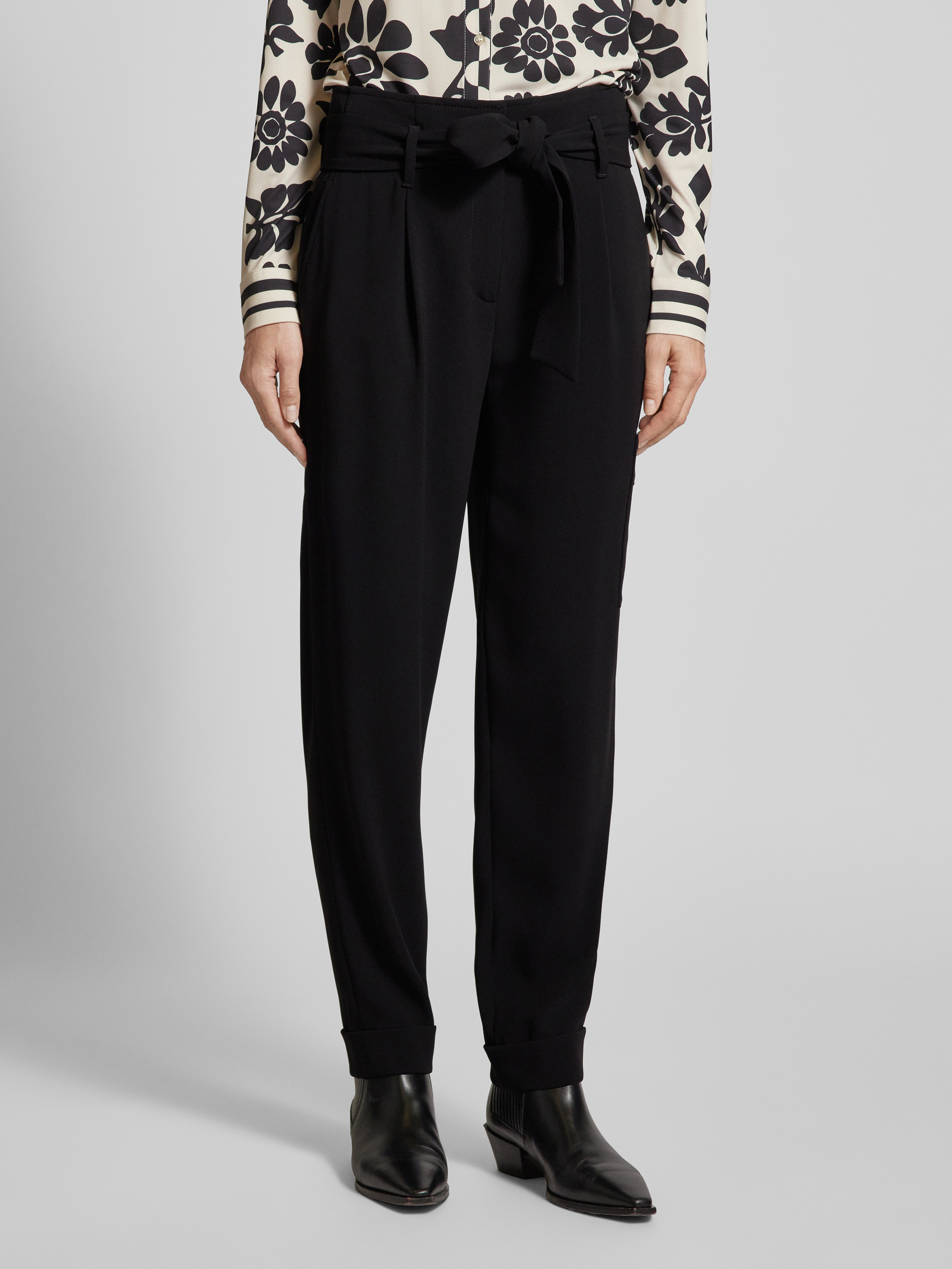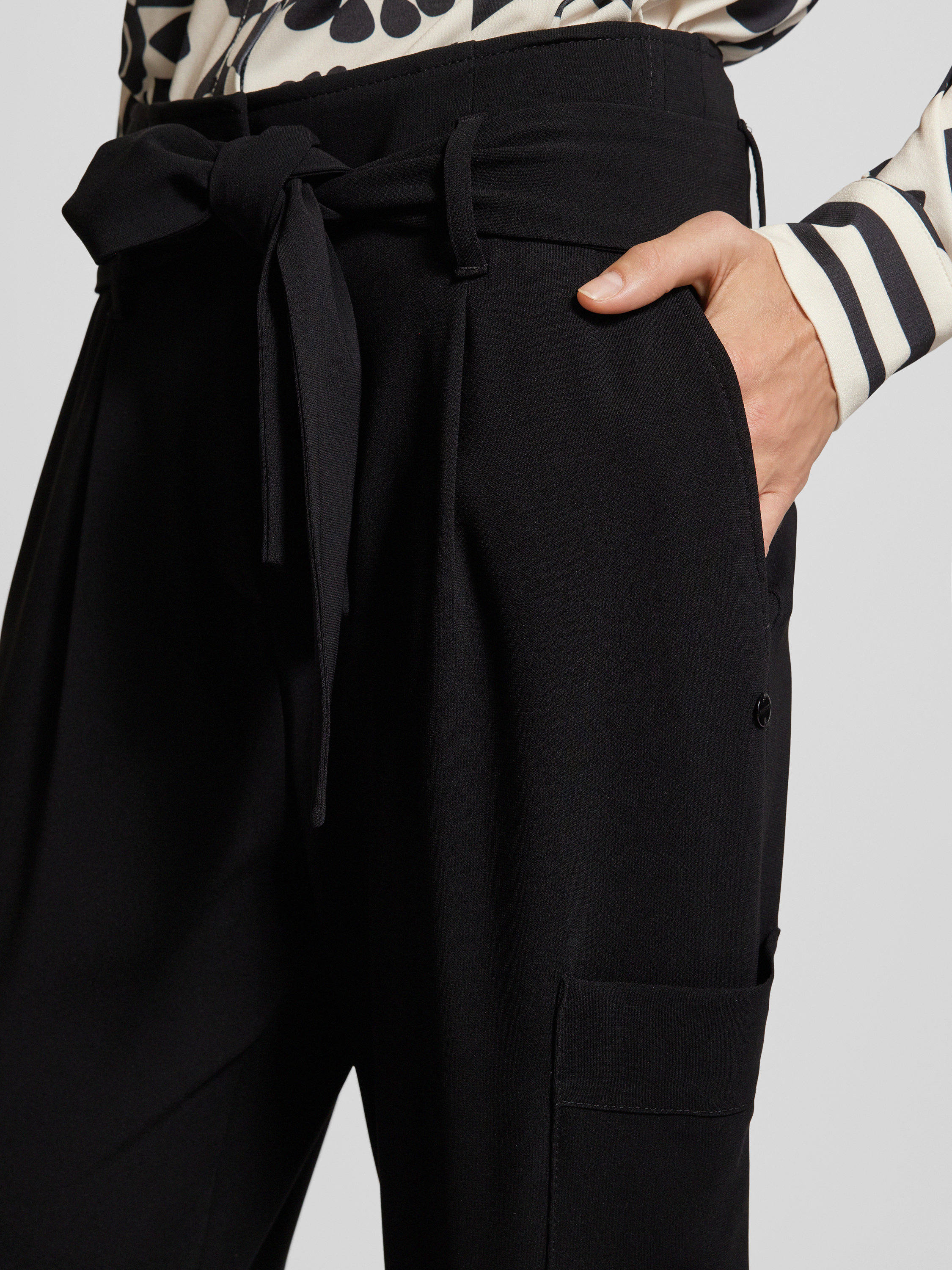 Spodnie materiałowe o kroju tapered fit z wiązanym paskiem - czarny