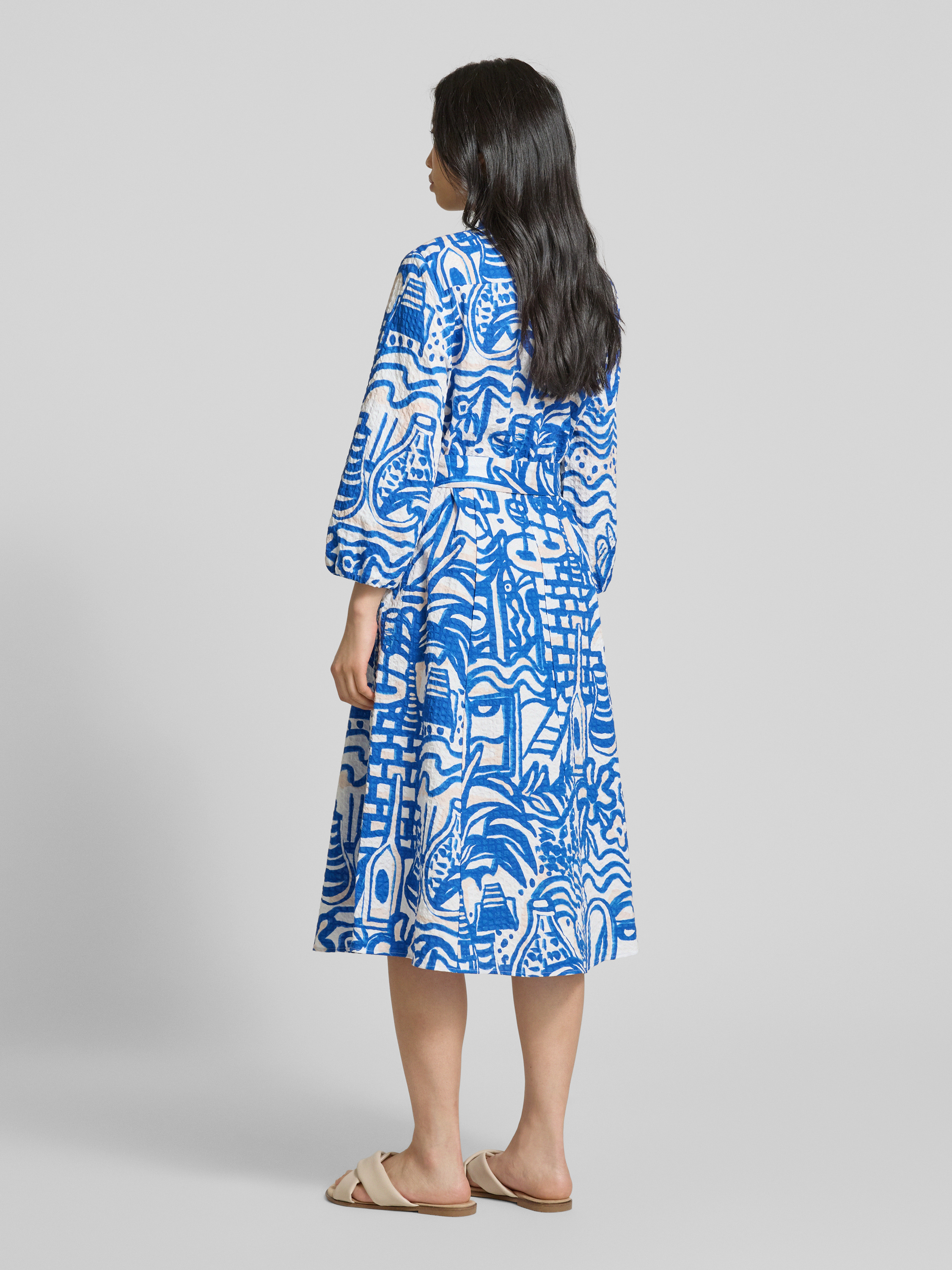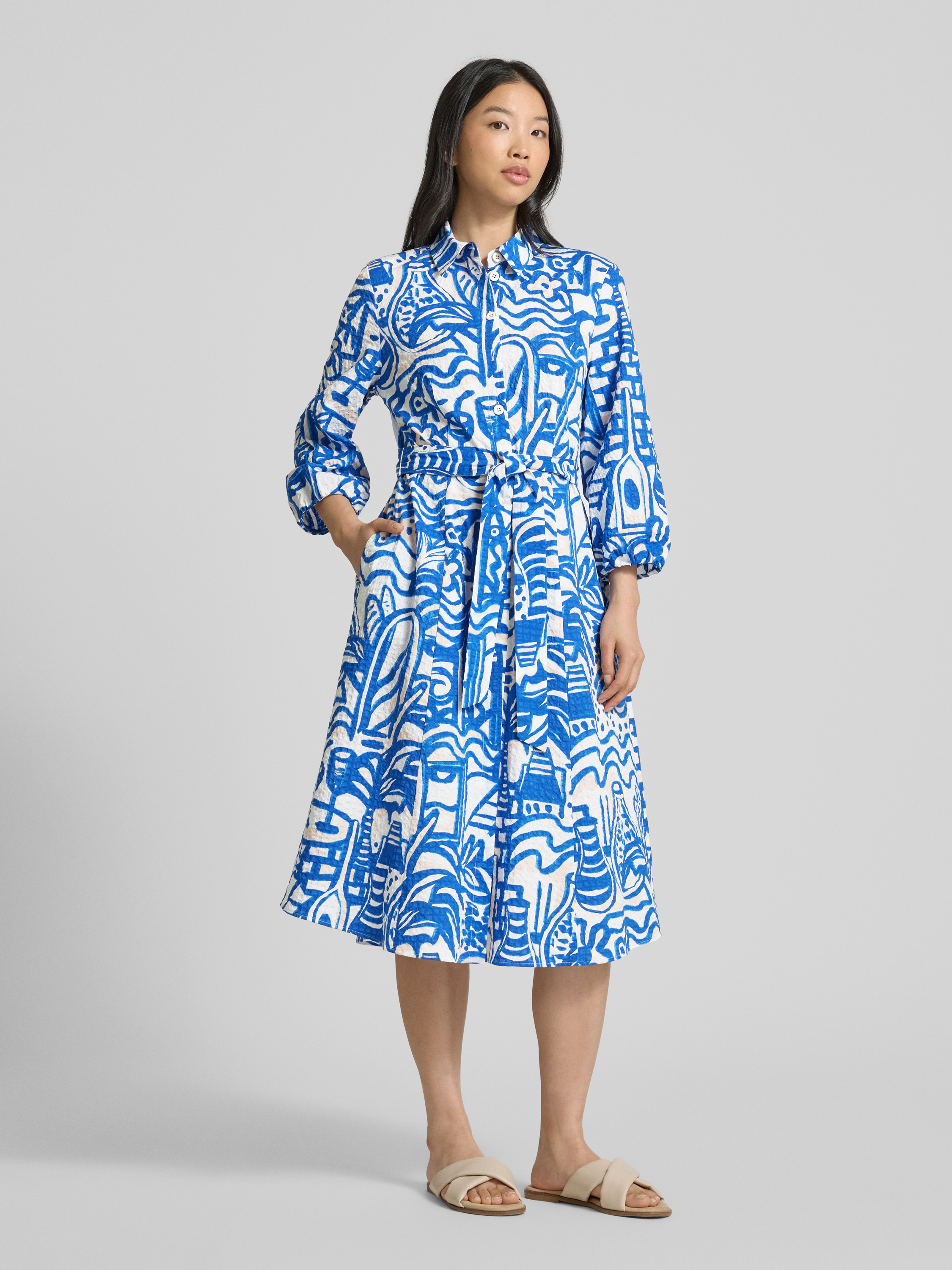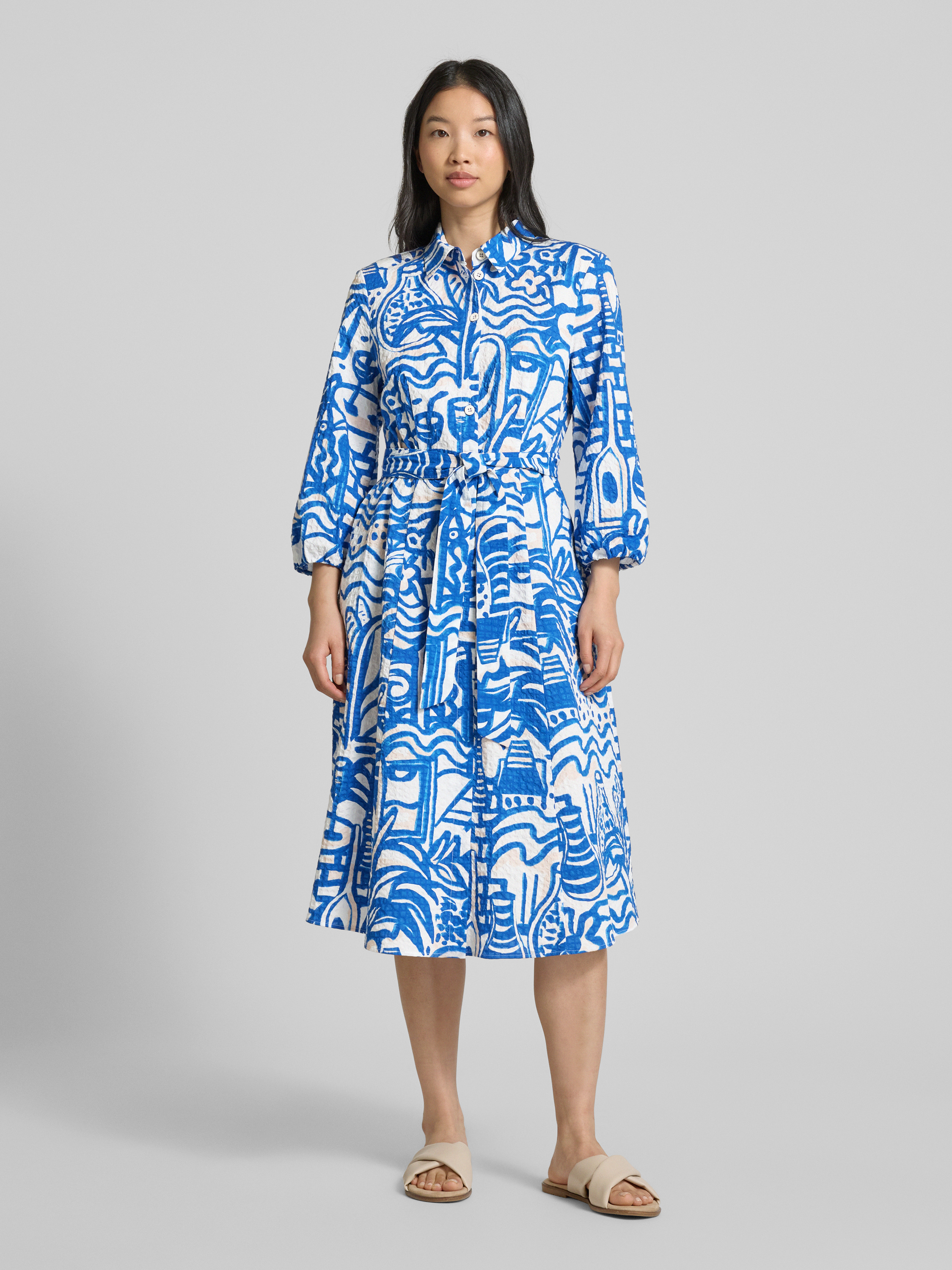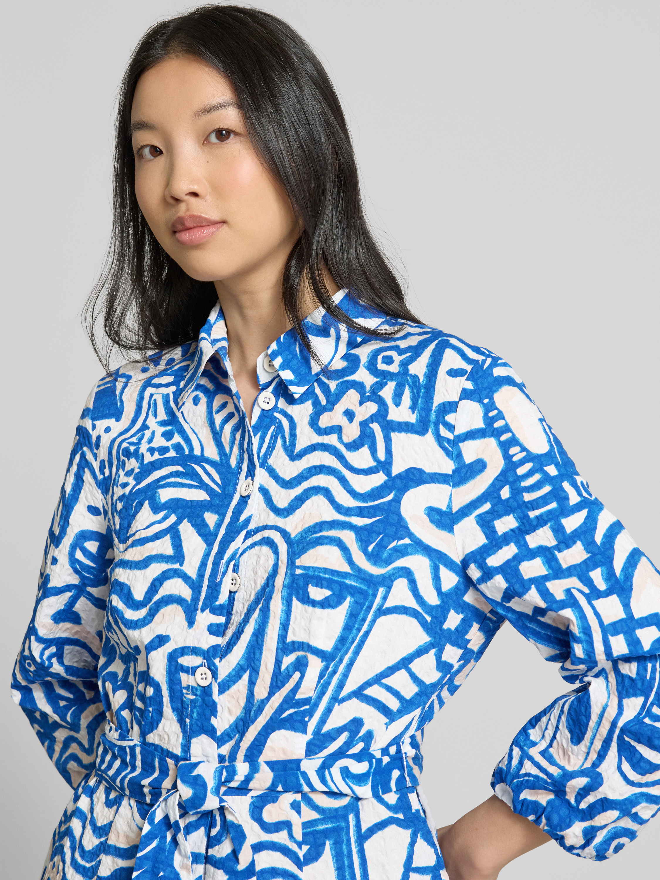 Sukienka koszulowa z listwą guzikową i wiązanym paskiem - królewski niebieski
