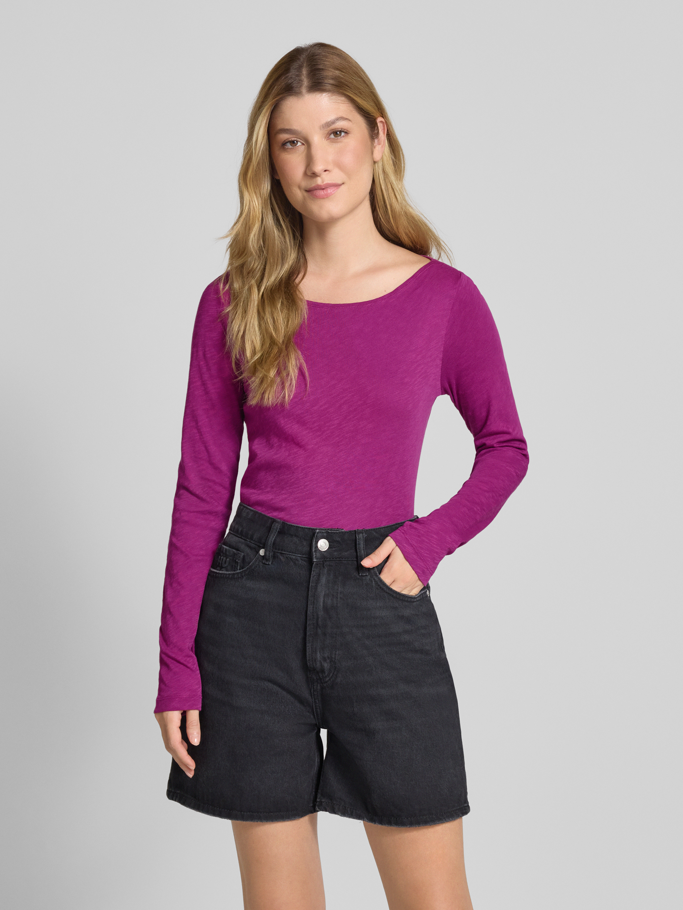 Marc O'PoloBluzka z długim rękawem o kroju regular fit z mieszanki dżerseju i bawełny - fuksjowy