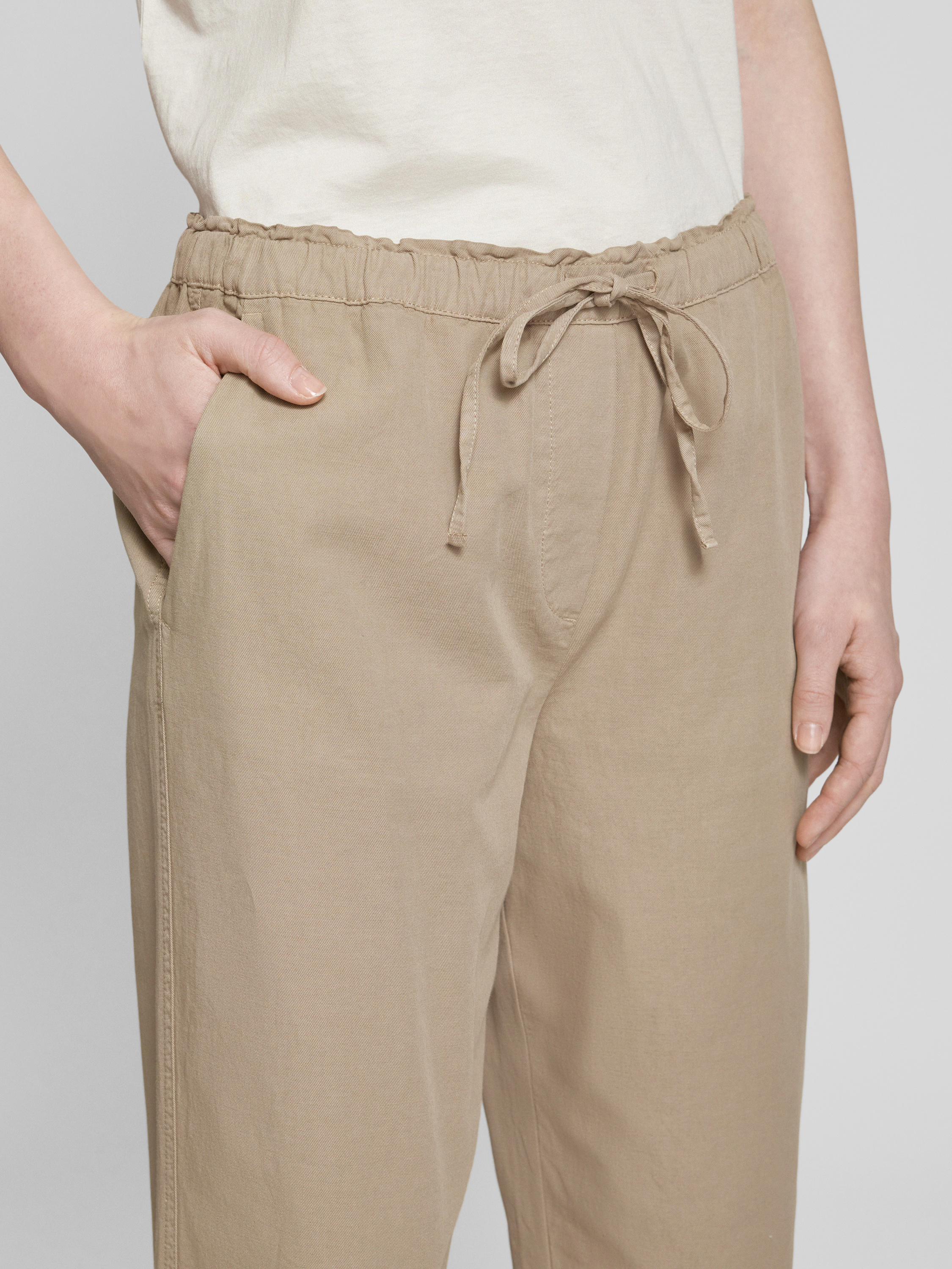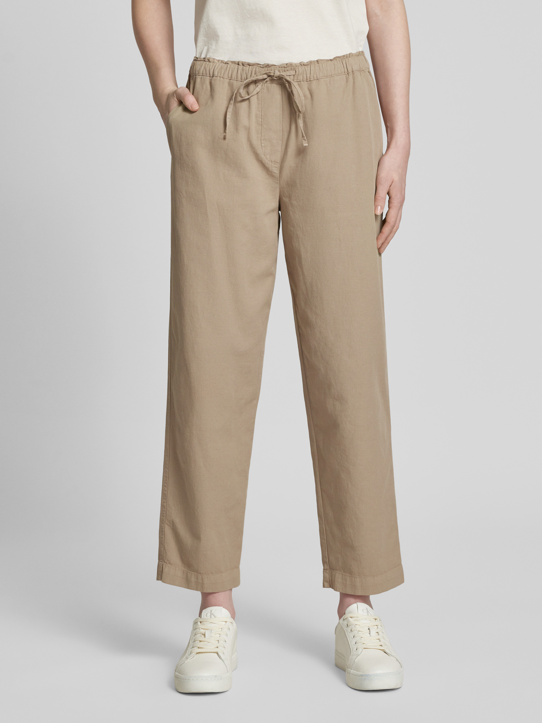 Spodnie sportowe o kroju tapered z mieszanki lnu i bawełny - beżowy