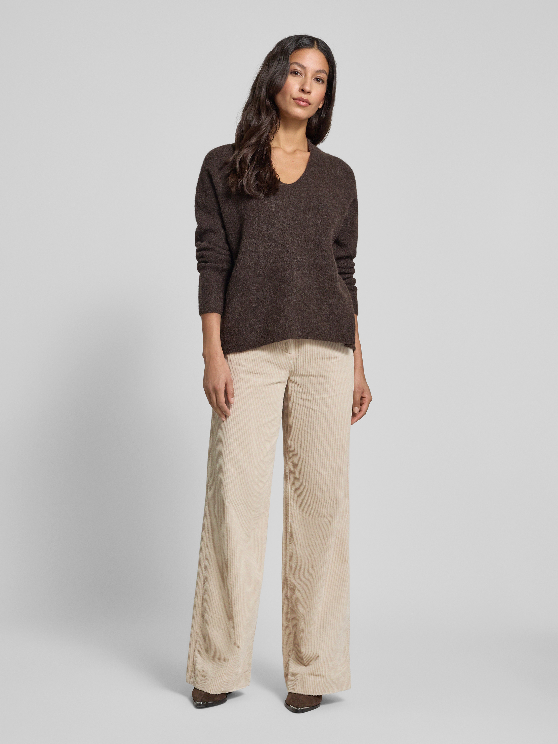 Marc O'PoloSpodnie sztruksowe z szeroką nogawką z czystej bawełny - złamany biały