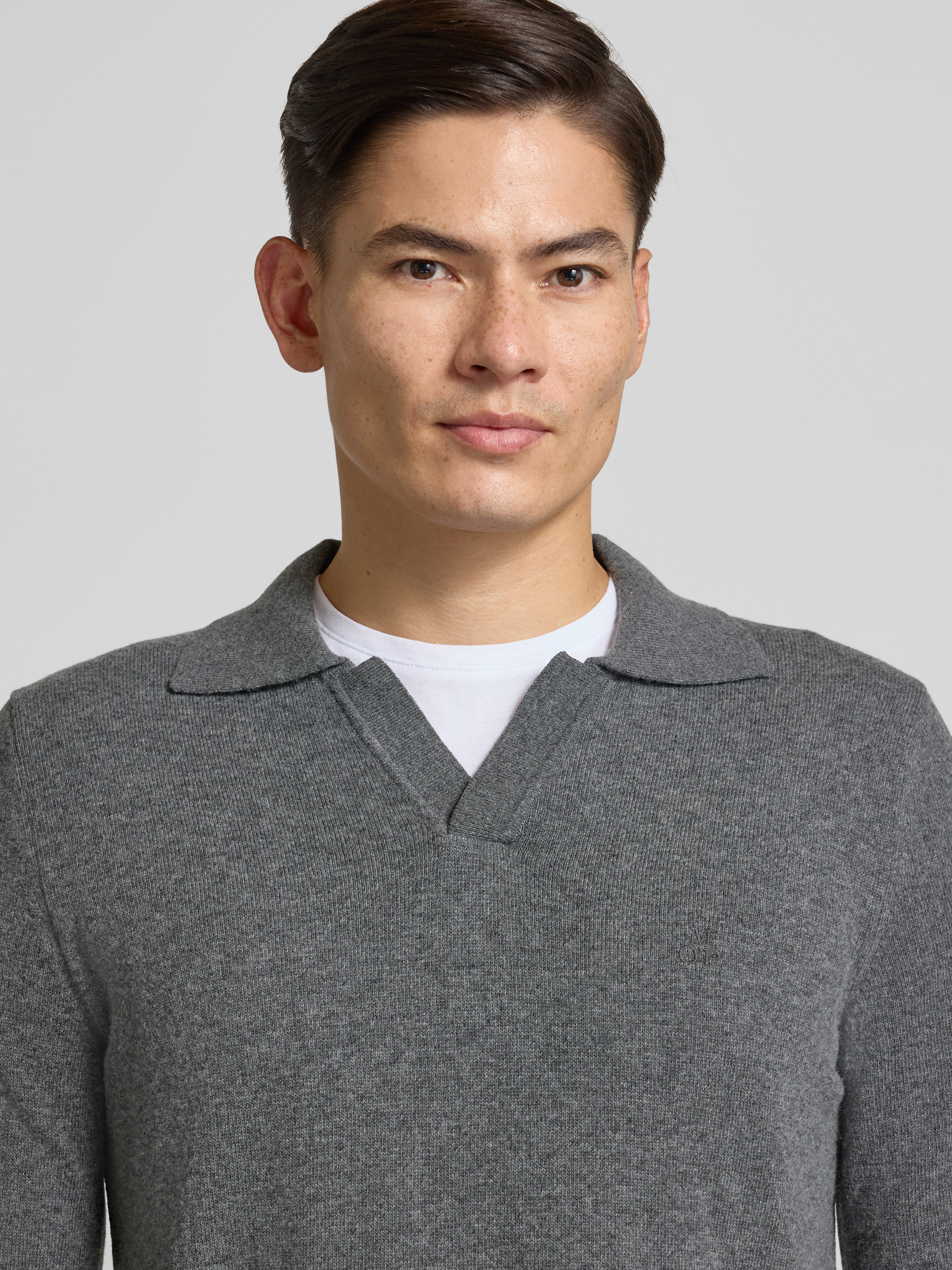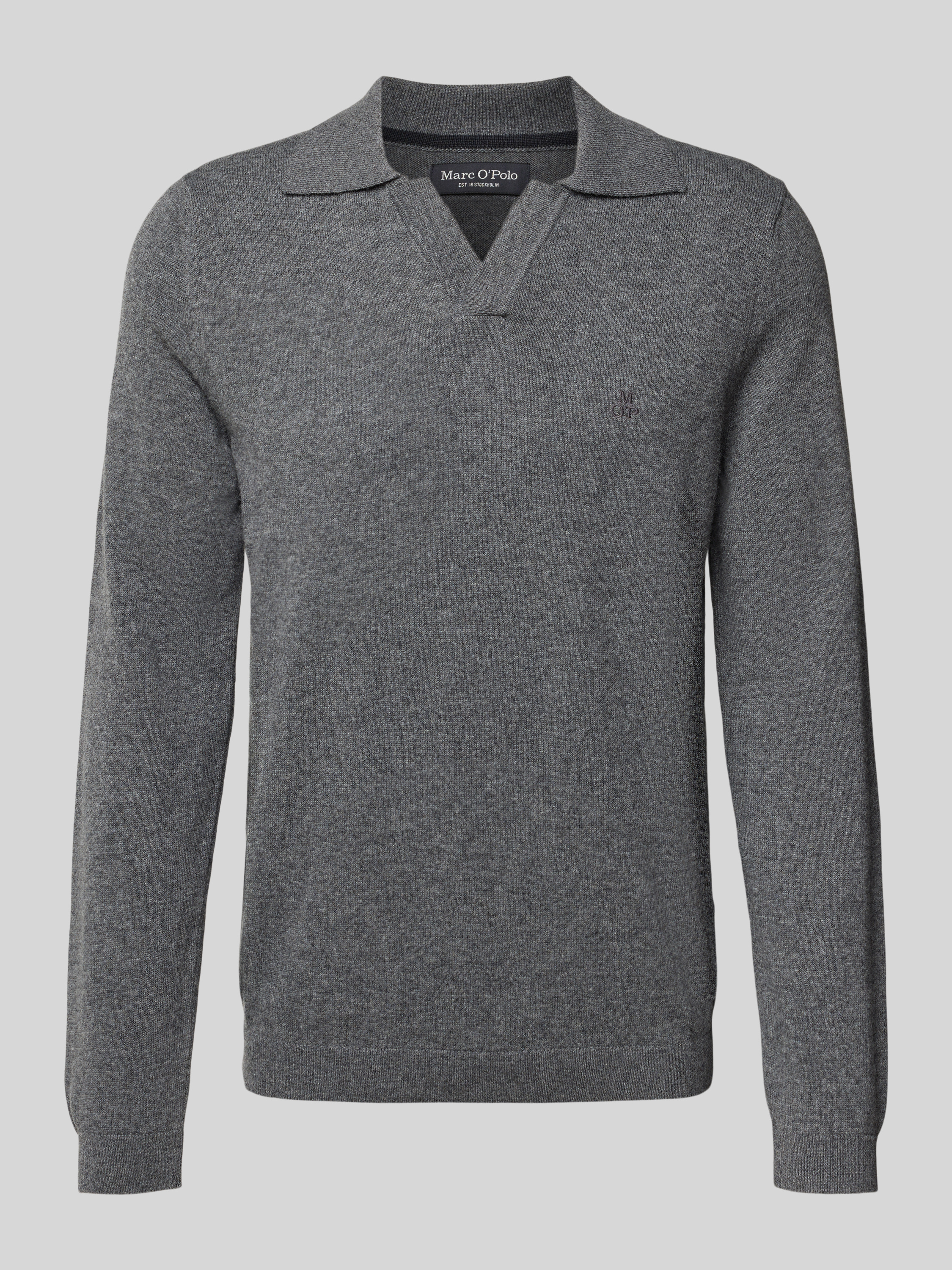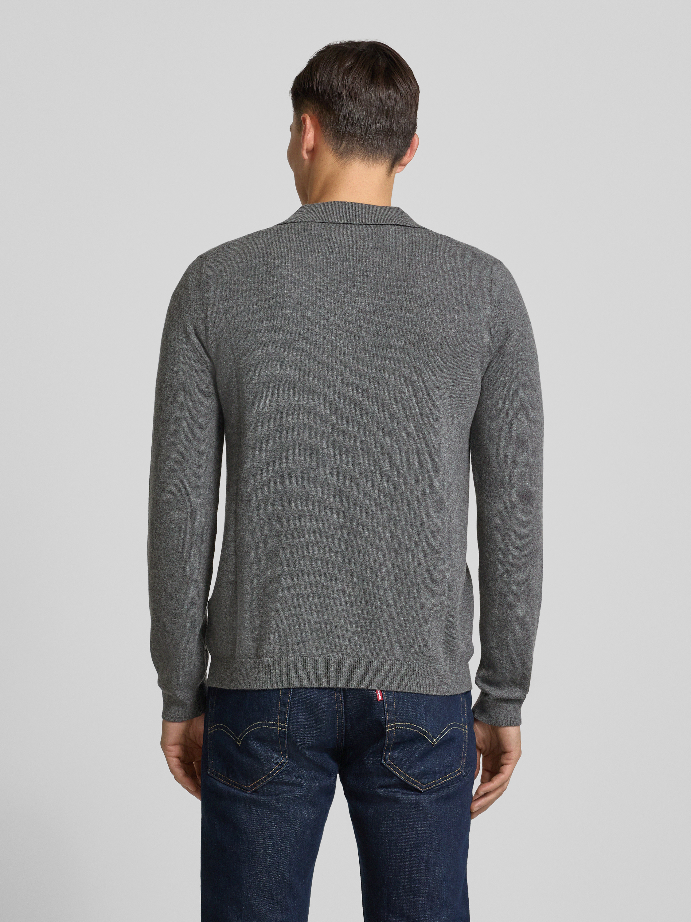 Sweter z dzianiny o kroju regular fit z mieszanki bawełny i żywej wełny - antracytowy