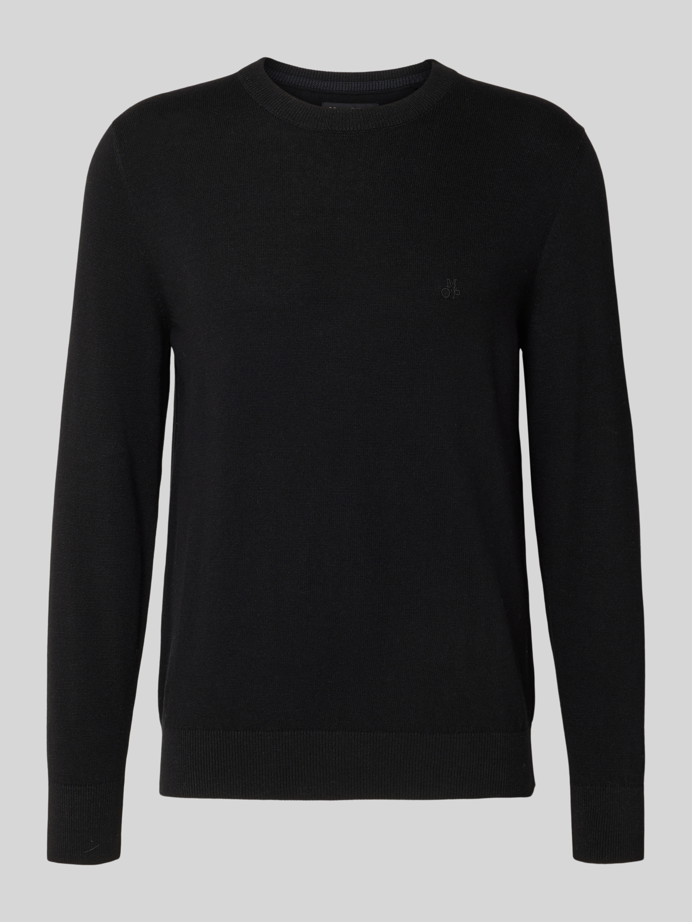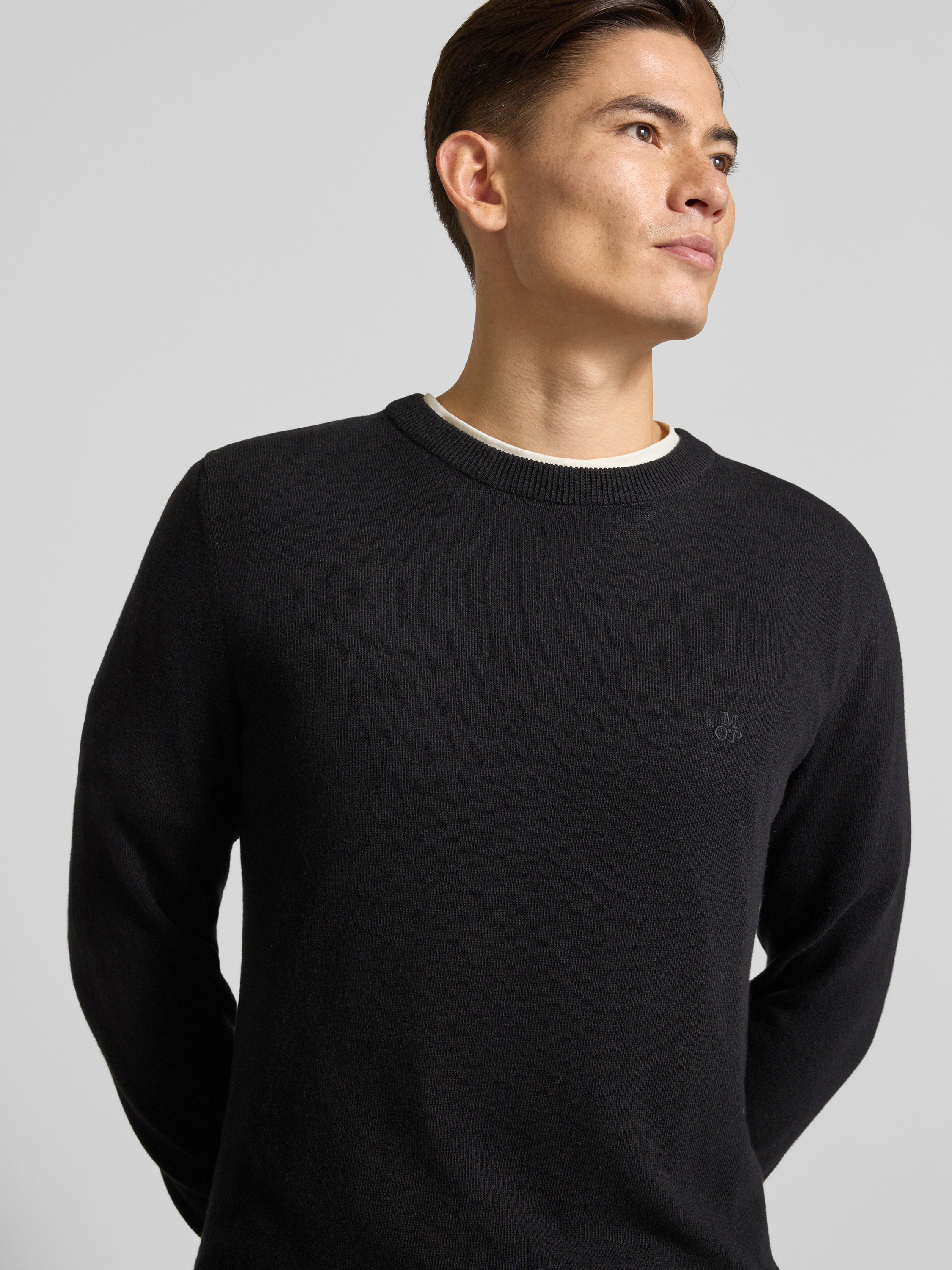 Sweter z dzianiny o kroju regular fit z mieszanki bawełny i żywej wełny - czarny