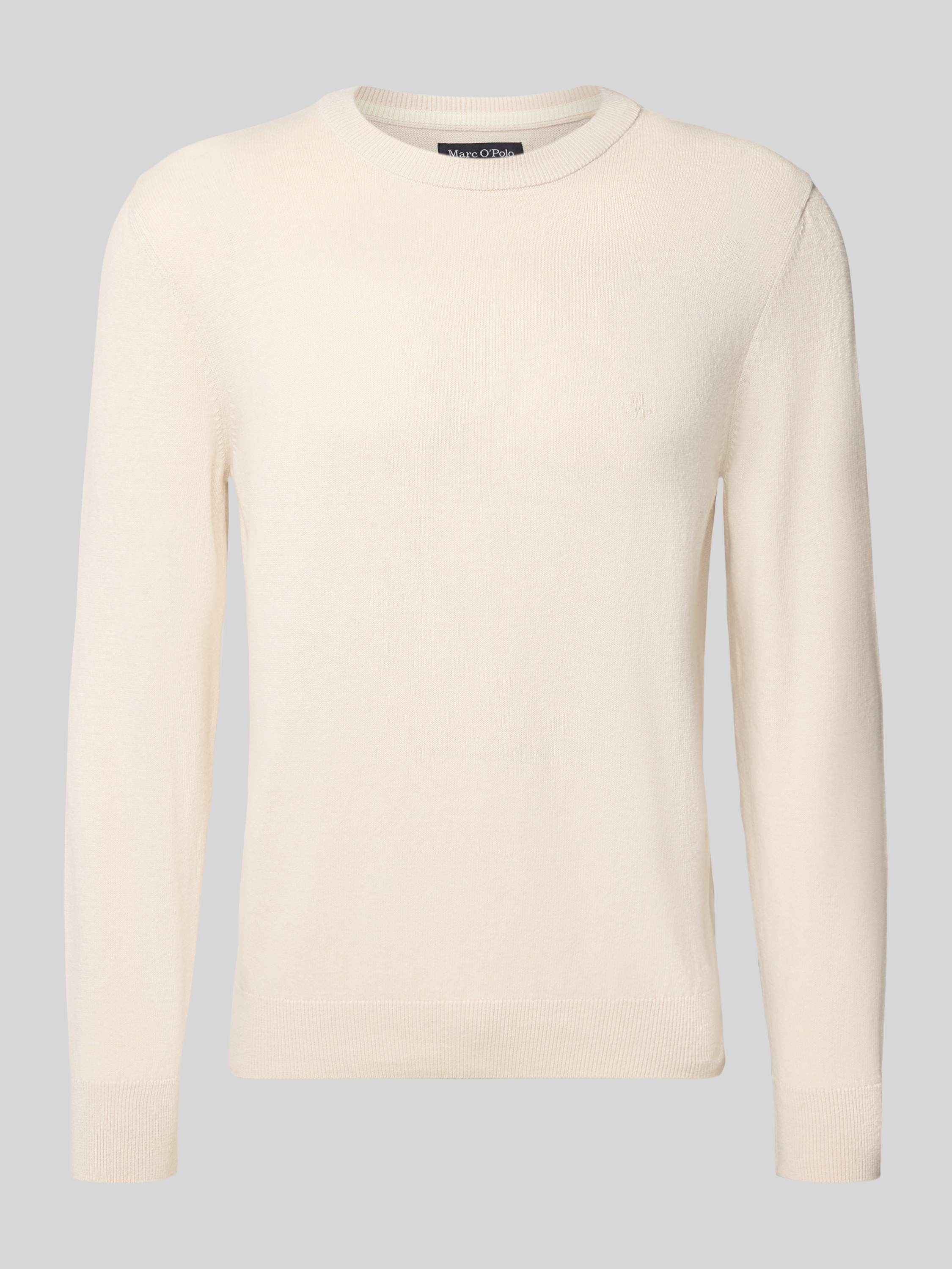Sweter z dzianiny o kroju regular fit z mieszanki bawełny i żywej wełny - piaskowy