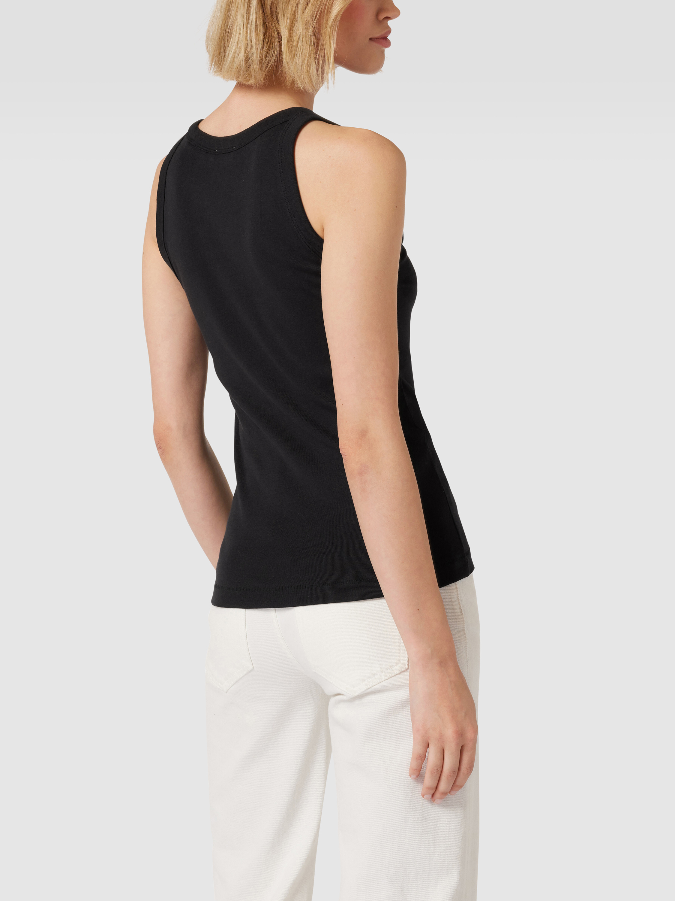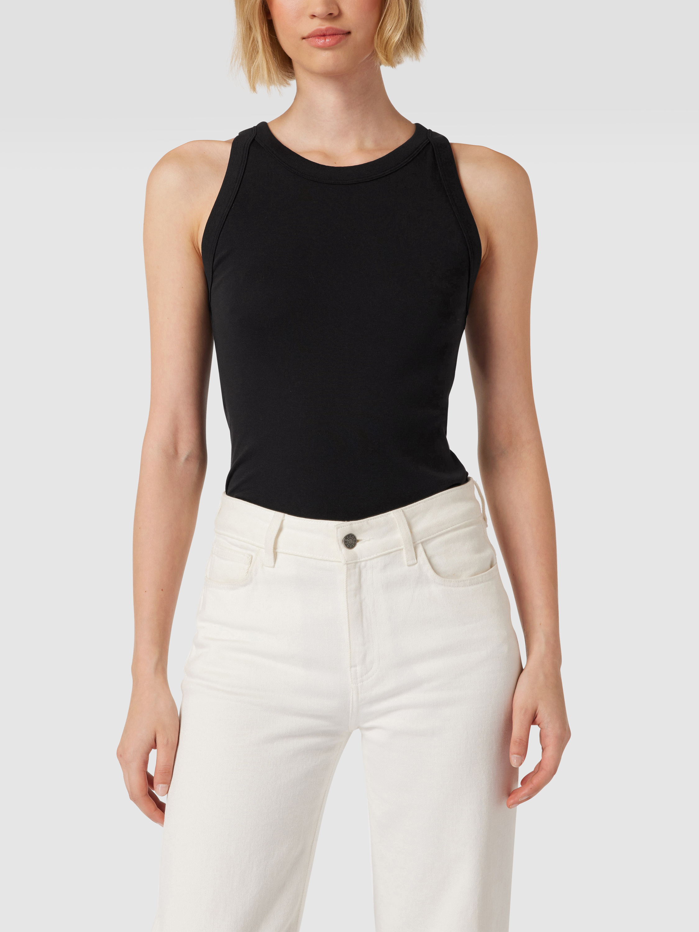 Top o kroju shaped fit z prążkowanego dżerseju z okrągłym dekoltem - czarny