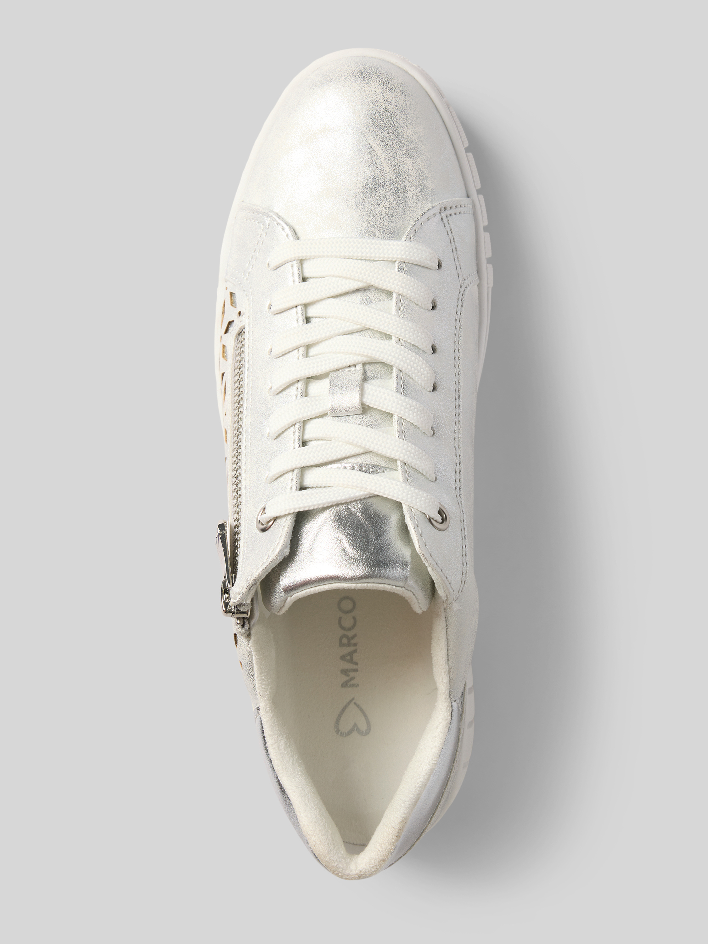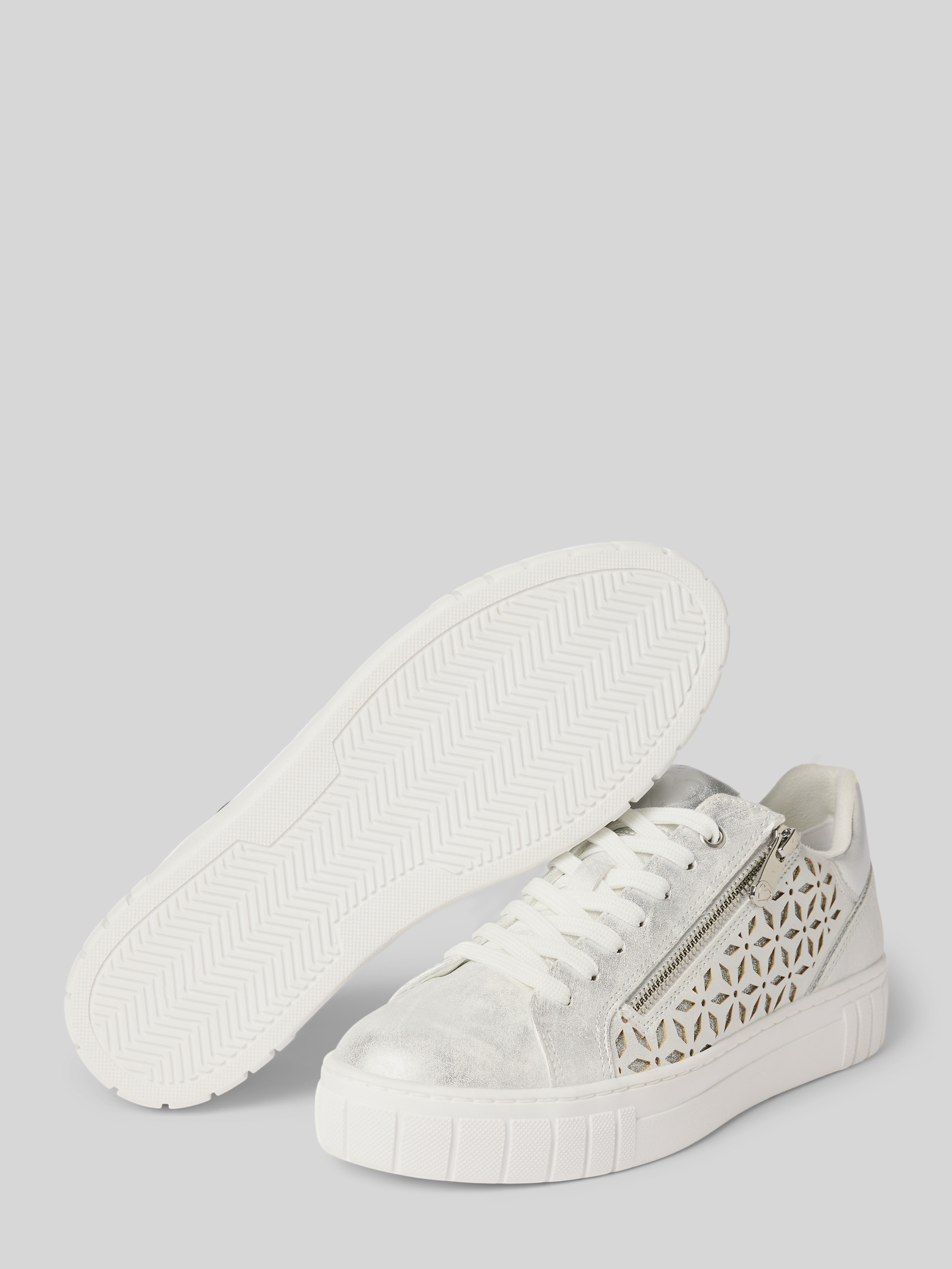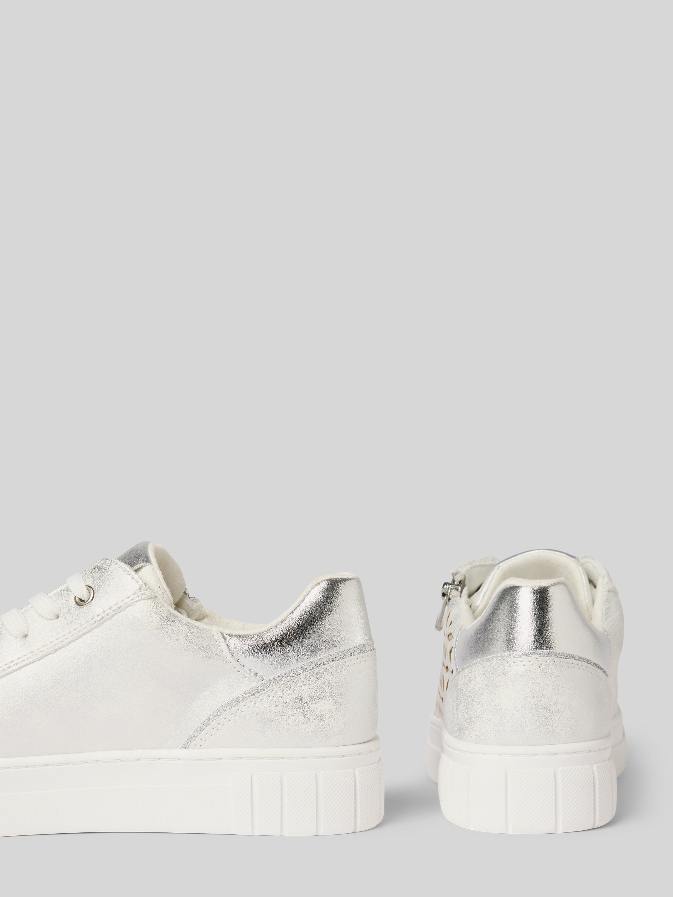 Sneakersy z wiązaniem i zapięciem na zamek błyskawiczny - srebrny