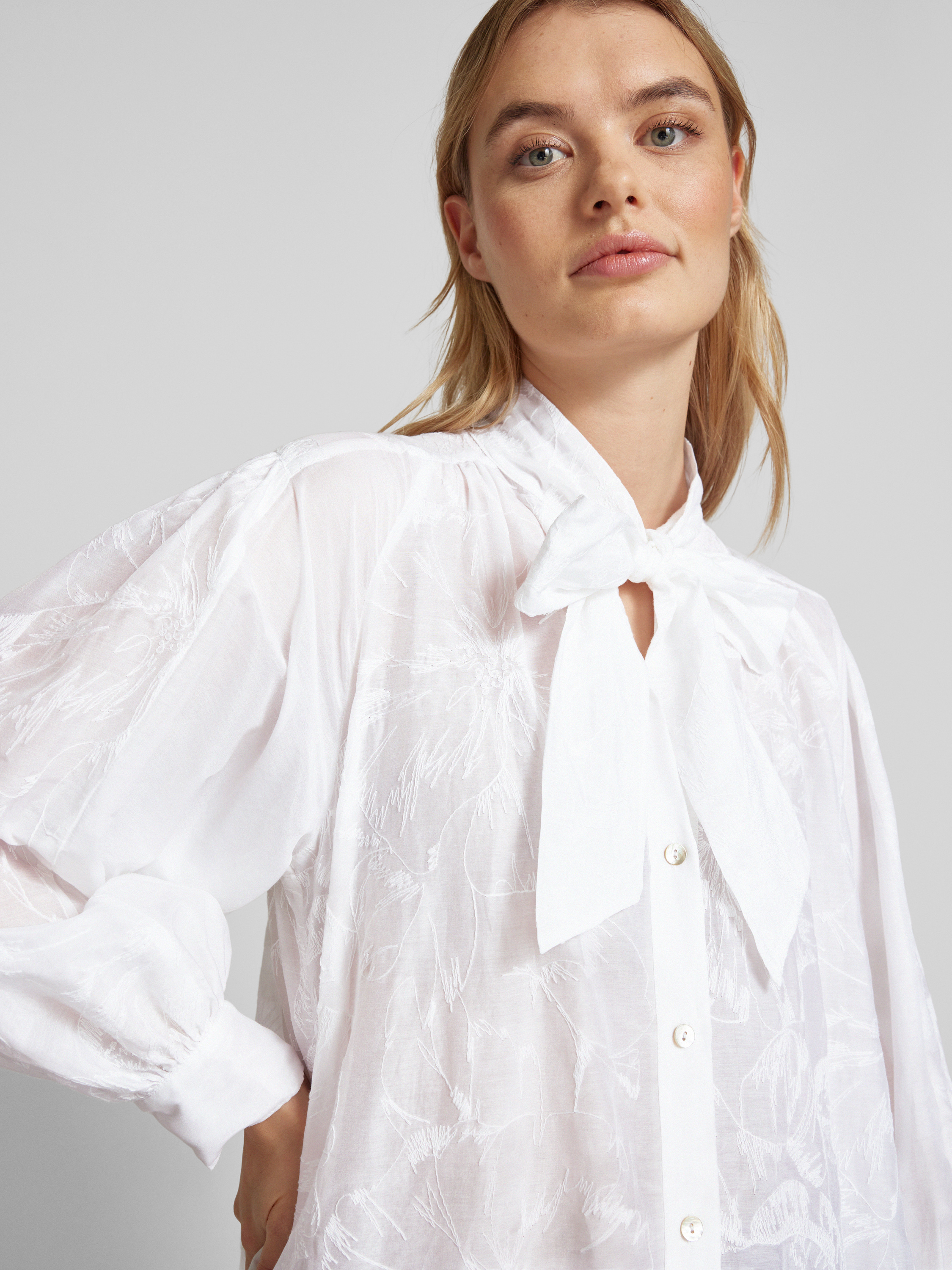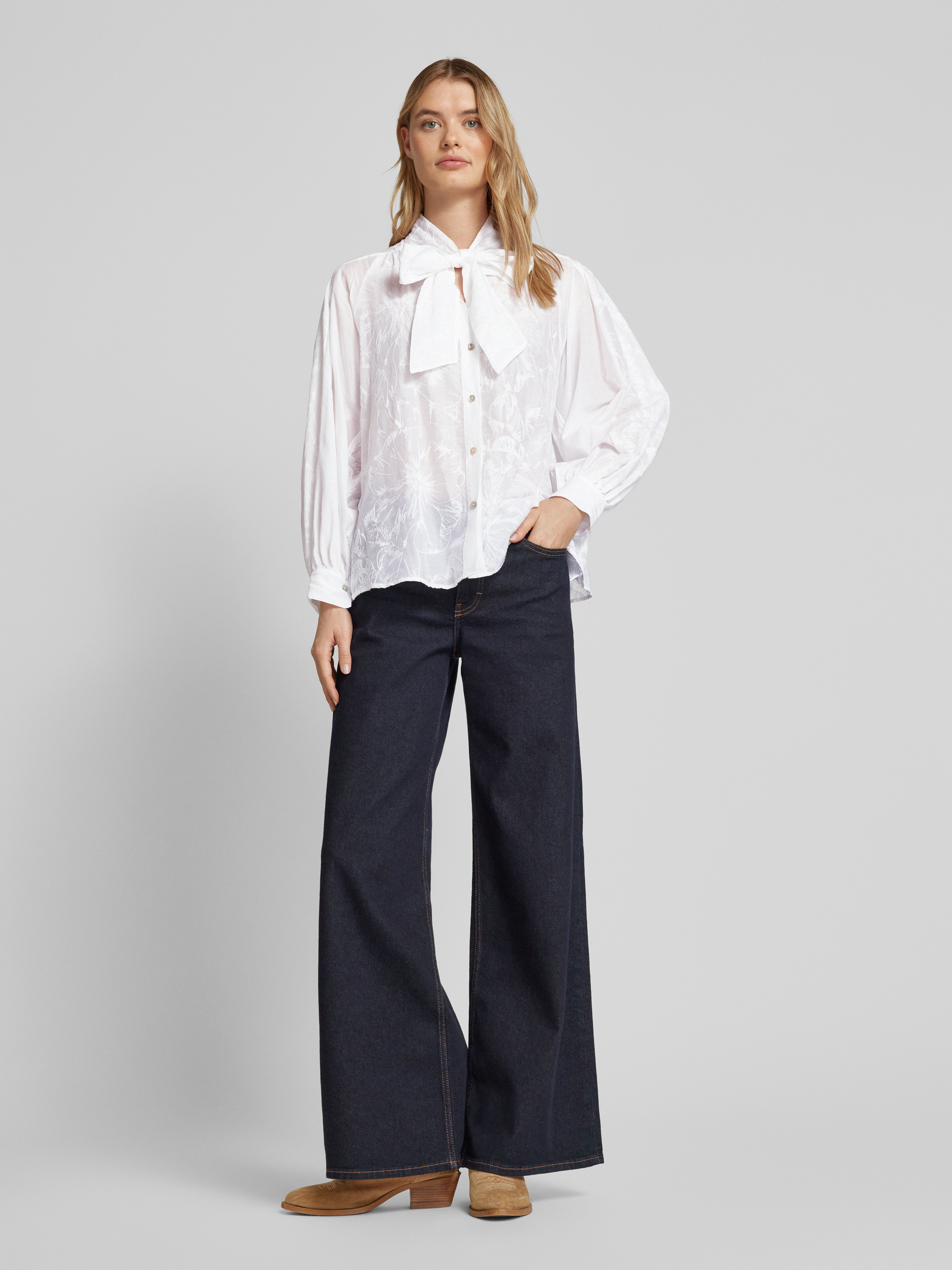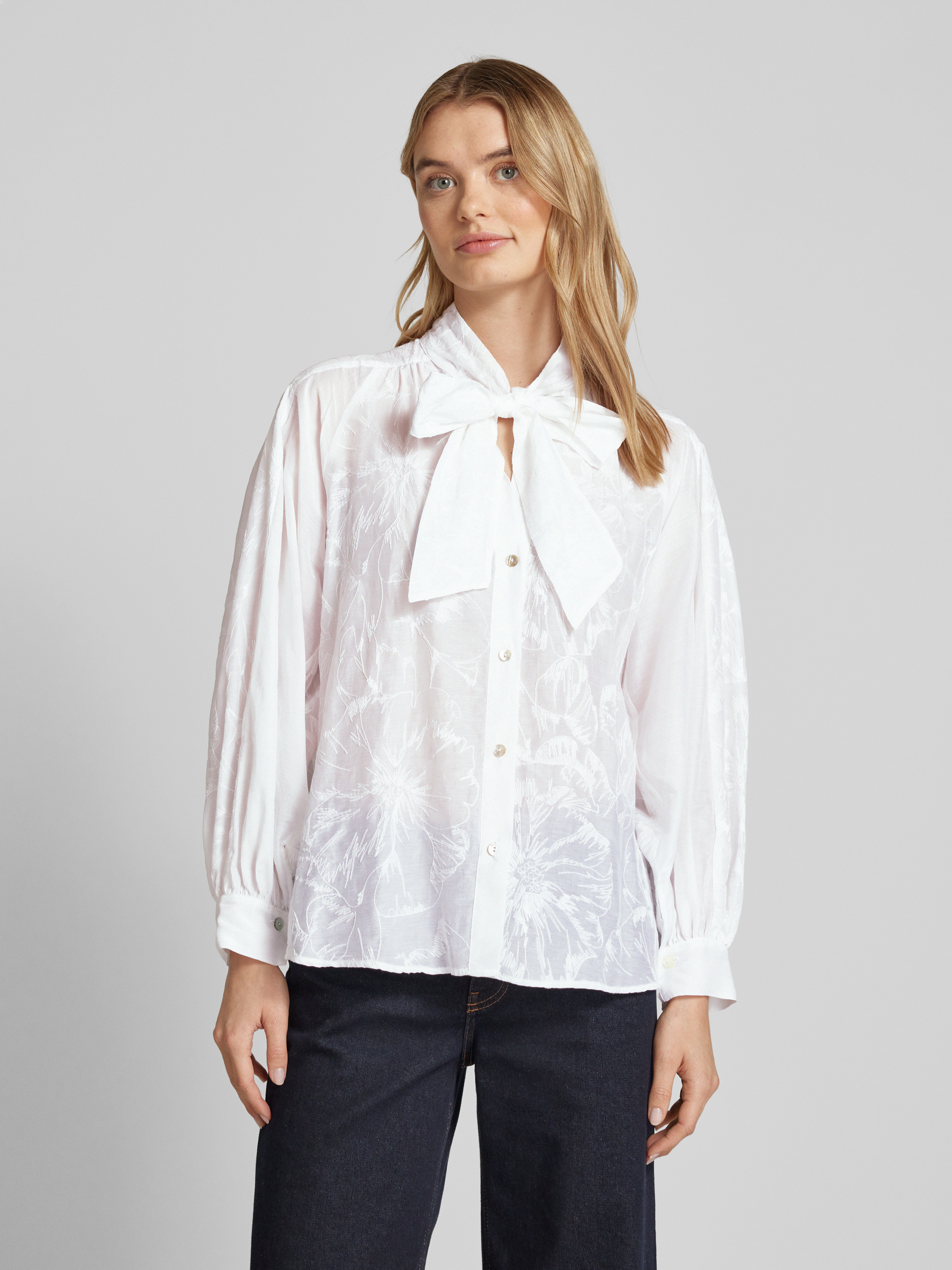 Bluzka koszulowa z mieszanki bawełny i jedwabiu - biały