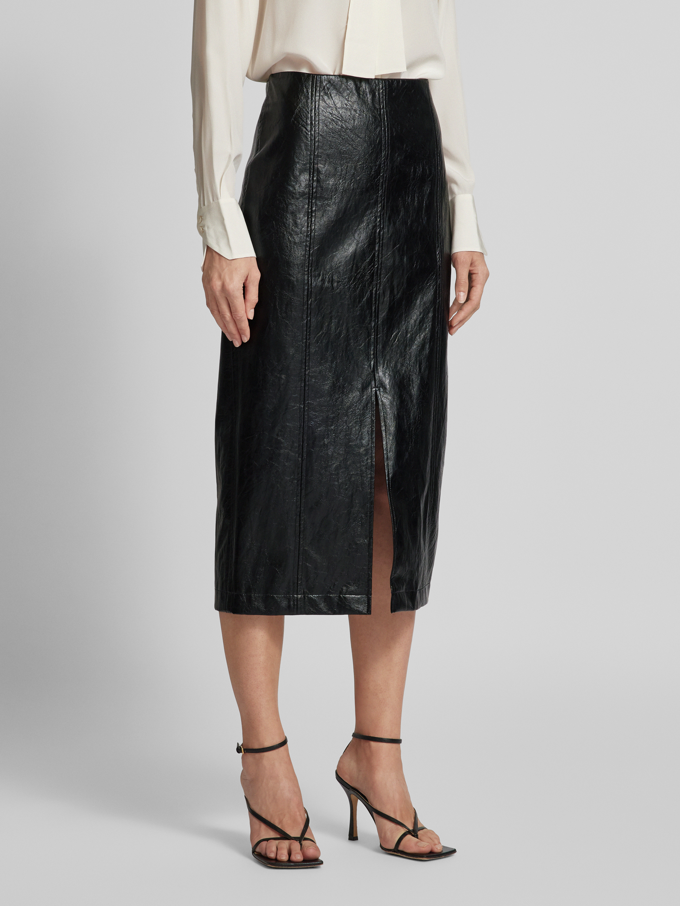 Spódnica midi z imitacji skóry model ‘BIAGIO’ - czarny