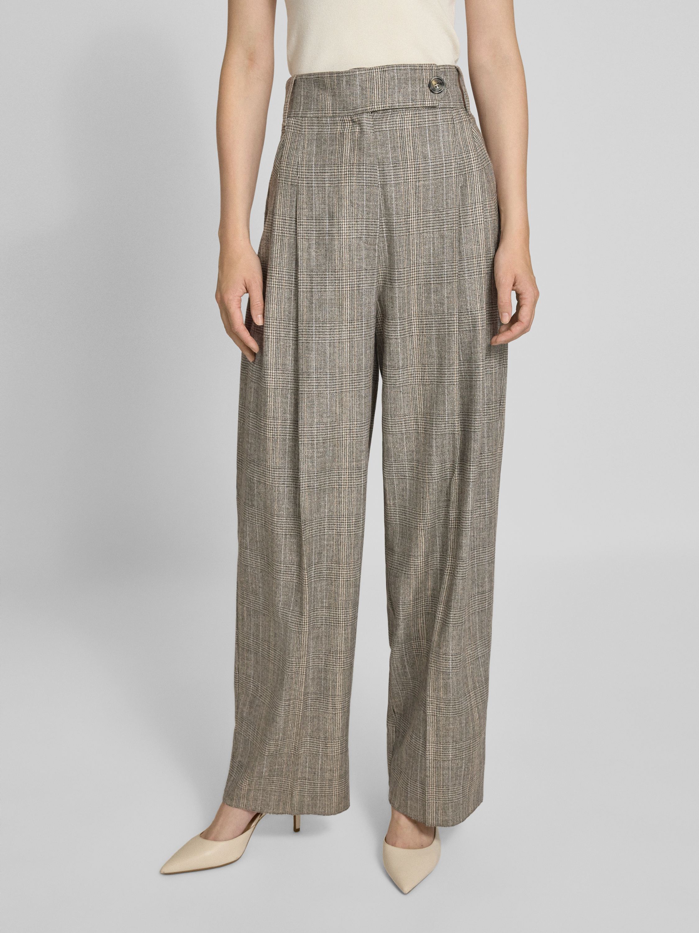Spodnie materiałowe o szerokim kroju z mieszanki wiskozy z zakładką w pasie model ‘Massimo’ - średnioszary