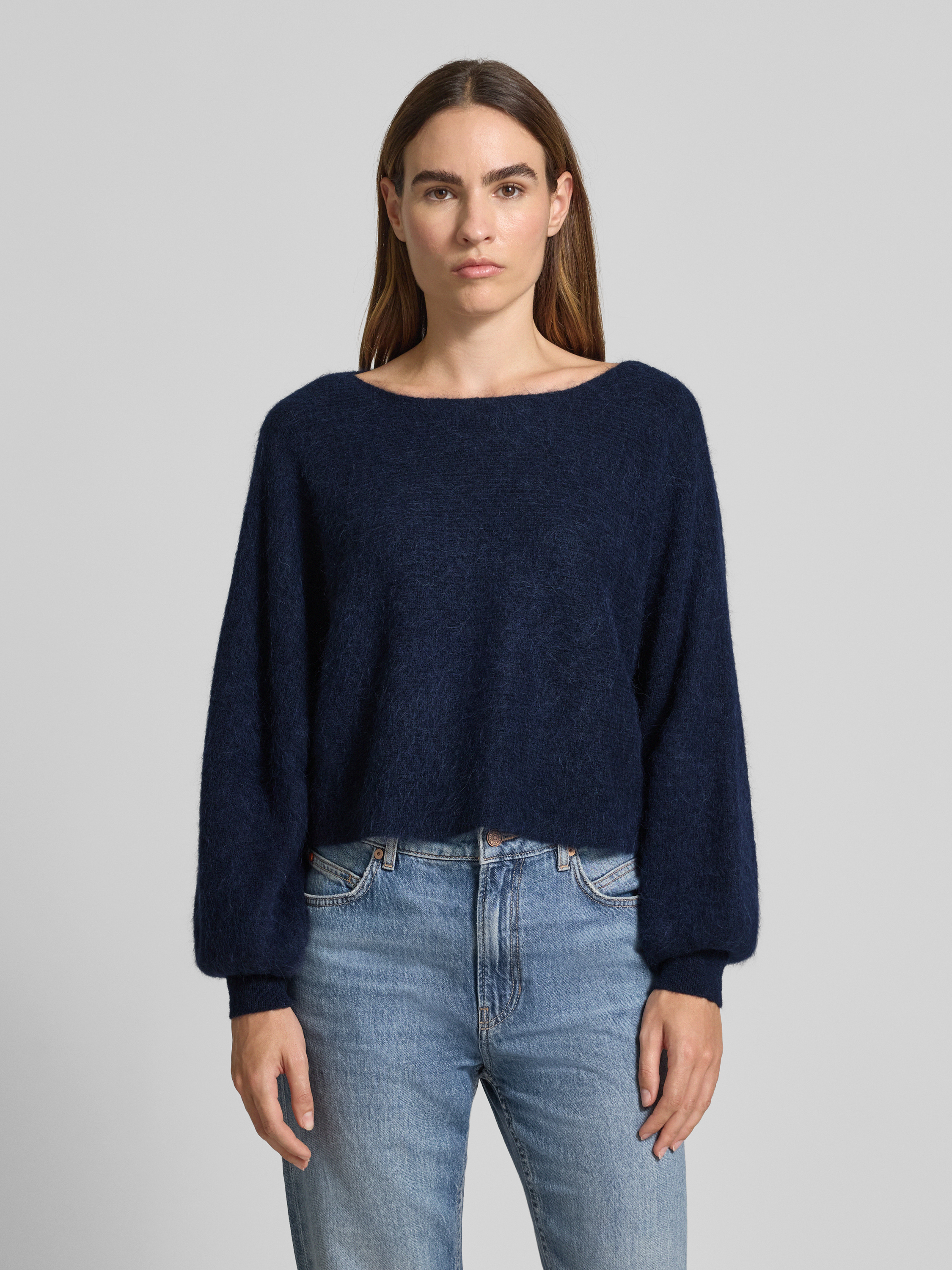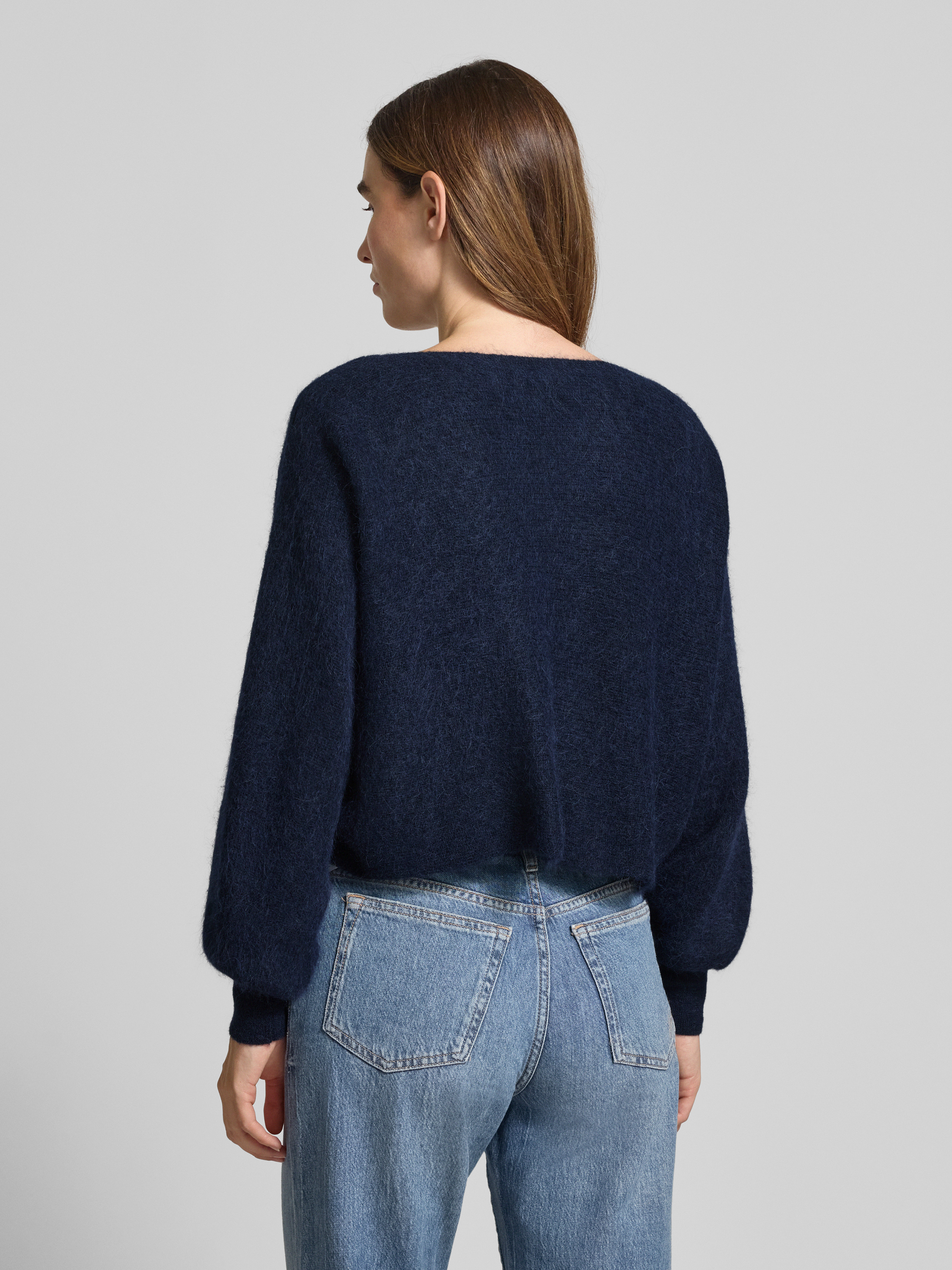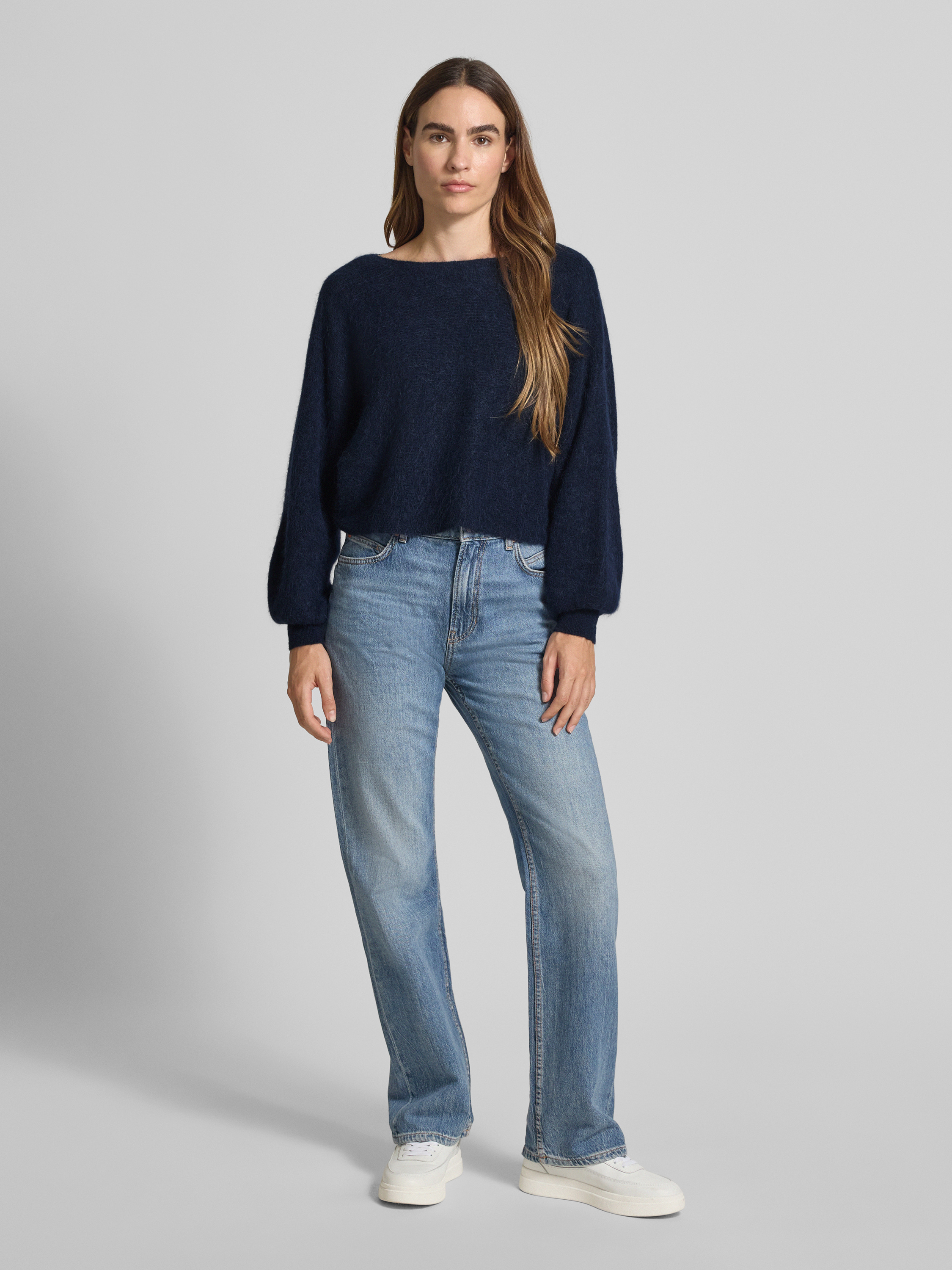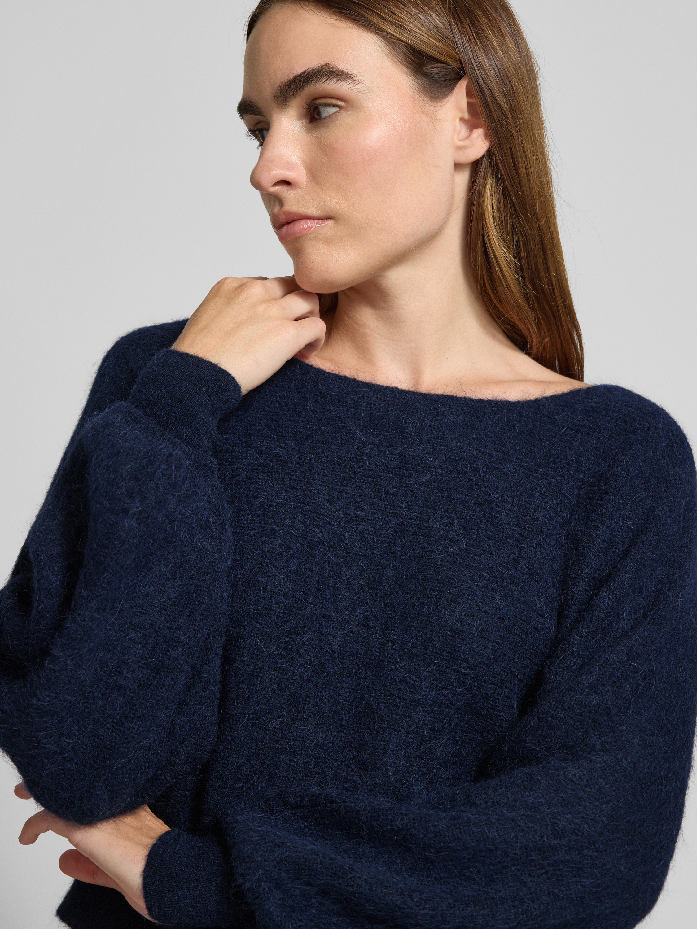 Sweter z dzianiny z prążkowanymi wykończeniami model ‘FARADAY’ - granatowy