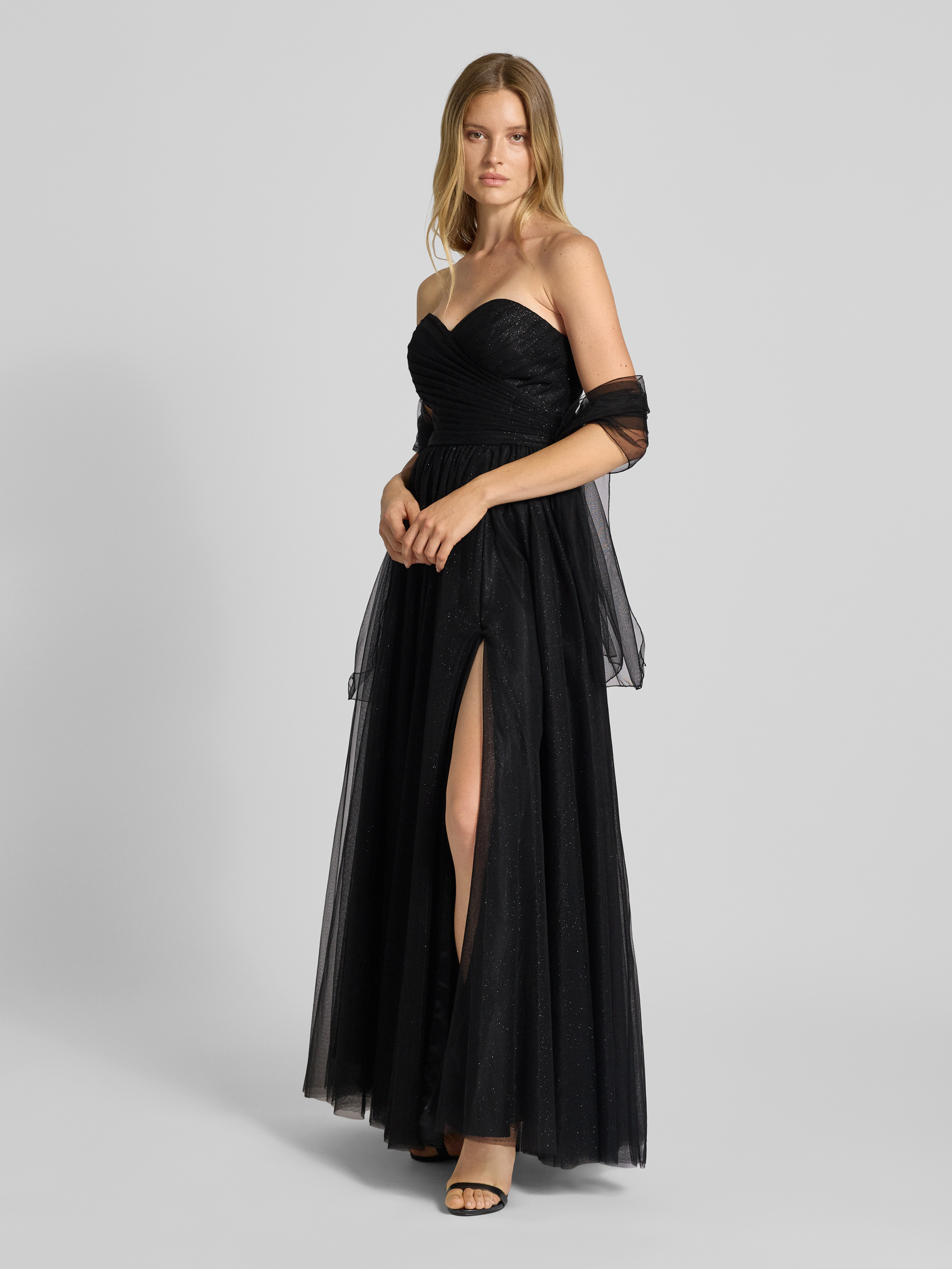 Sukienka wieczorowa z błyszczącej siateczki - czarny