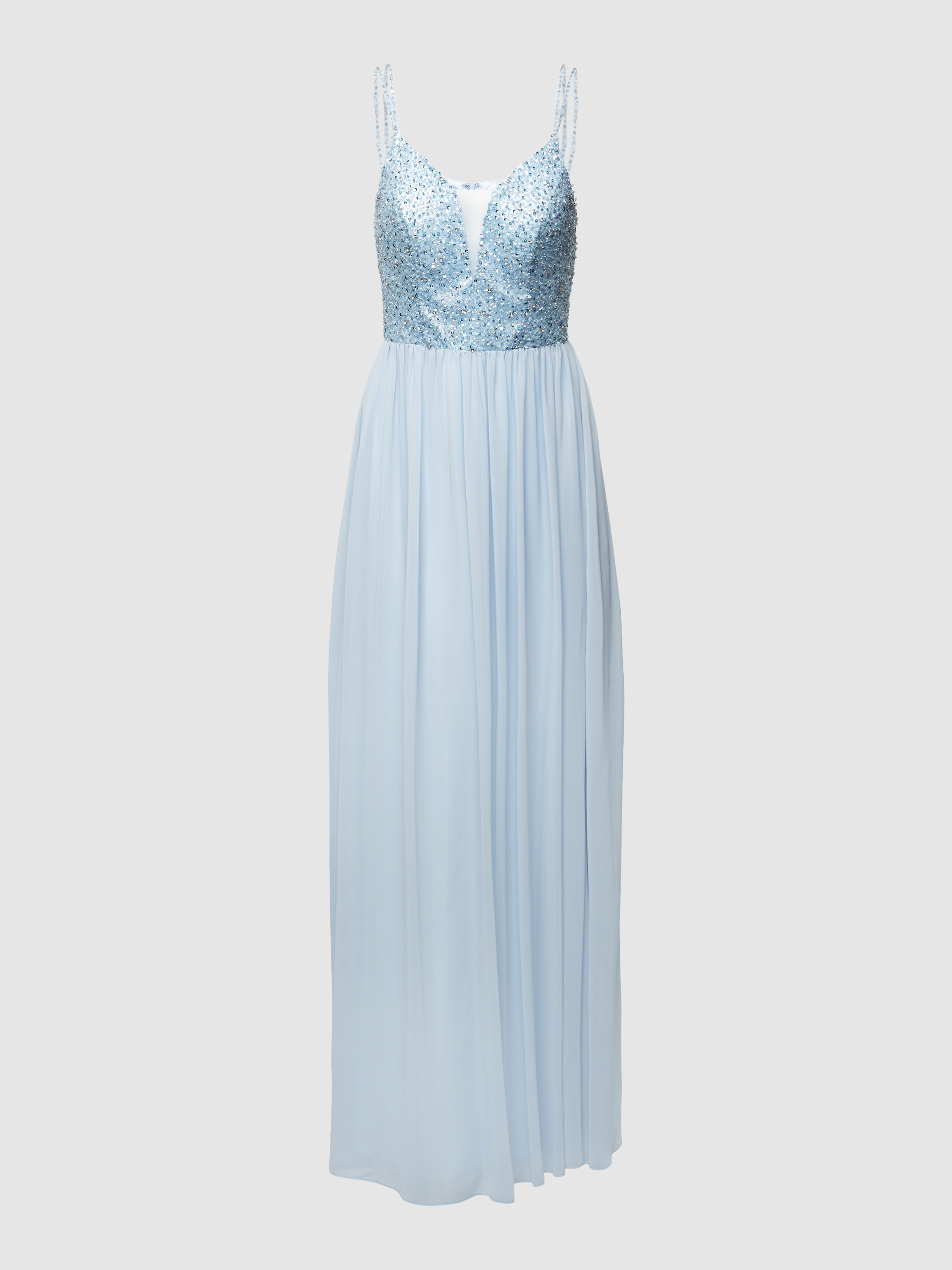 Sukienka wieczorowa z cekinami i ozdobnymi perełkami - błękitny