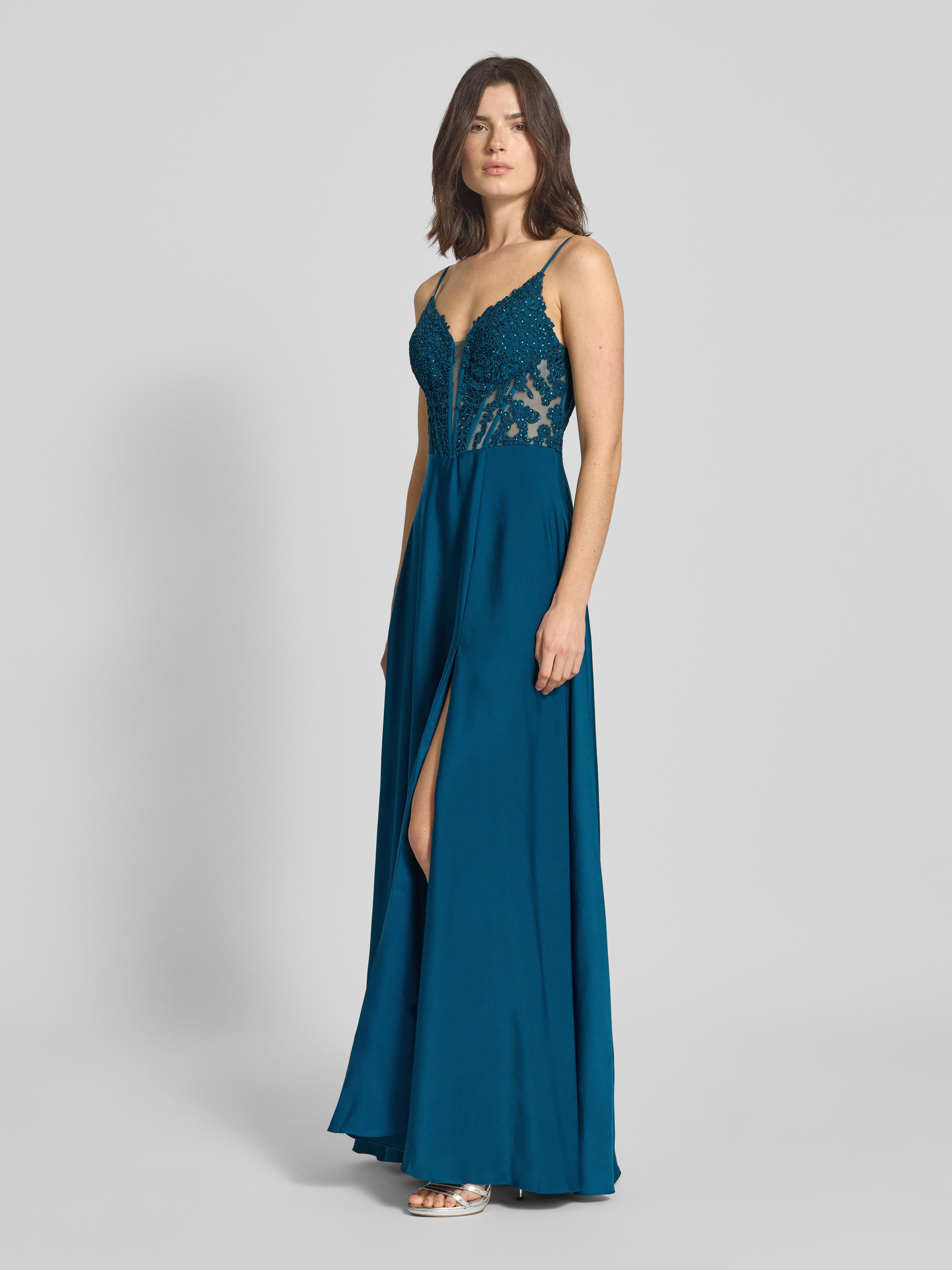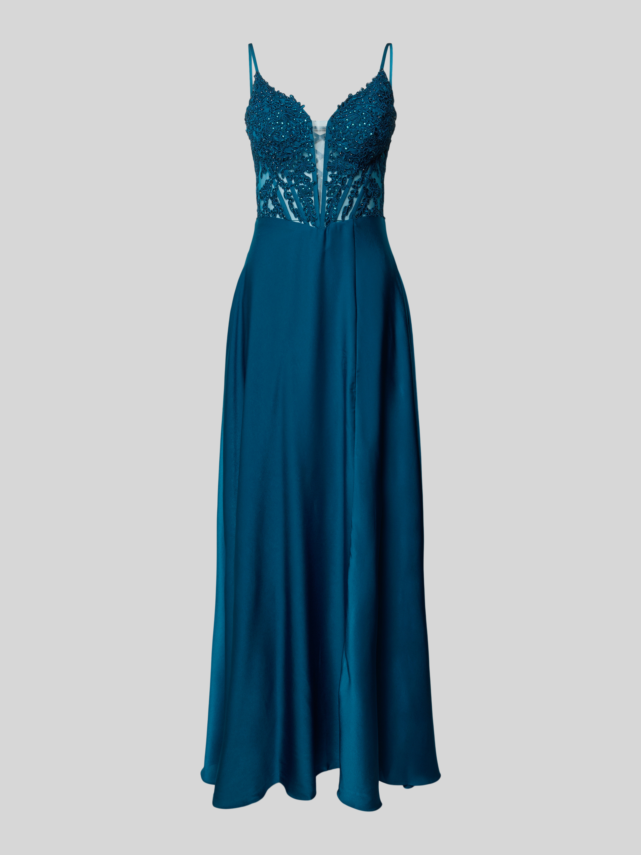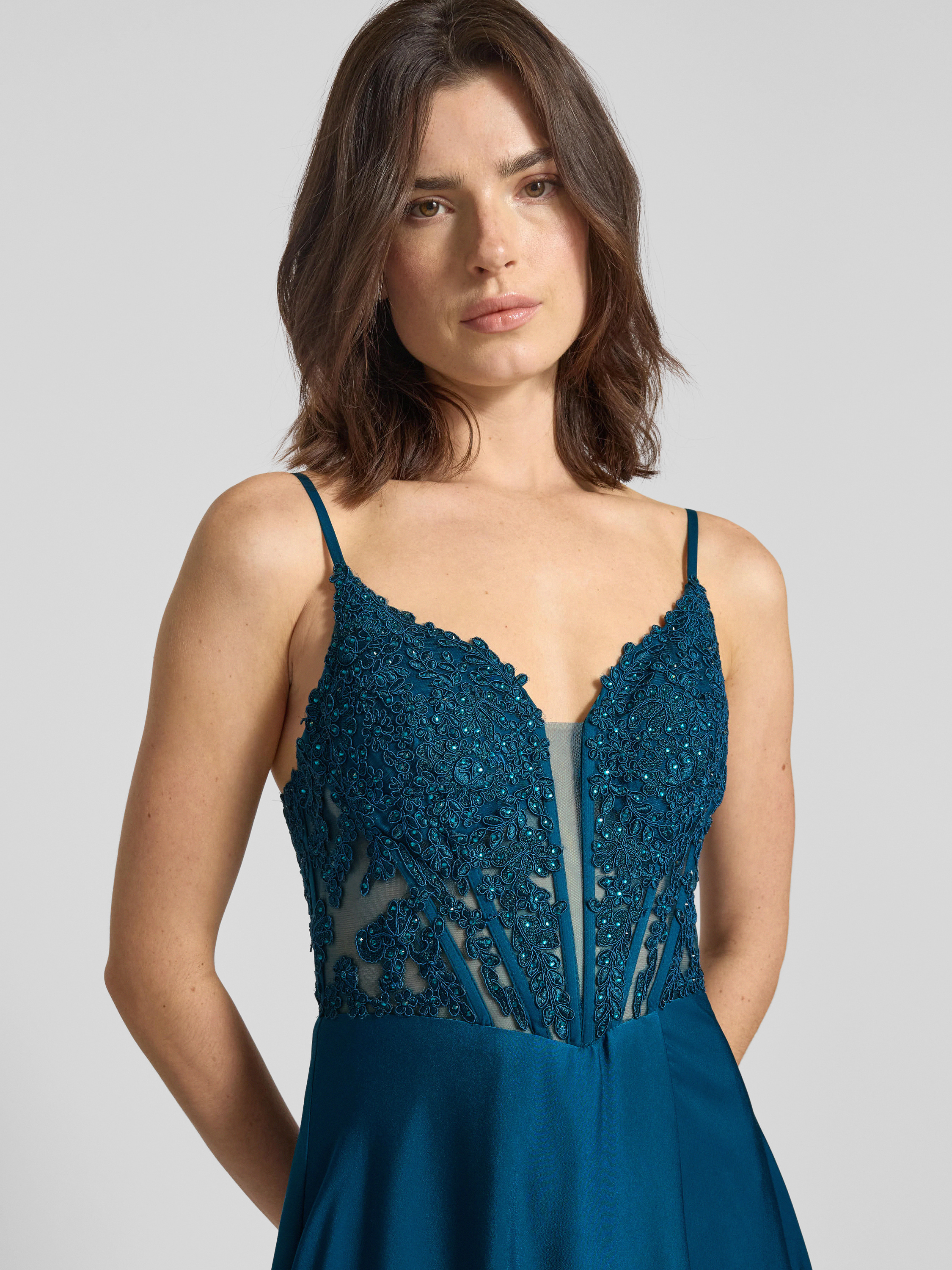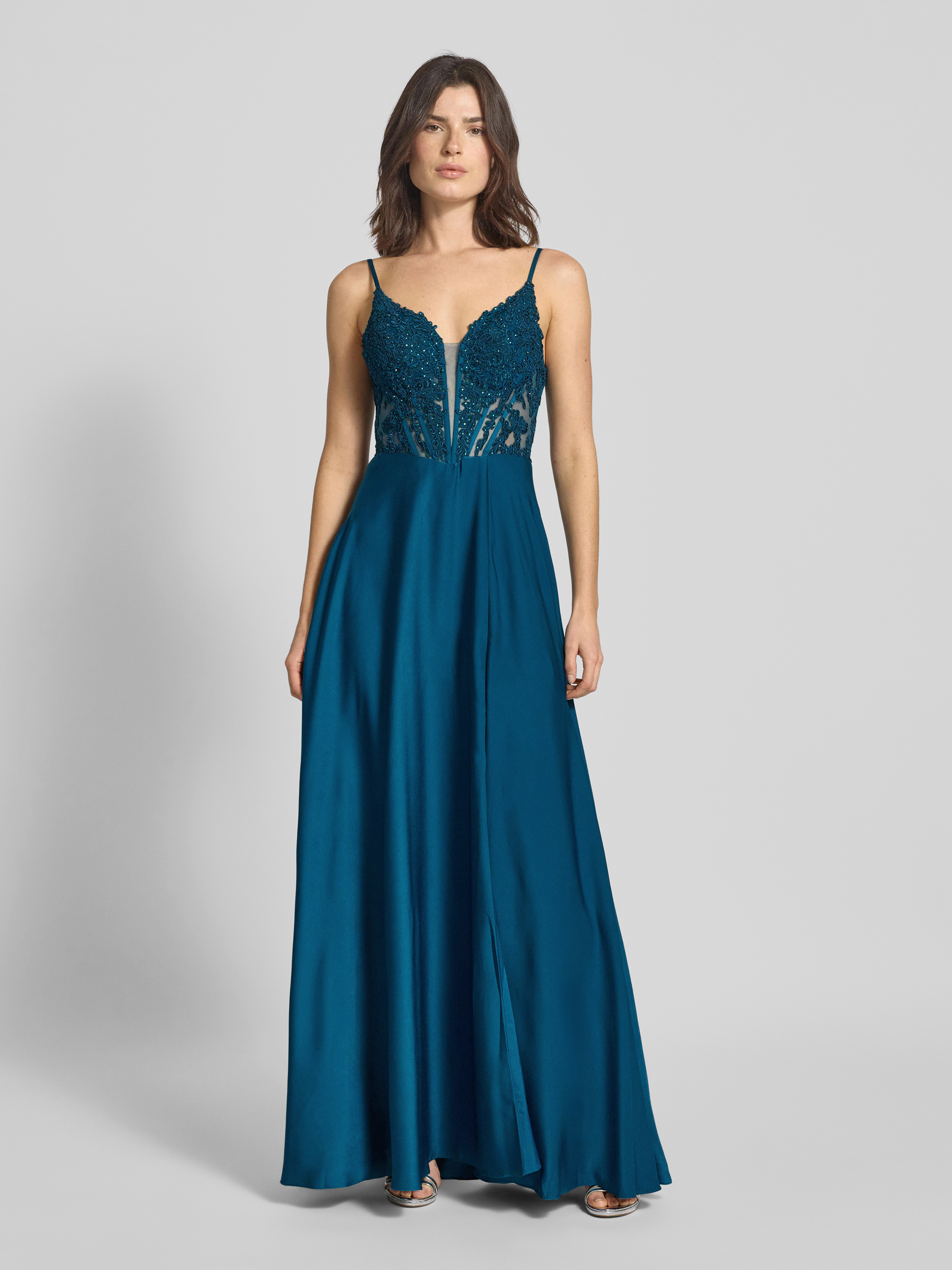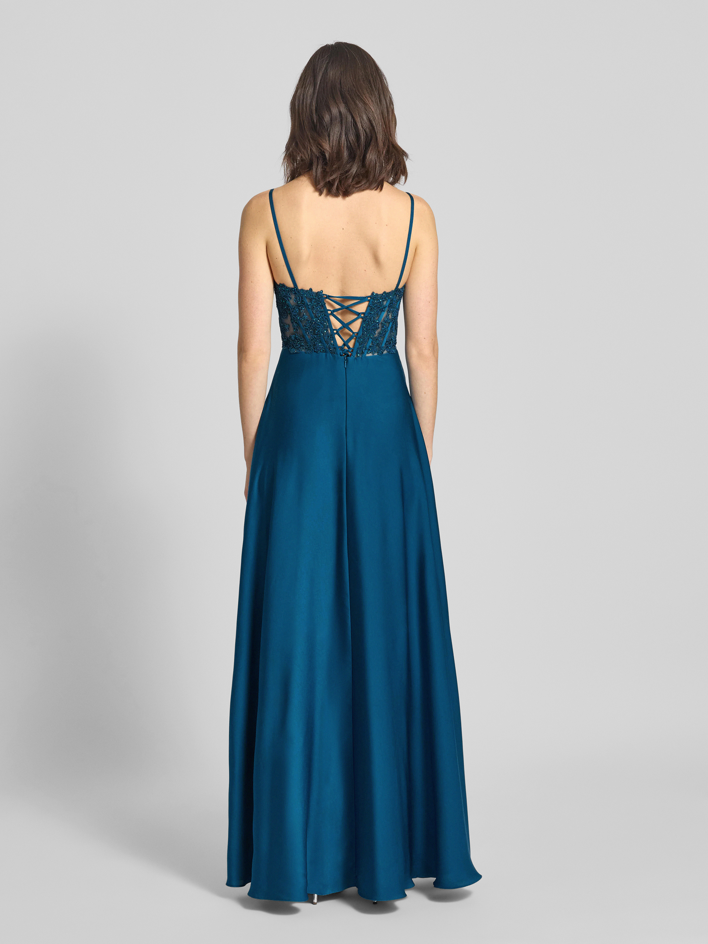 Sukienka wieczorowa z dekoltem w kształcie serca - petrol
