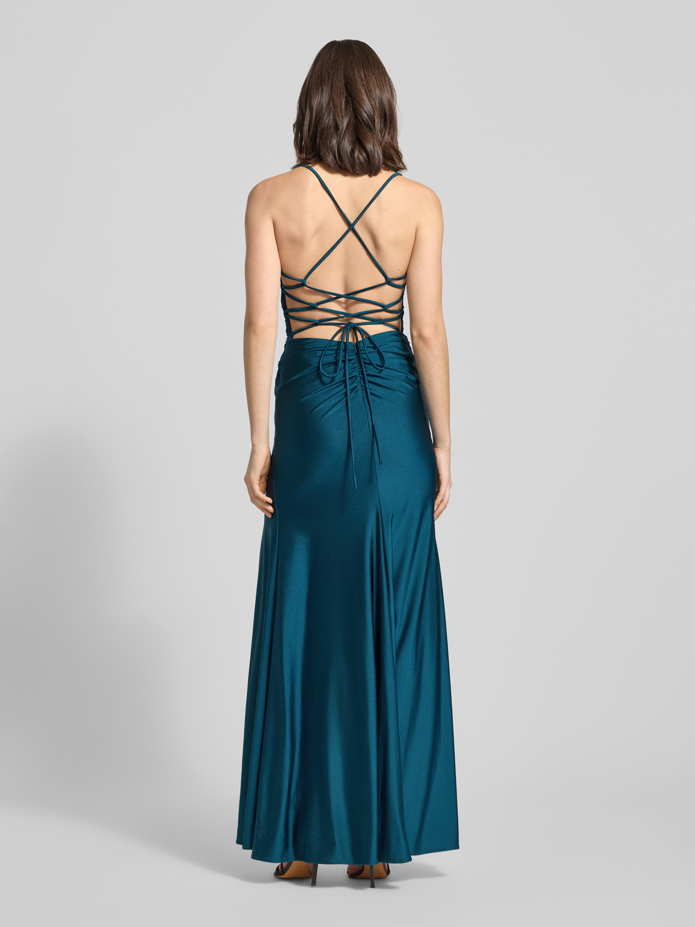 Sukienka wieczorowa z dekoltem w kształcie serca - petrol