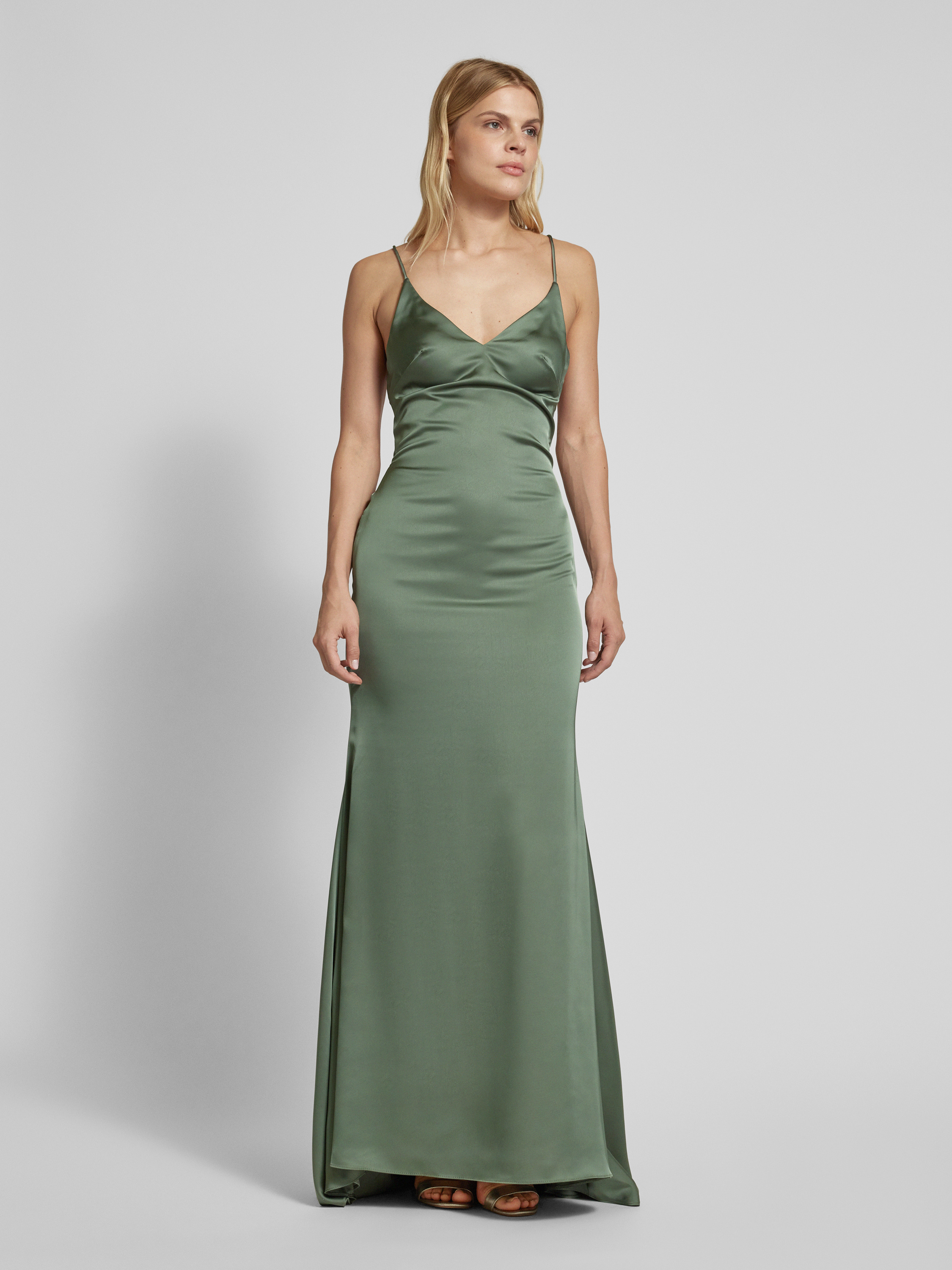 Sukienka wieczorowa z dekoltem w serek - zielony