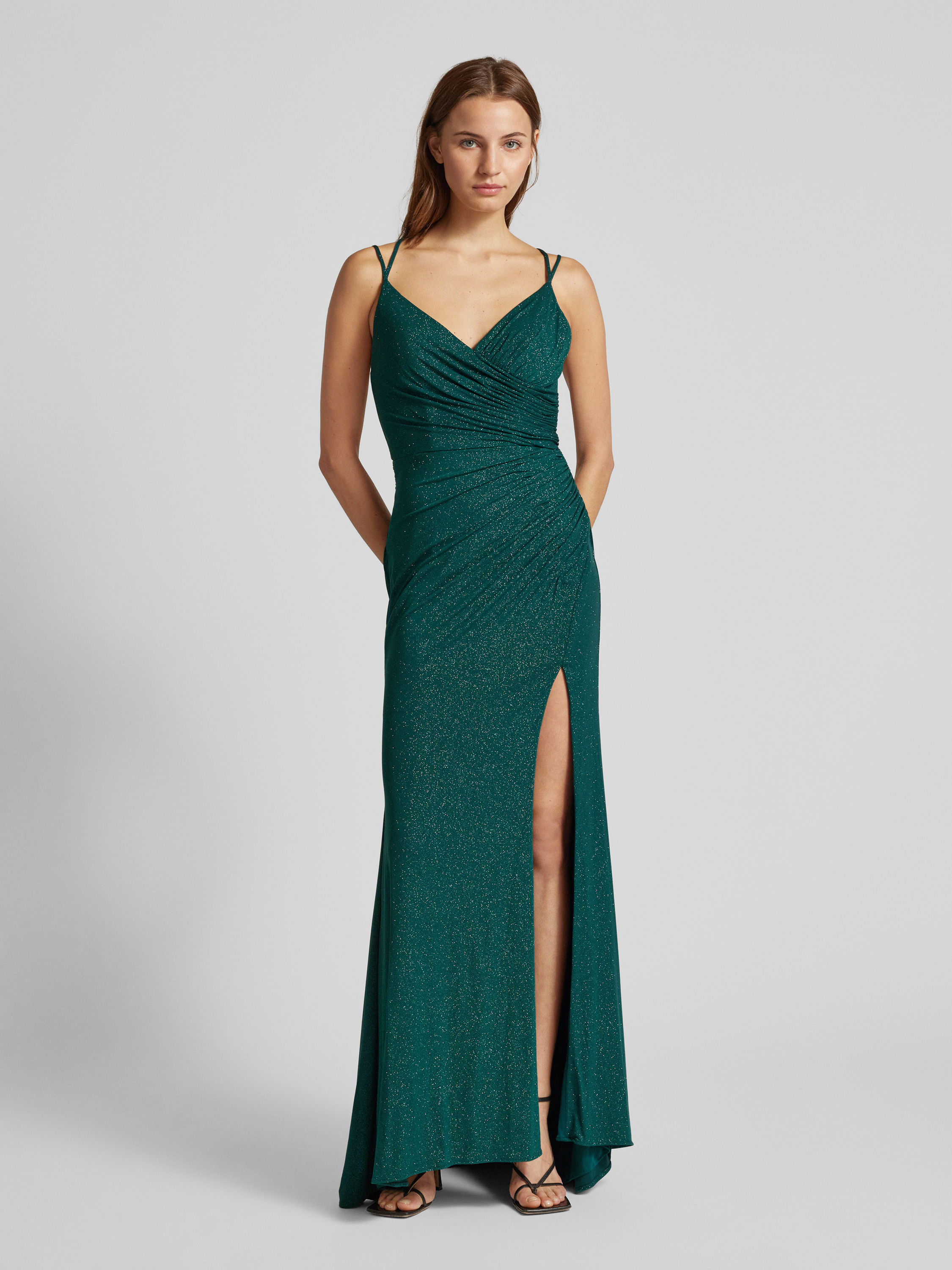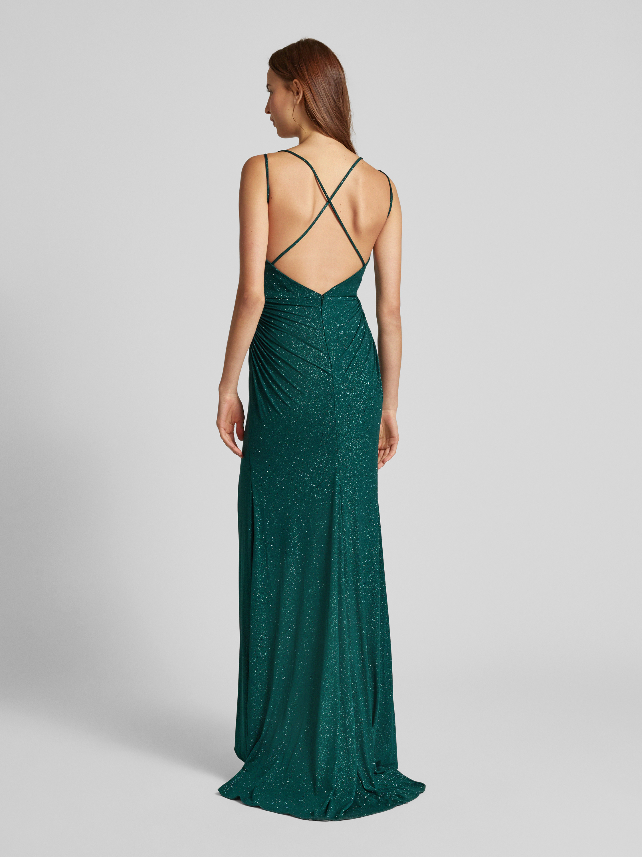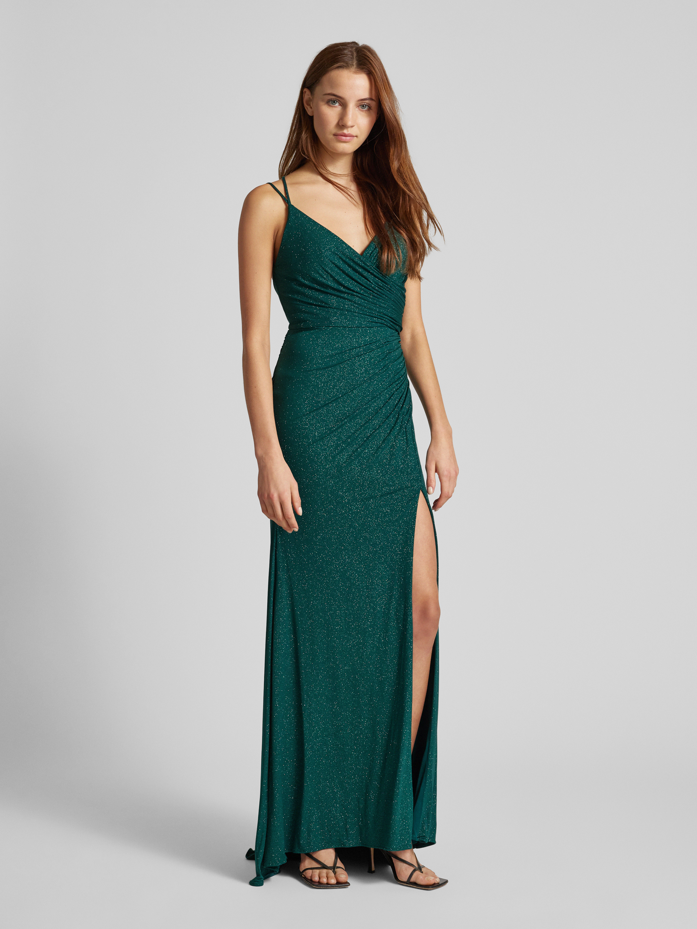 Sukienka wieczorowa z marszczeniami - ciemnozielony
