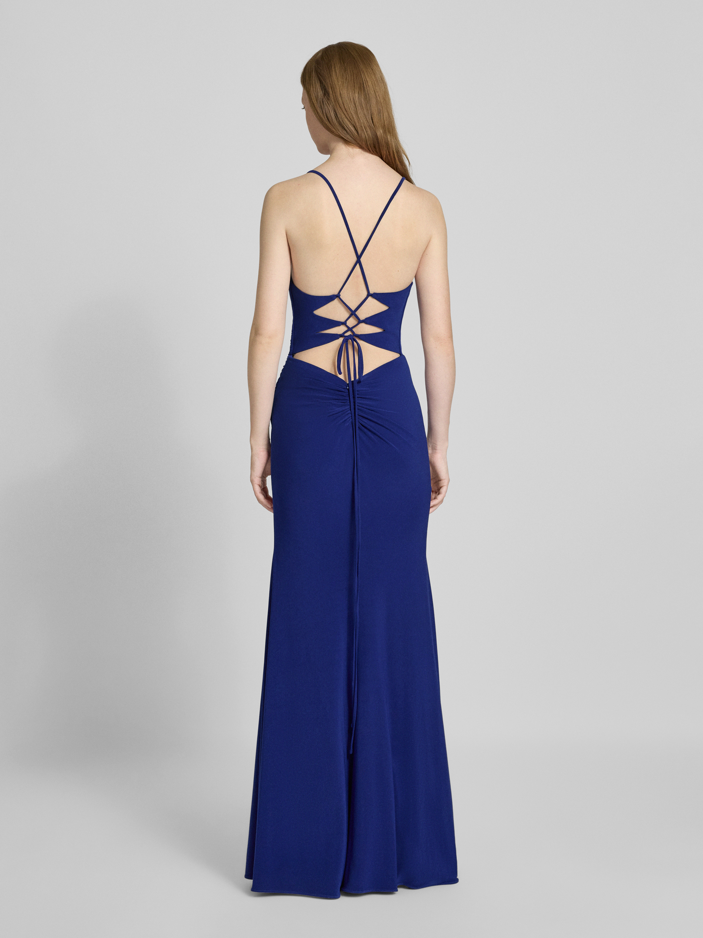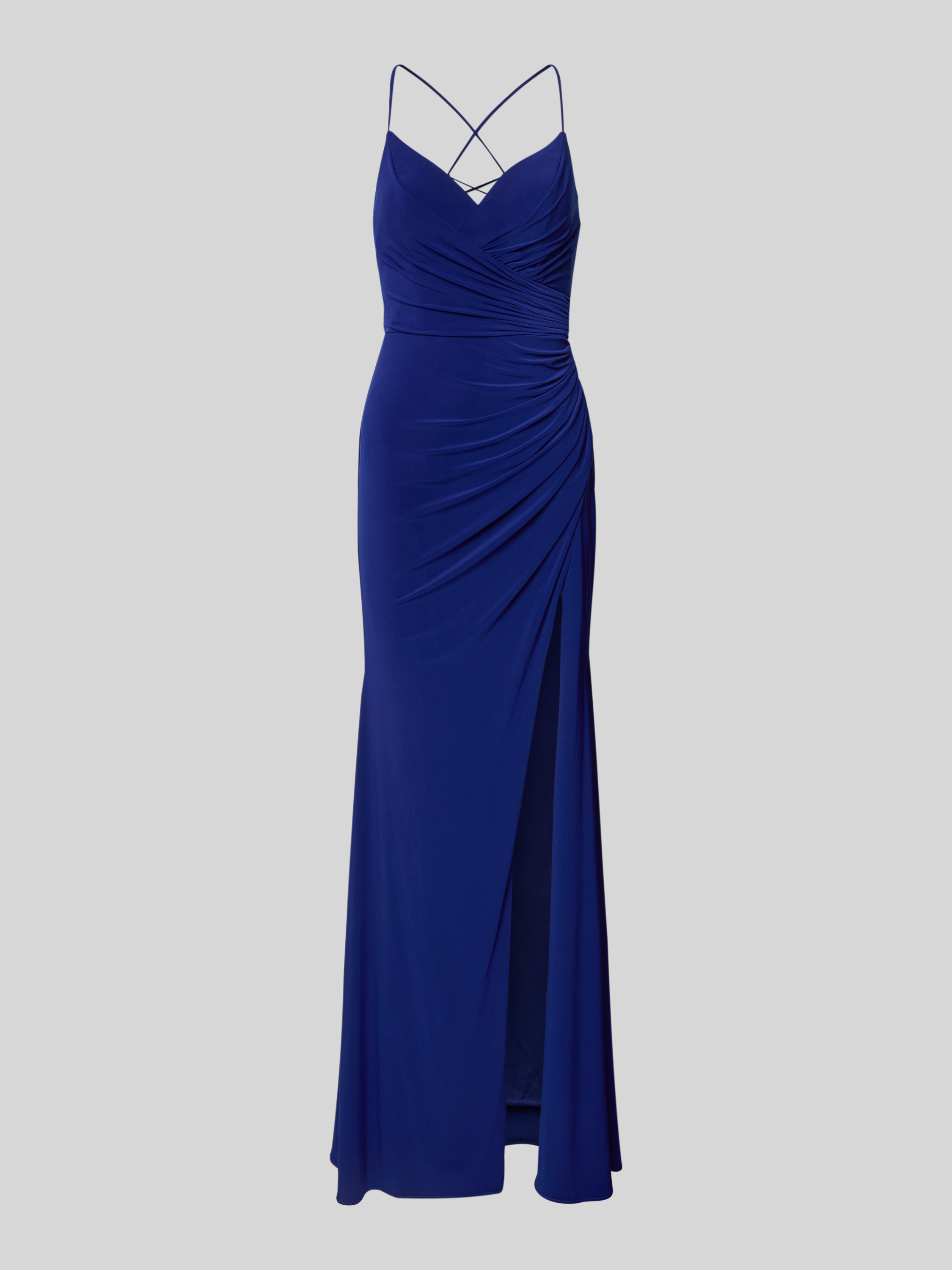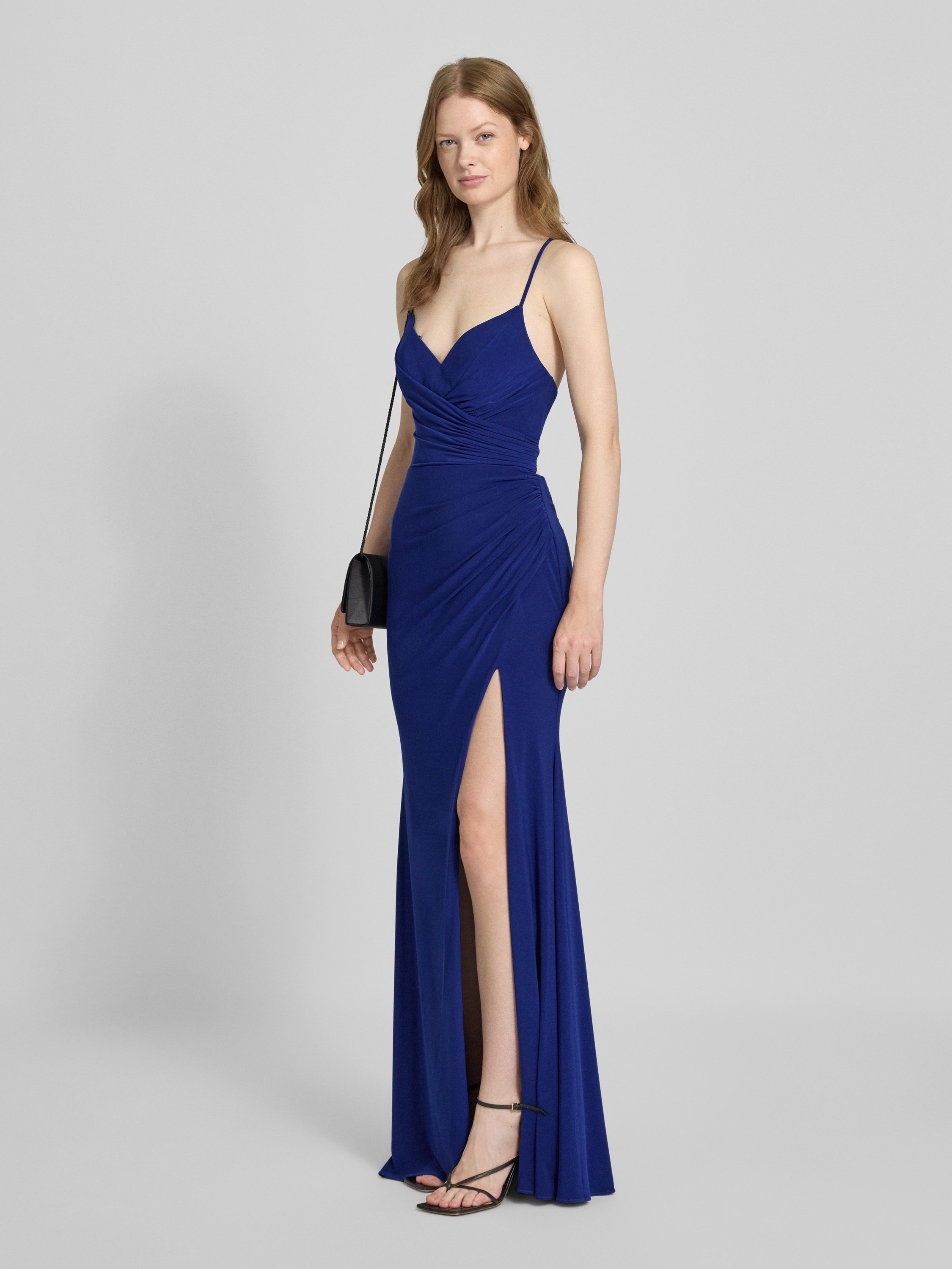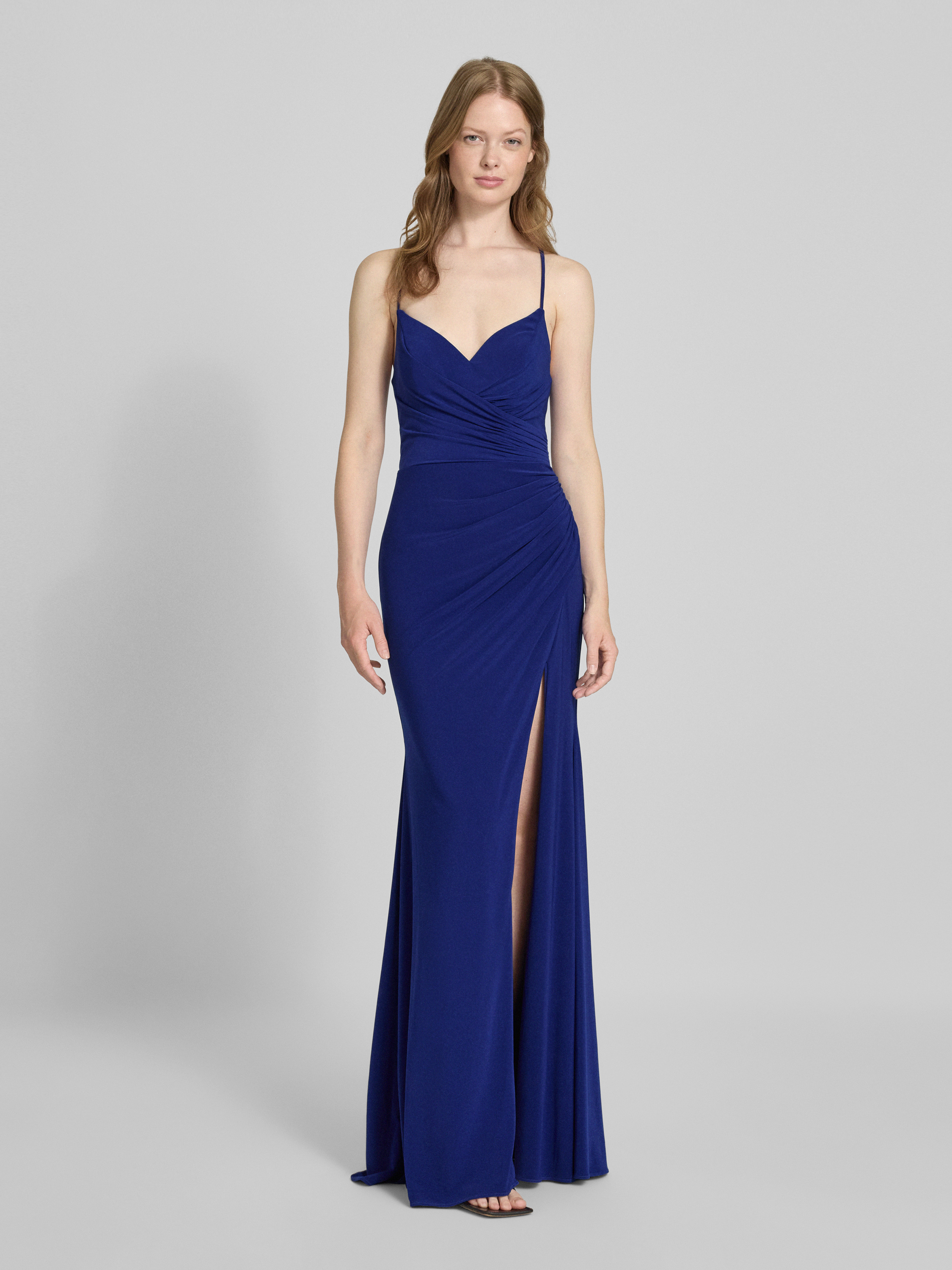 Sukienka wieczorowa z marszczeniami i rozcięciem - królewski niebieski melanż