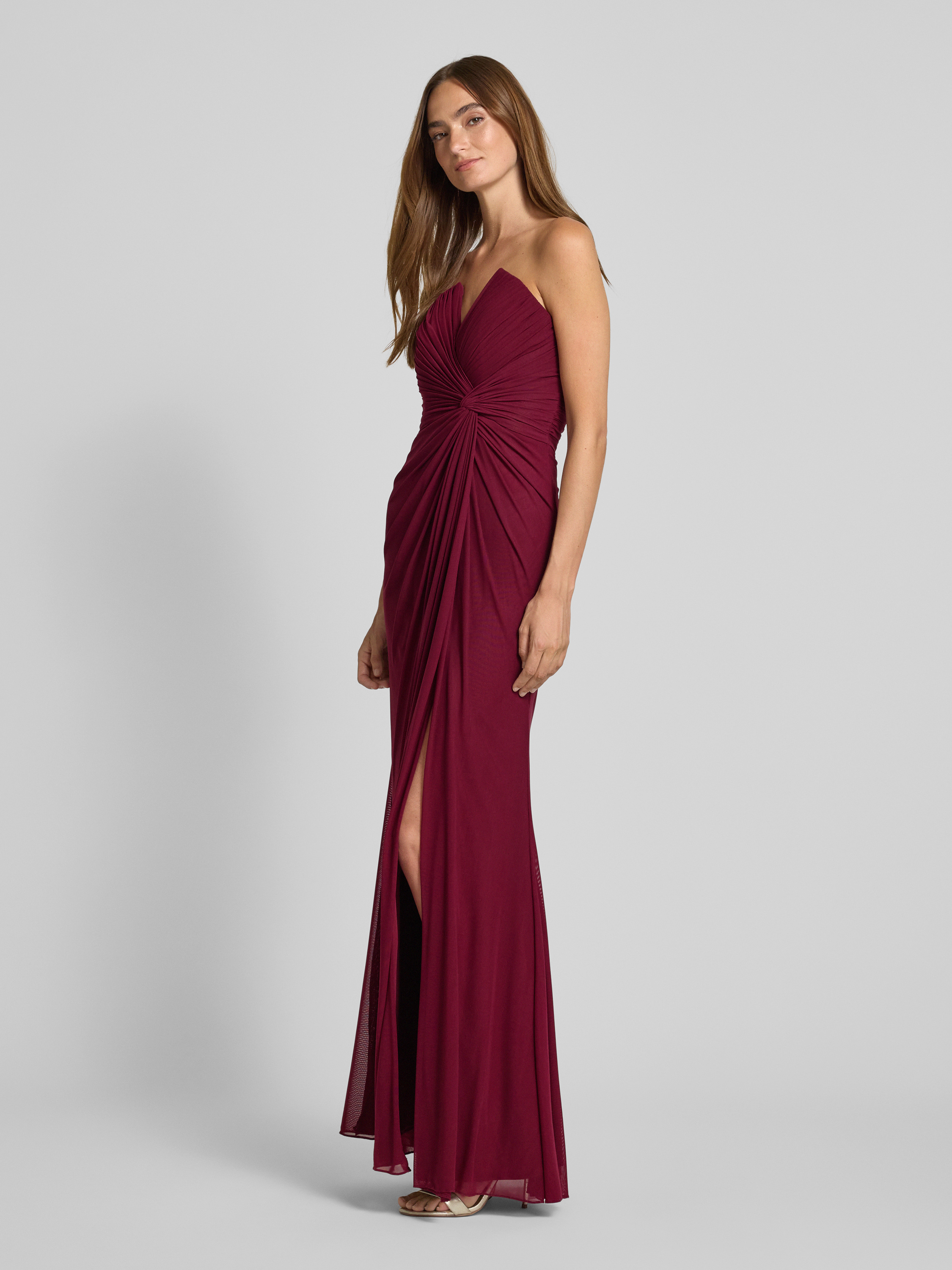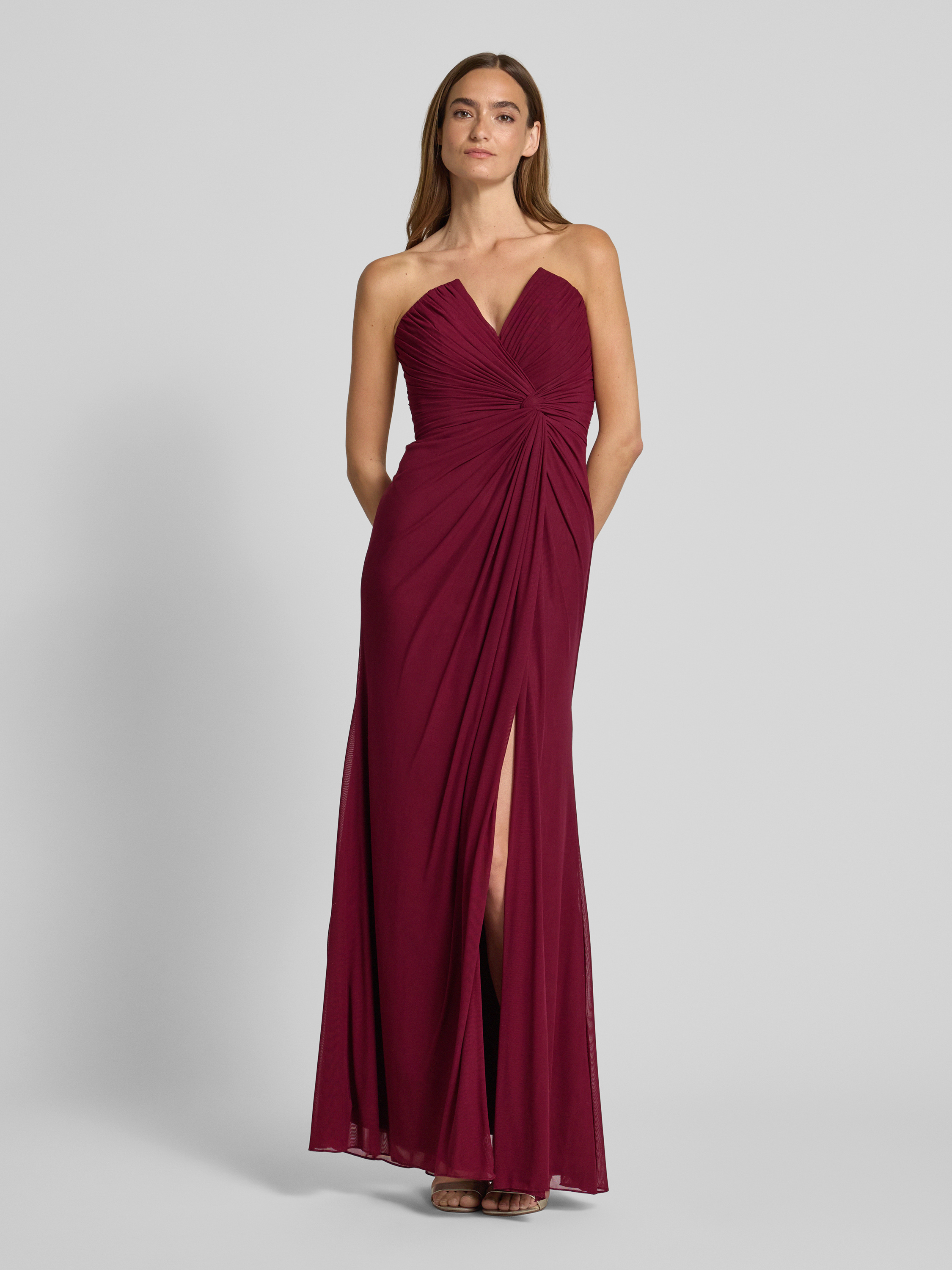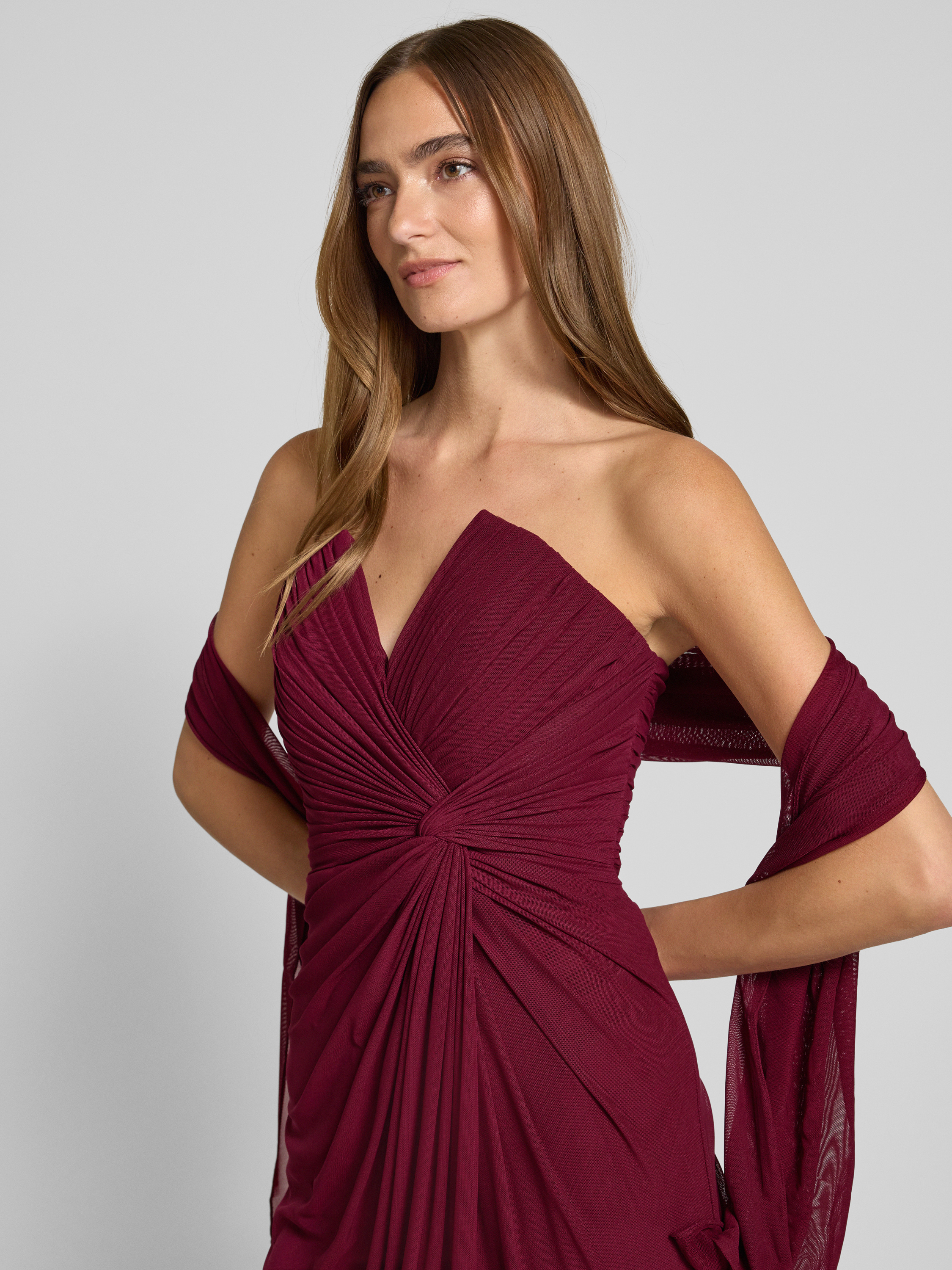 Sukienka wieczorowa z wiązanym detalem - bordowy
