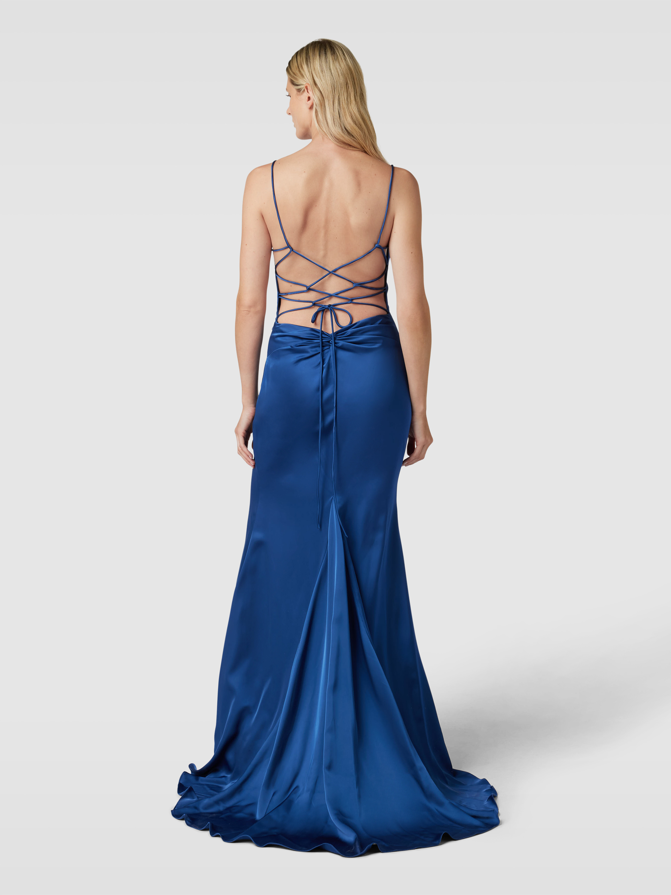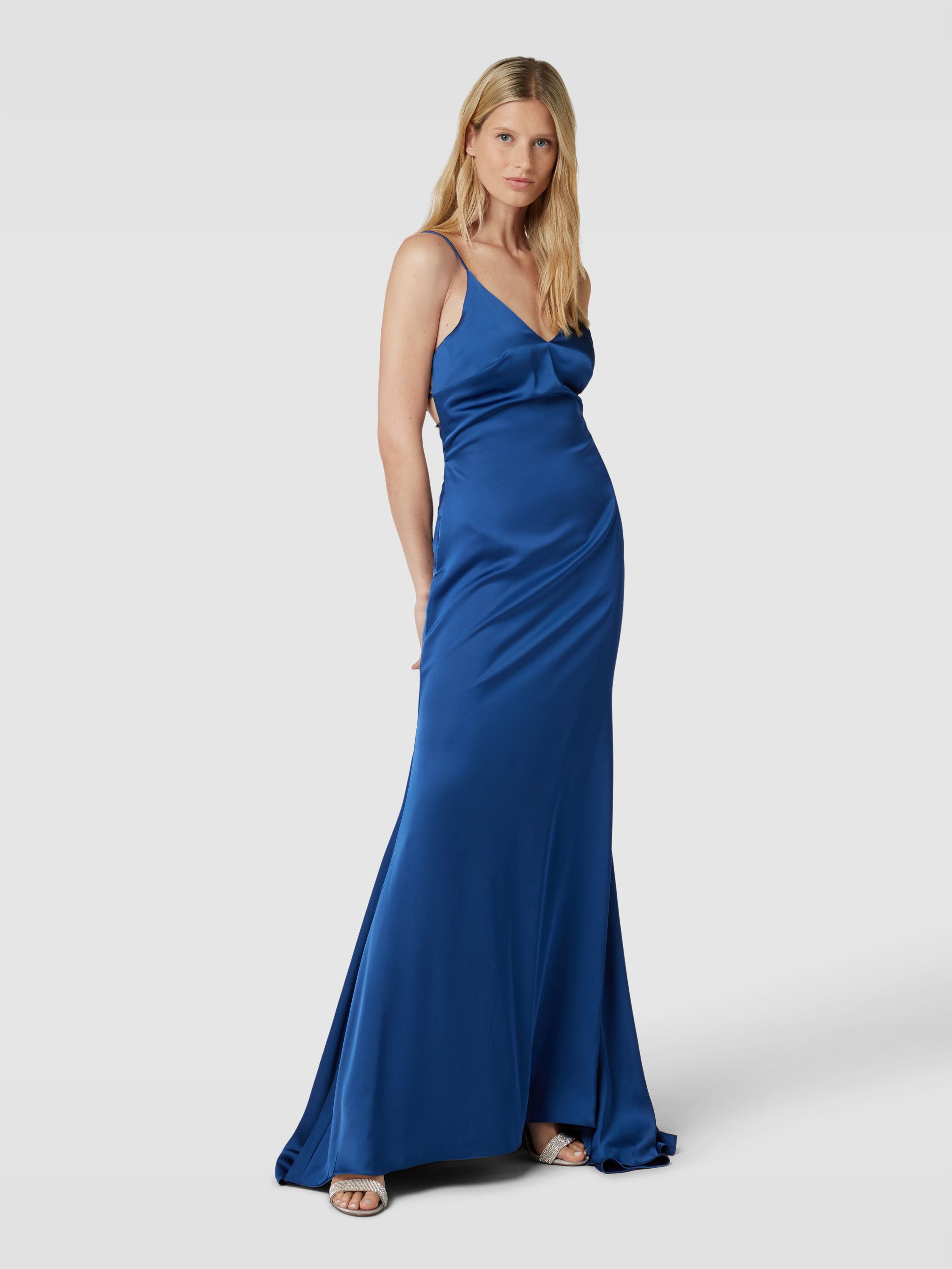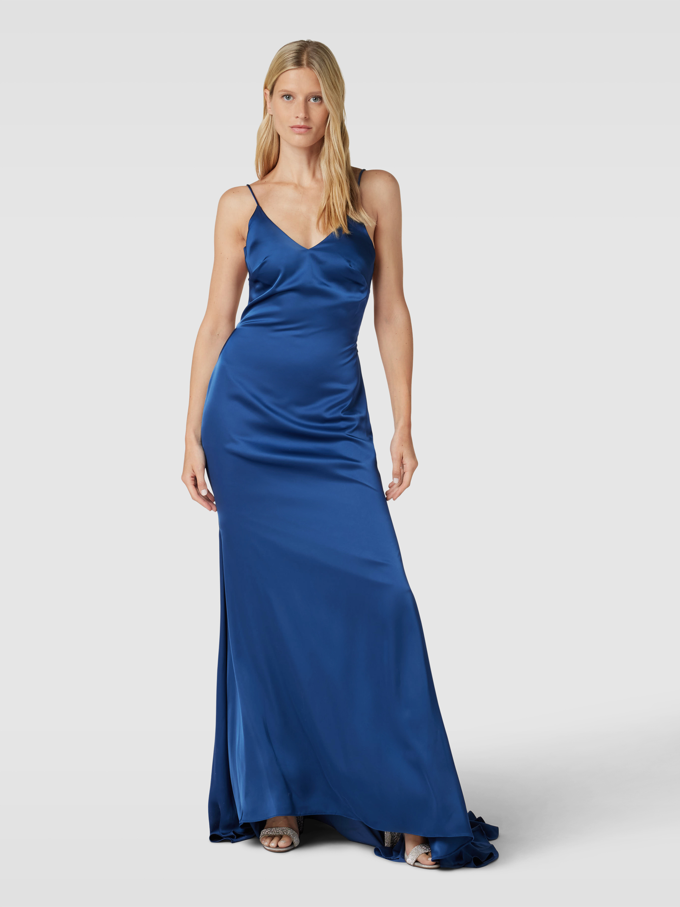 Sukienka wieczorowa ze skrzyżowanymi, cienkimi ramiączkami - królewski niebieski