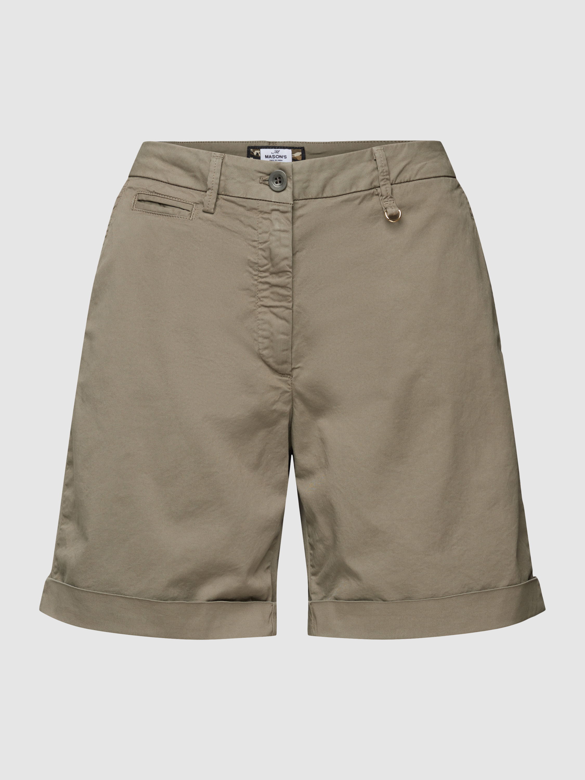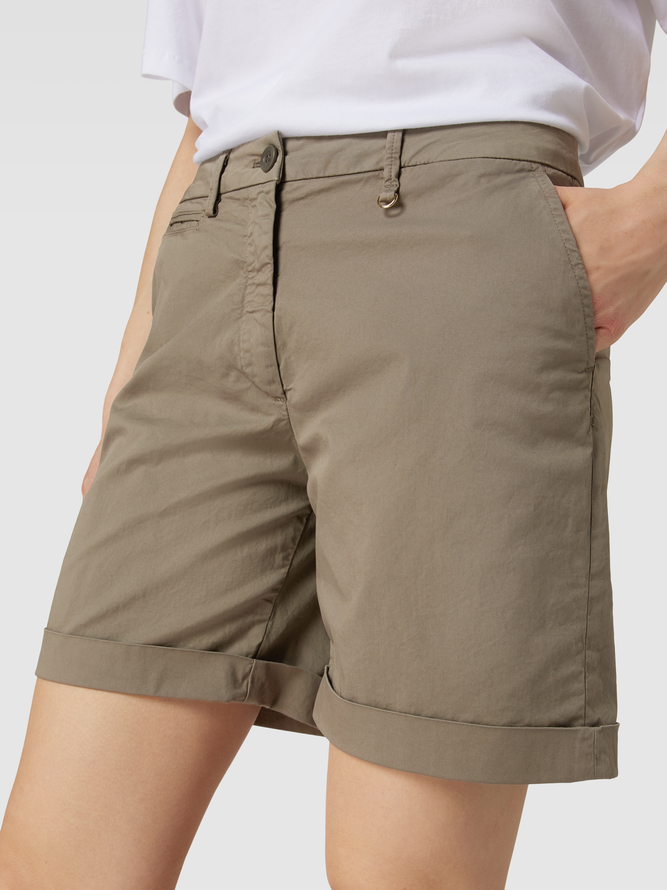 Bermudy o kroju straight fit z metaliczną zawieszką model ‘JACQUELINE’ - oliwkowy