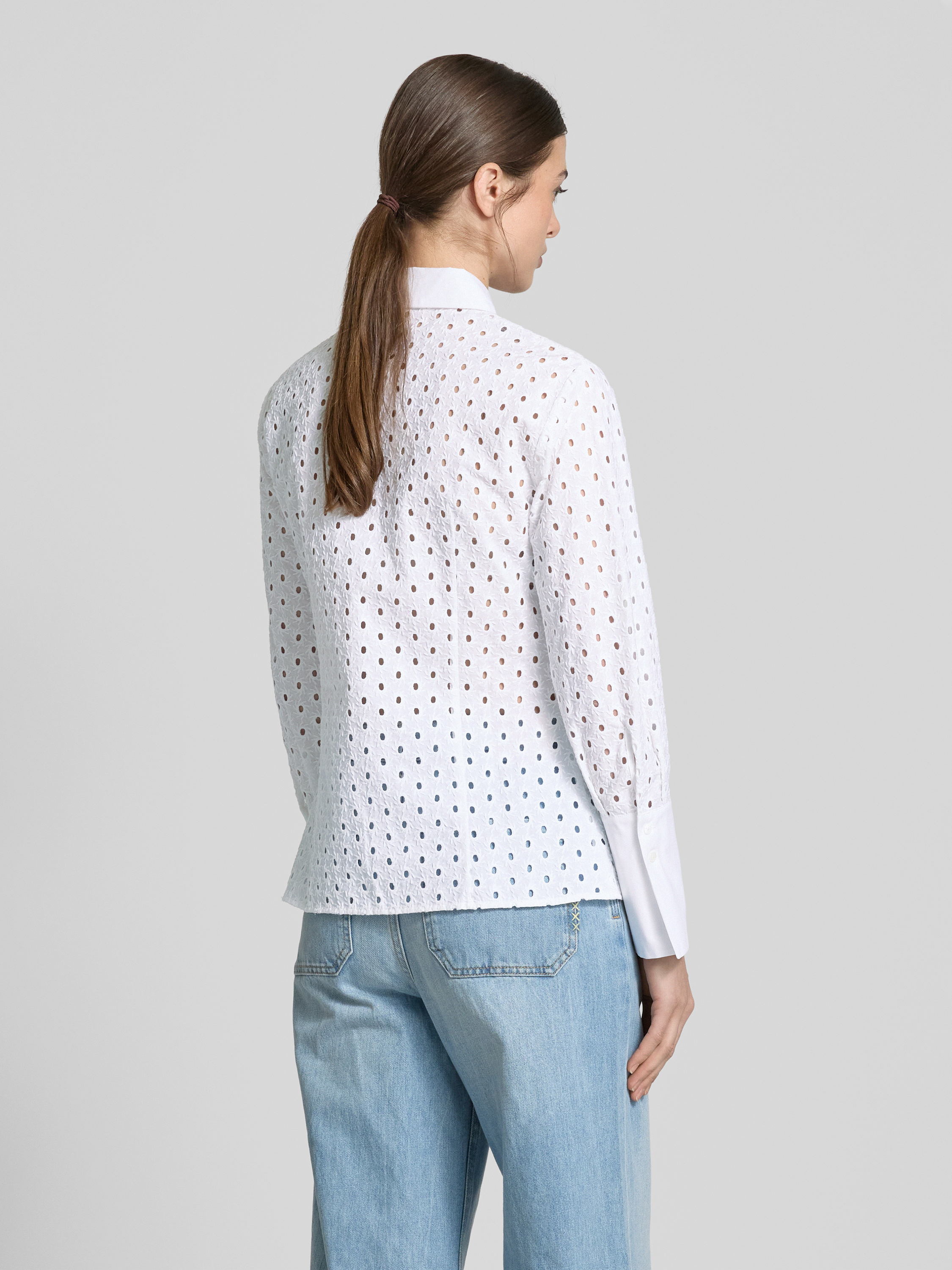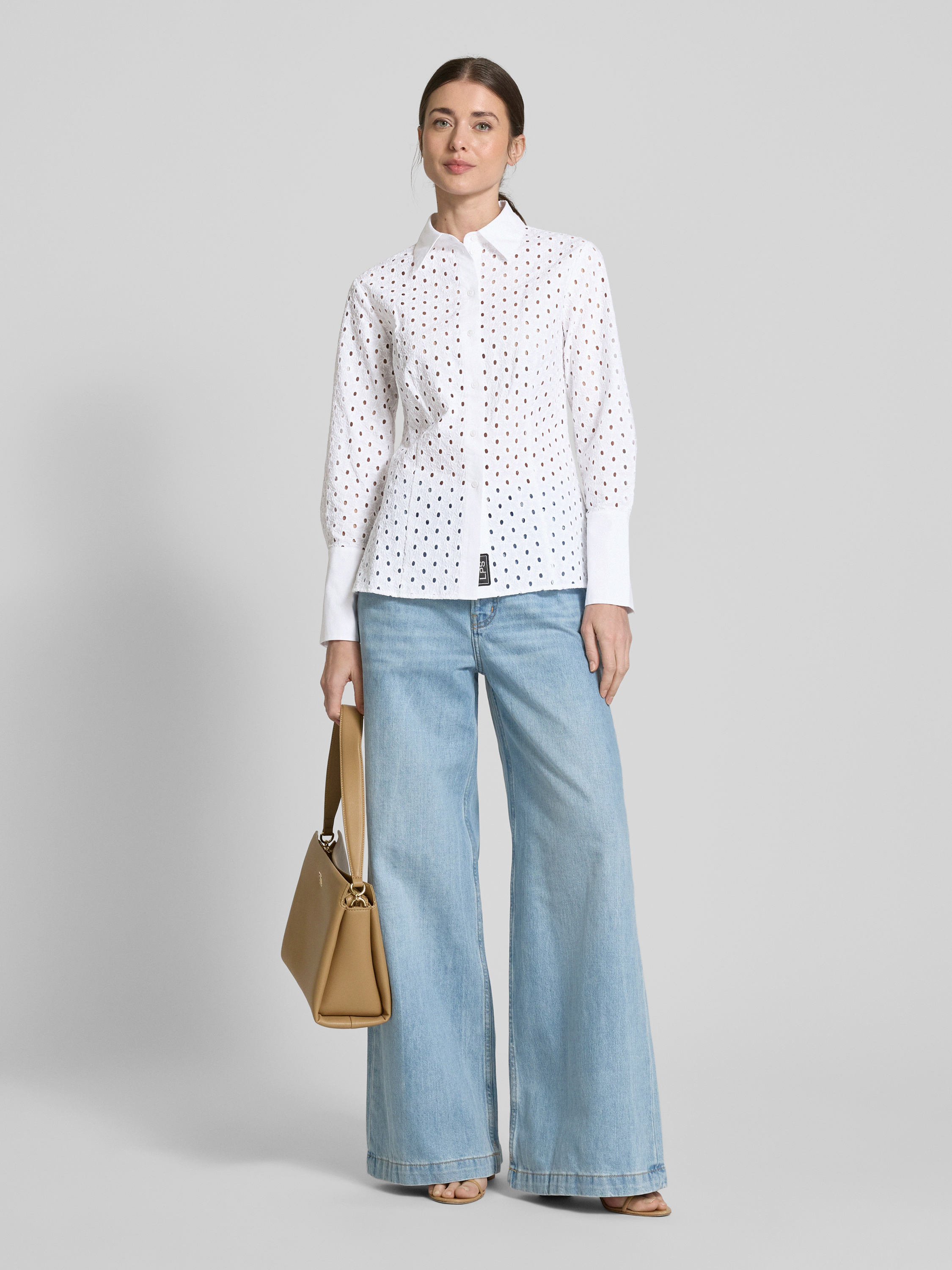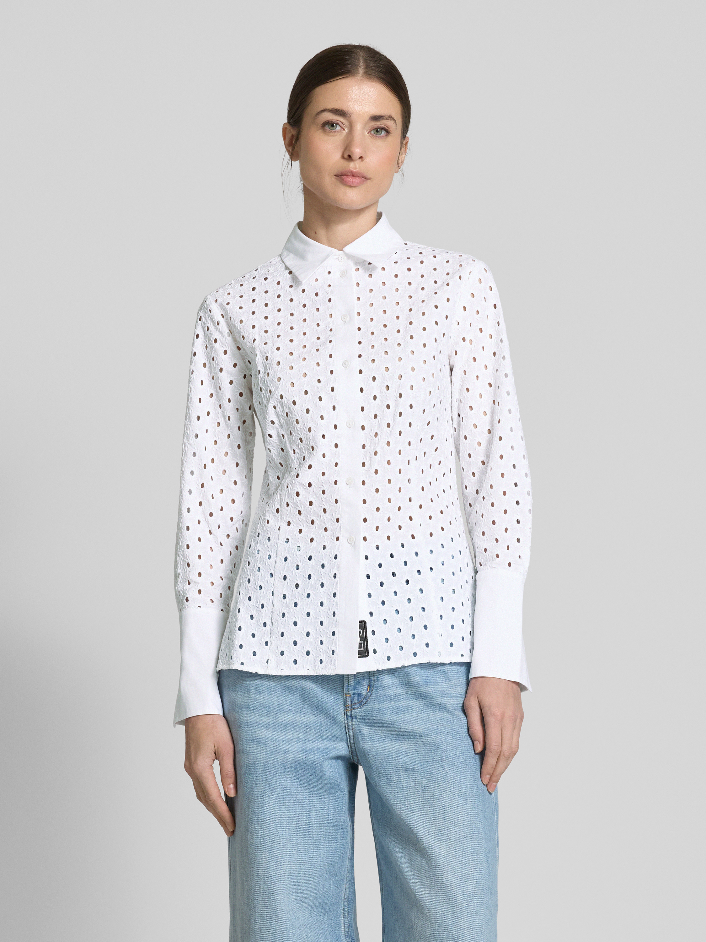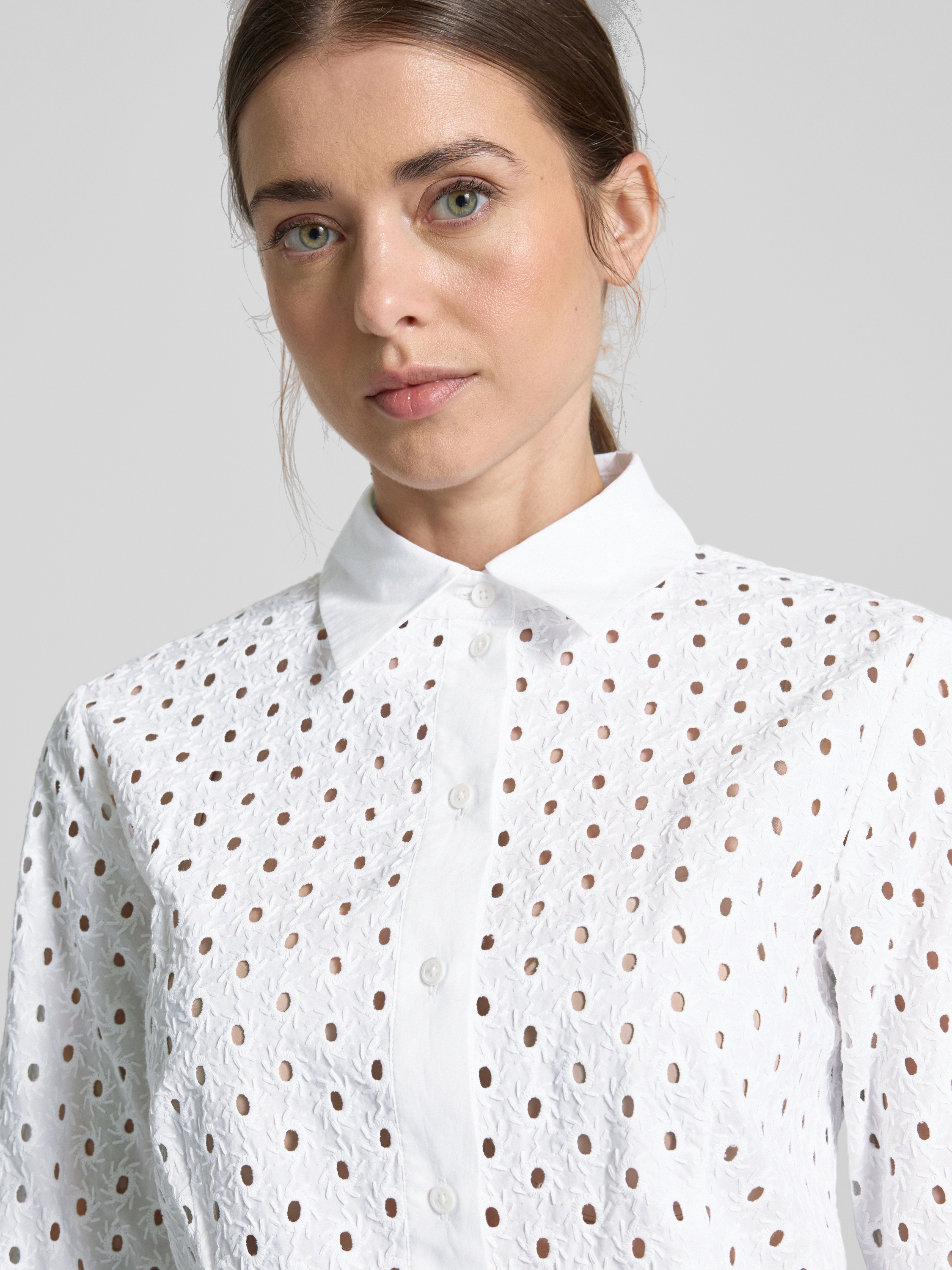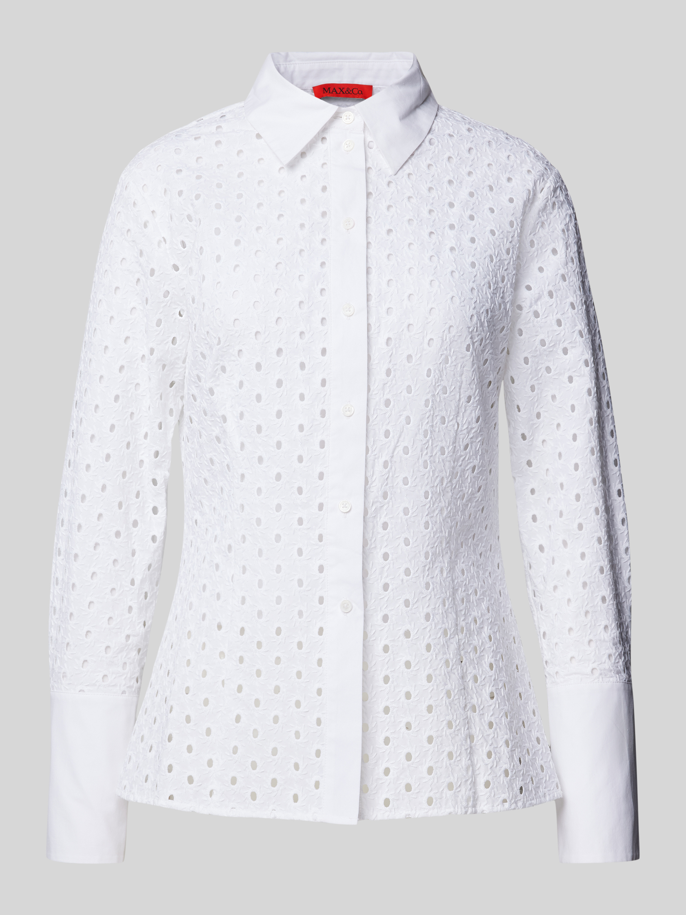 Bluzka koszulowa o kroju regular fit z haftem angielskim model ‘JAMAICA’ - biały