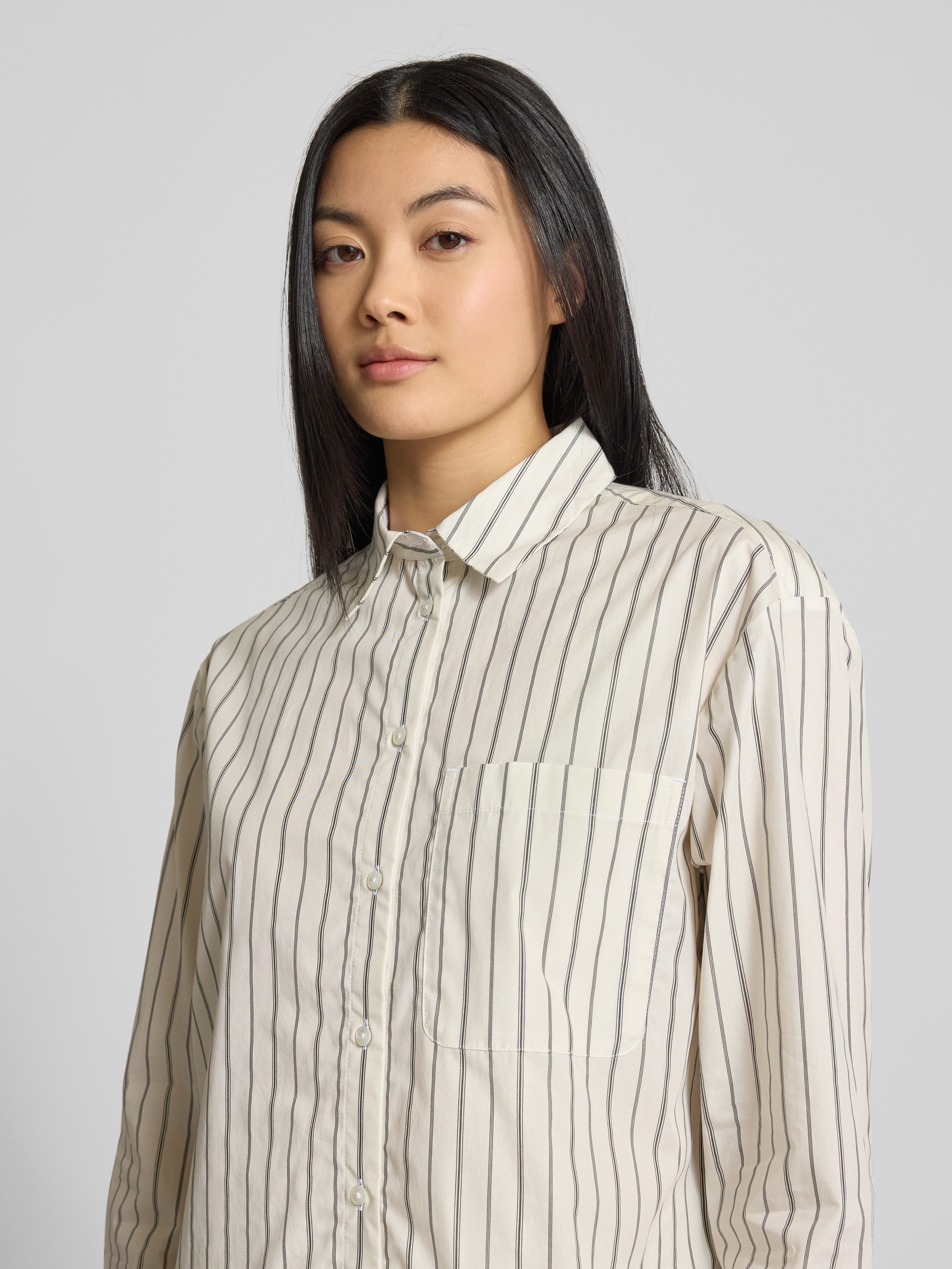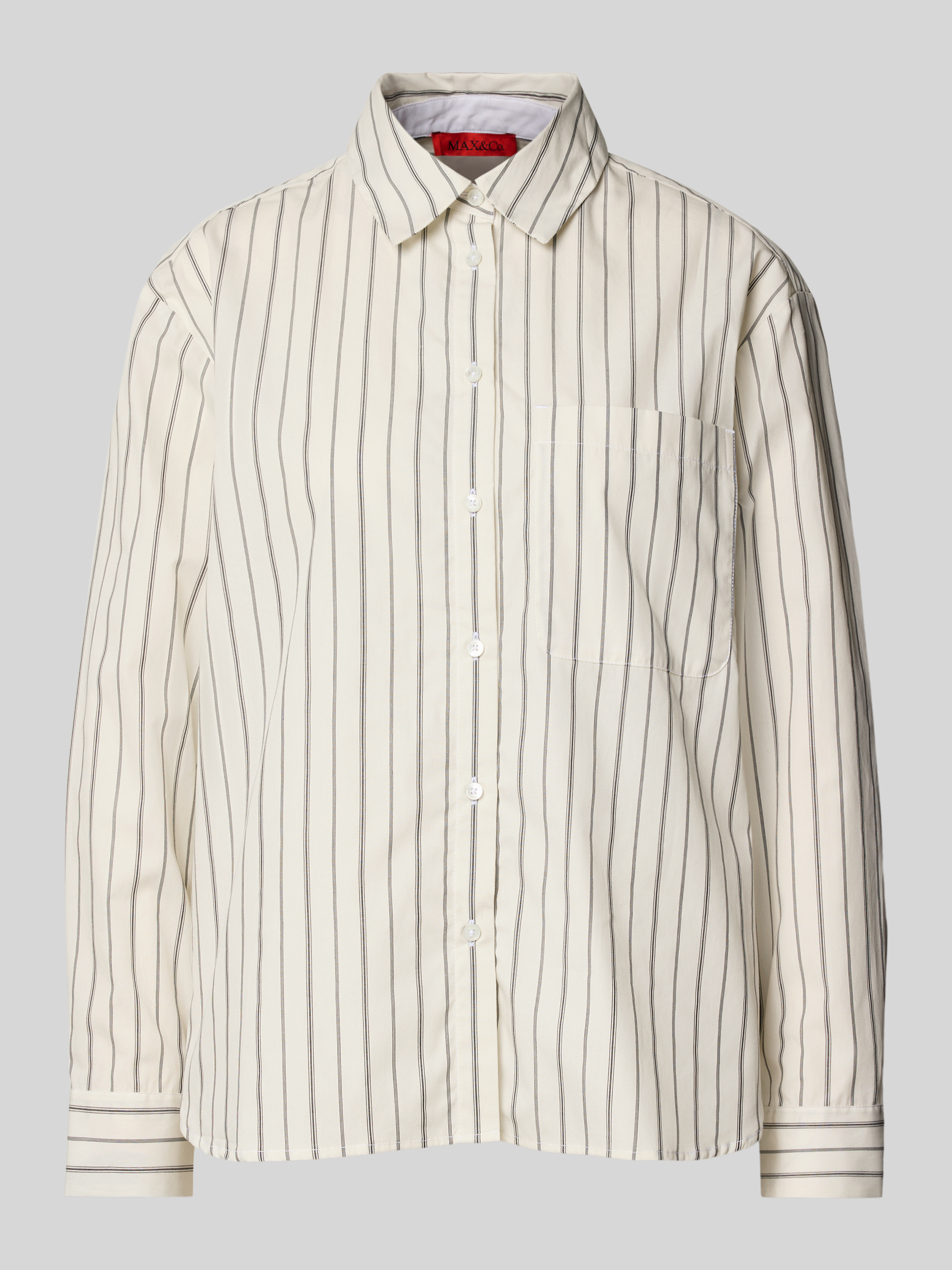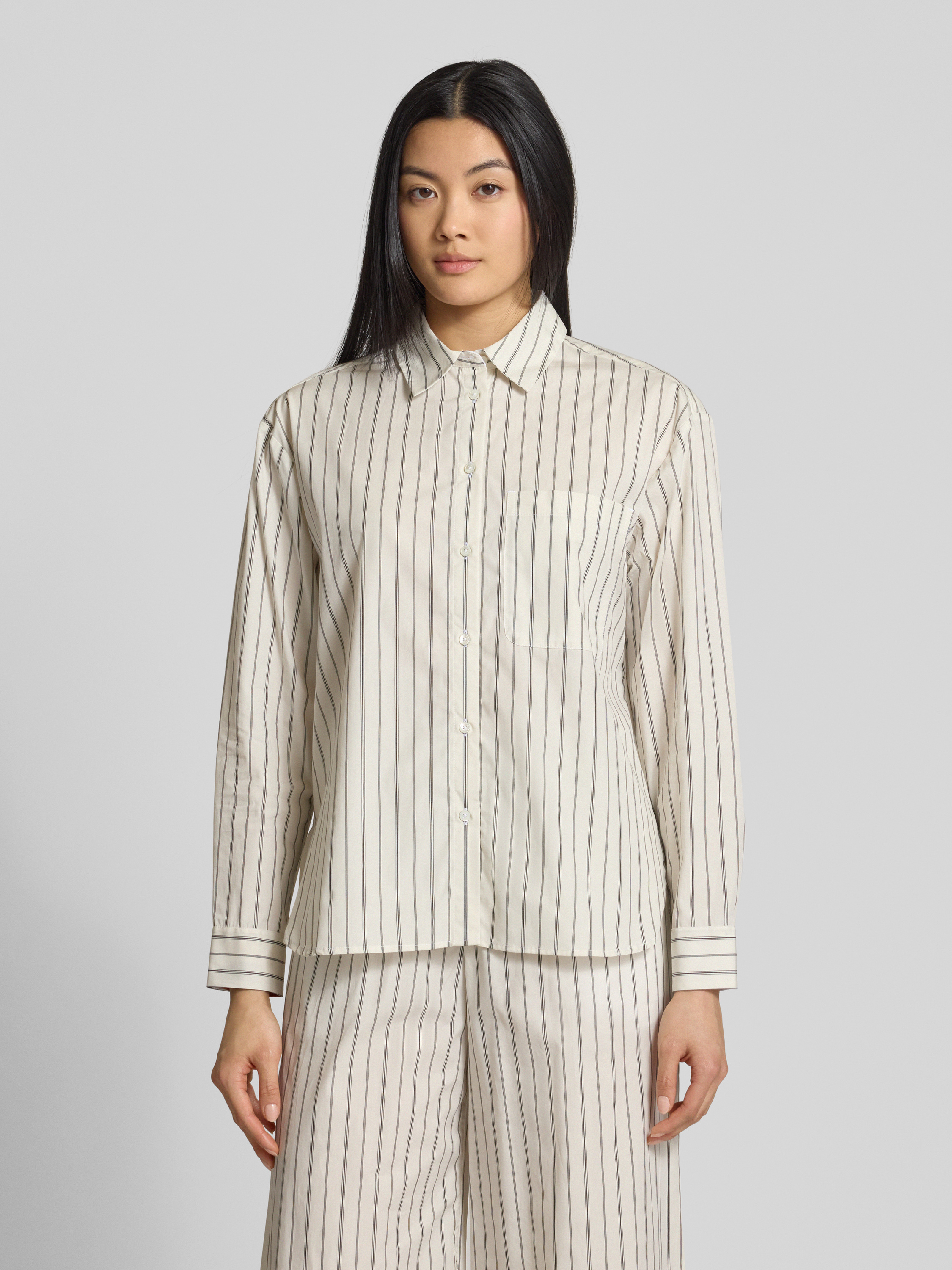Bluzka koszulowa o kroju regular fit z kieszenią na piersi model ‘BARI’ - écru