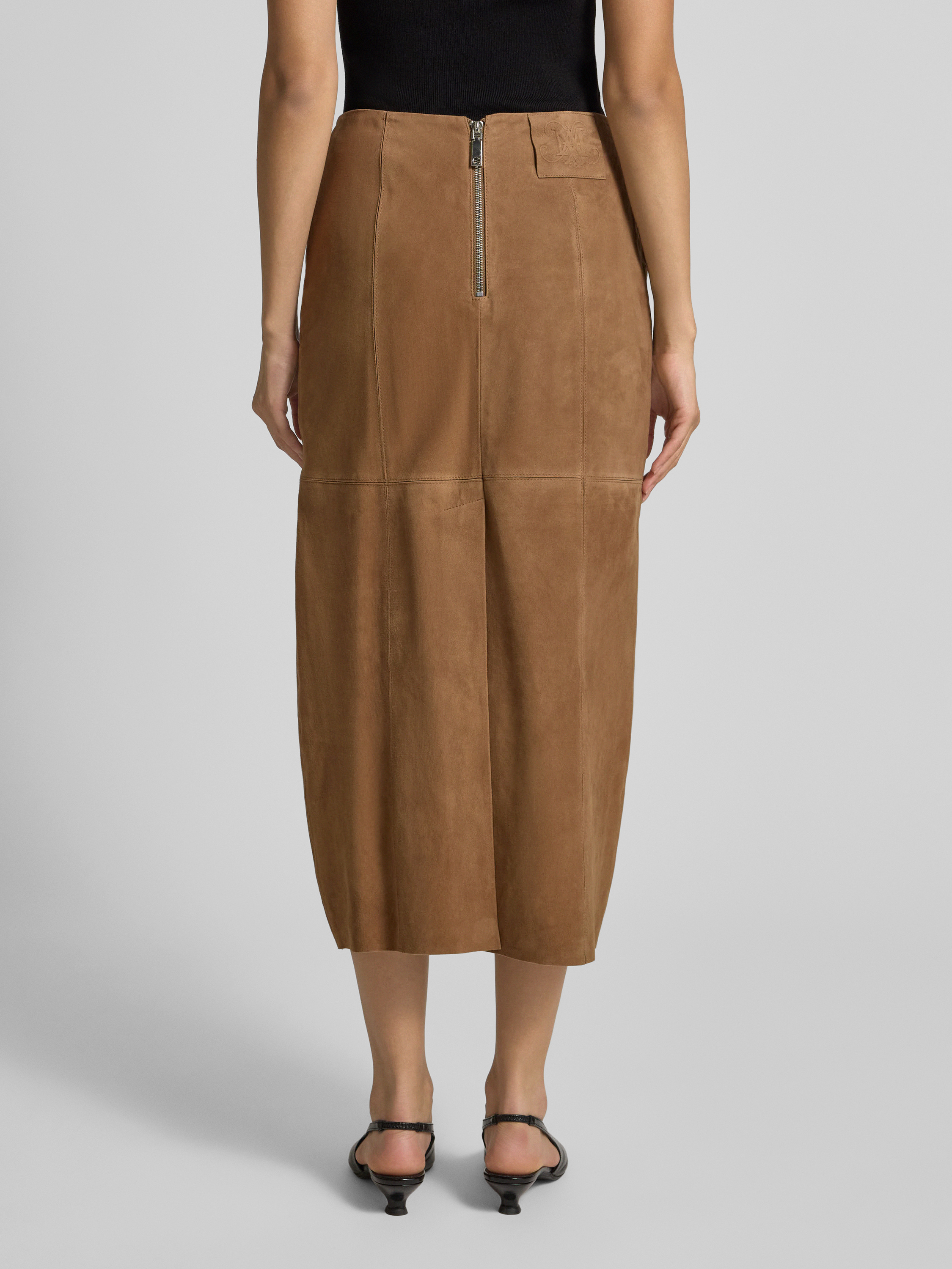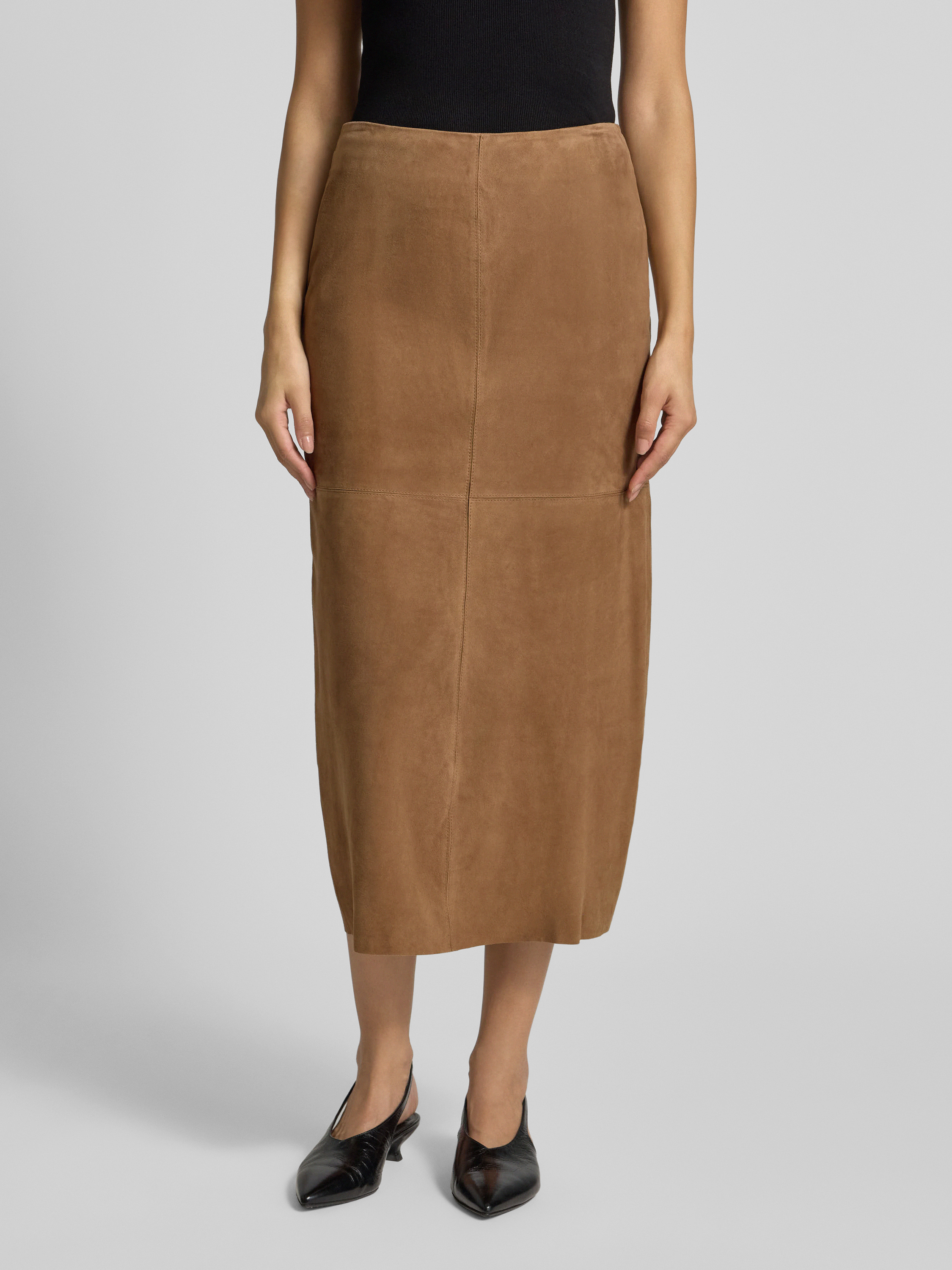Spódnica midi z naturalnej skóry koziej model ‘GUELFI’ - orzechowy