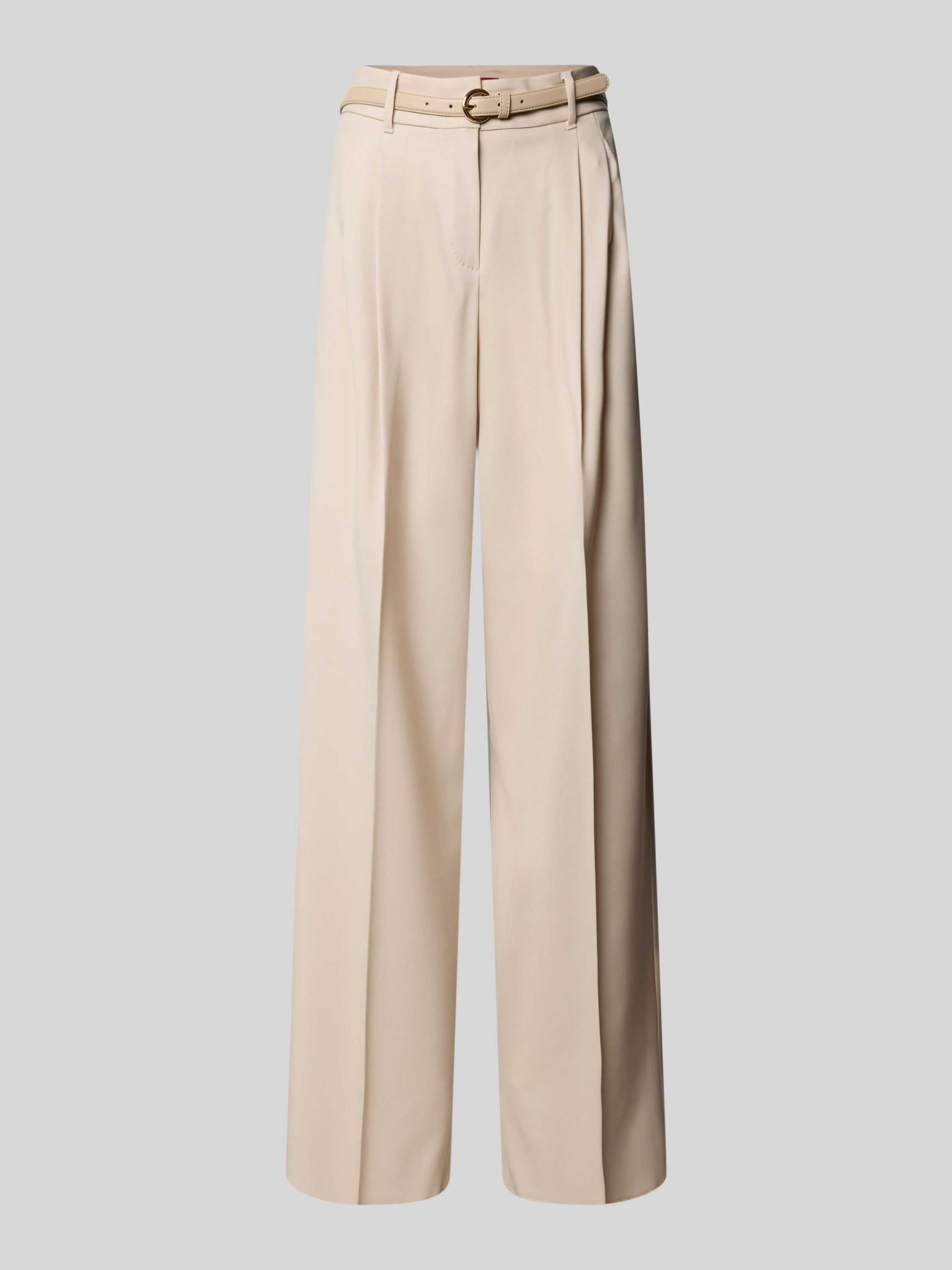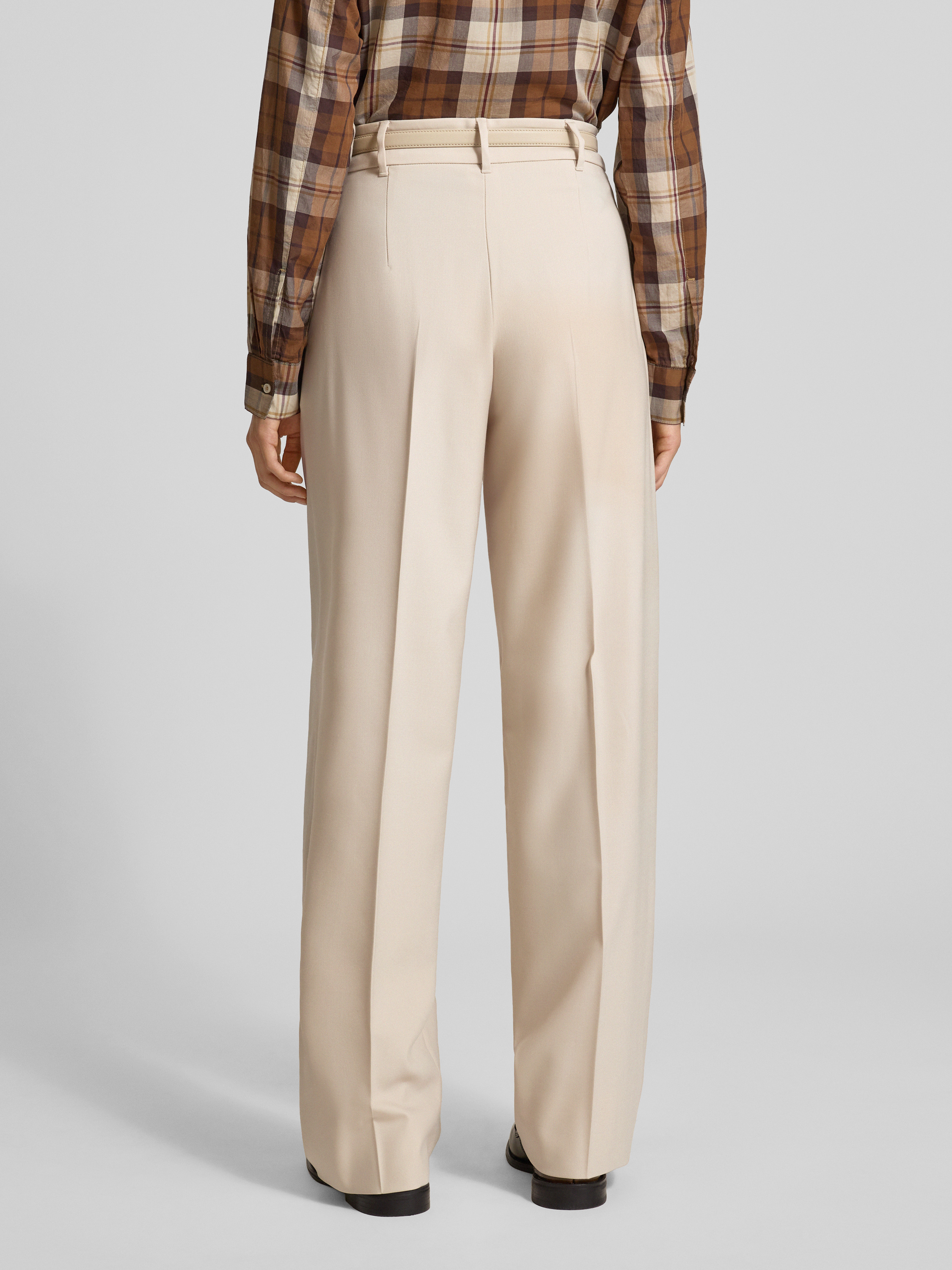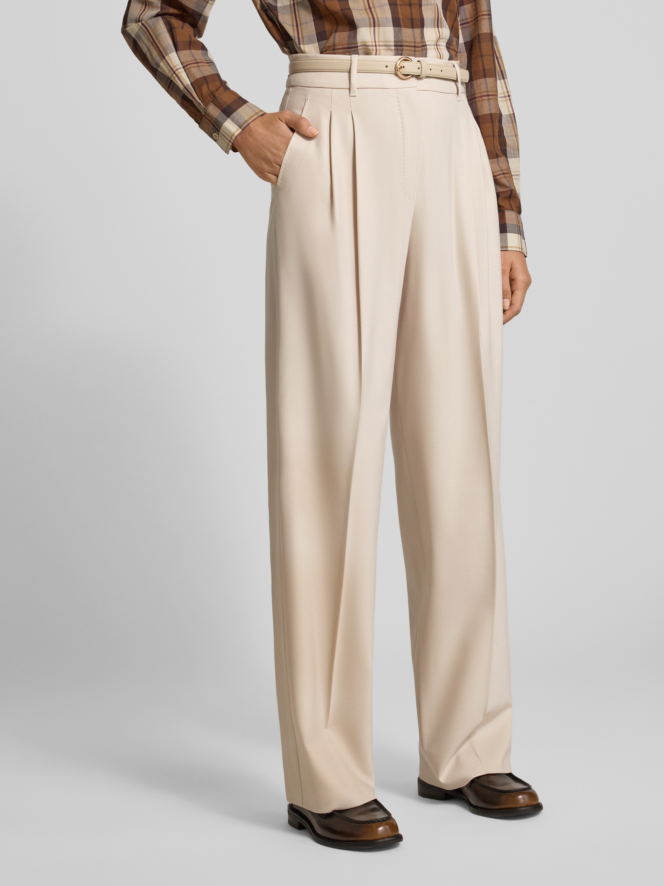 Spodnie szerokie z mieszanki żywej wełny model ‘ENTRATA’ - beżowy