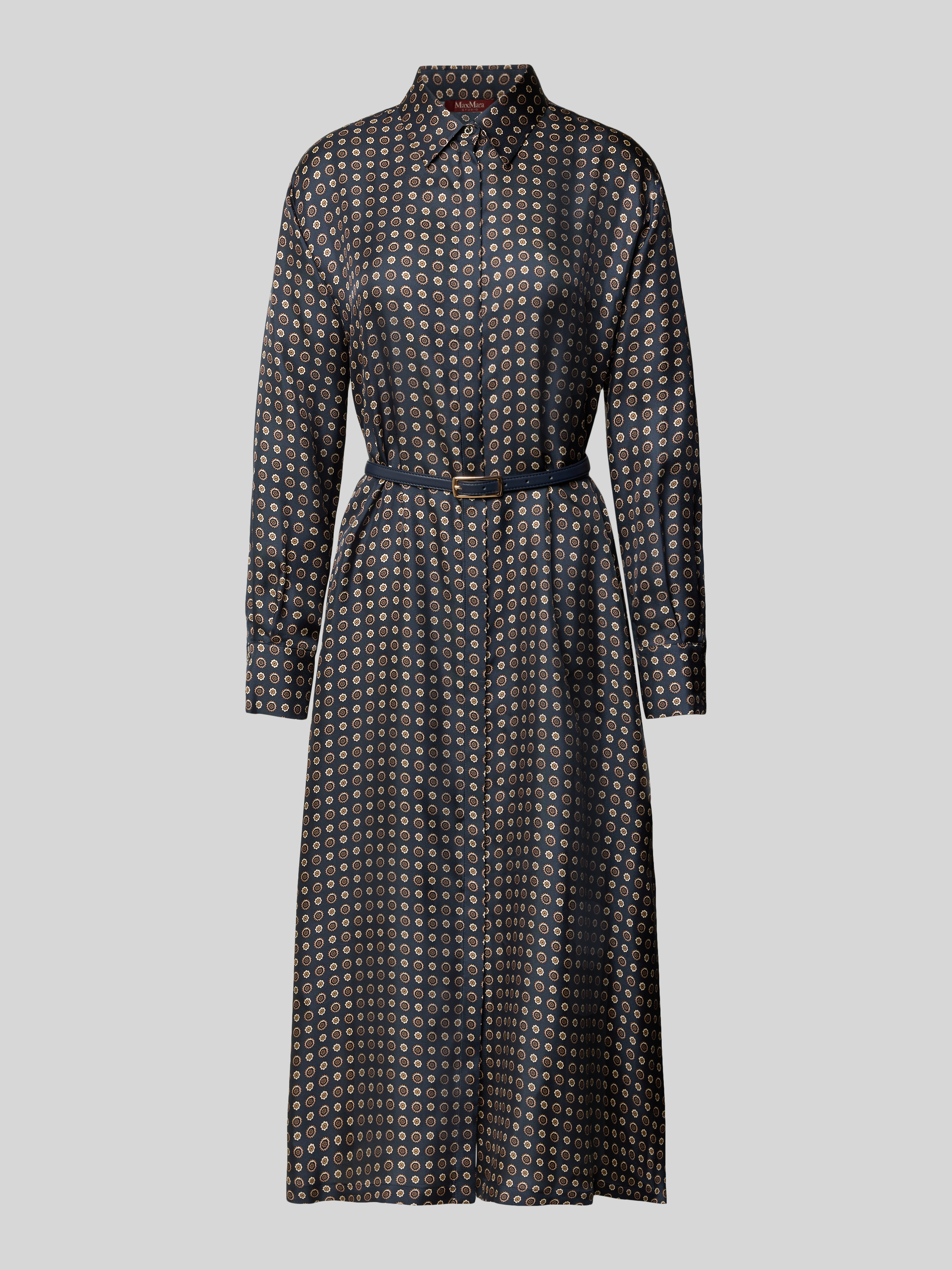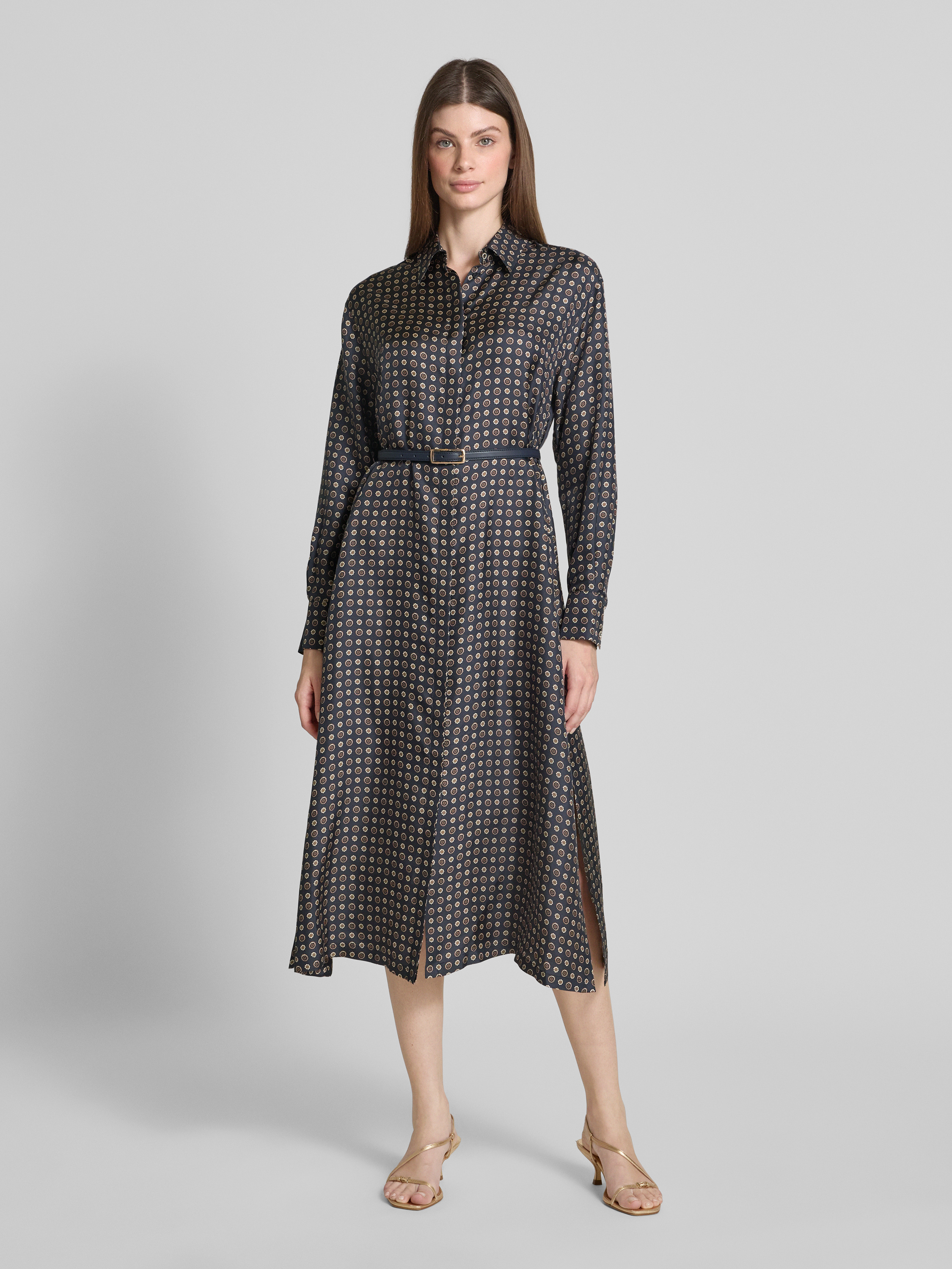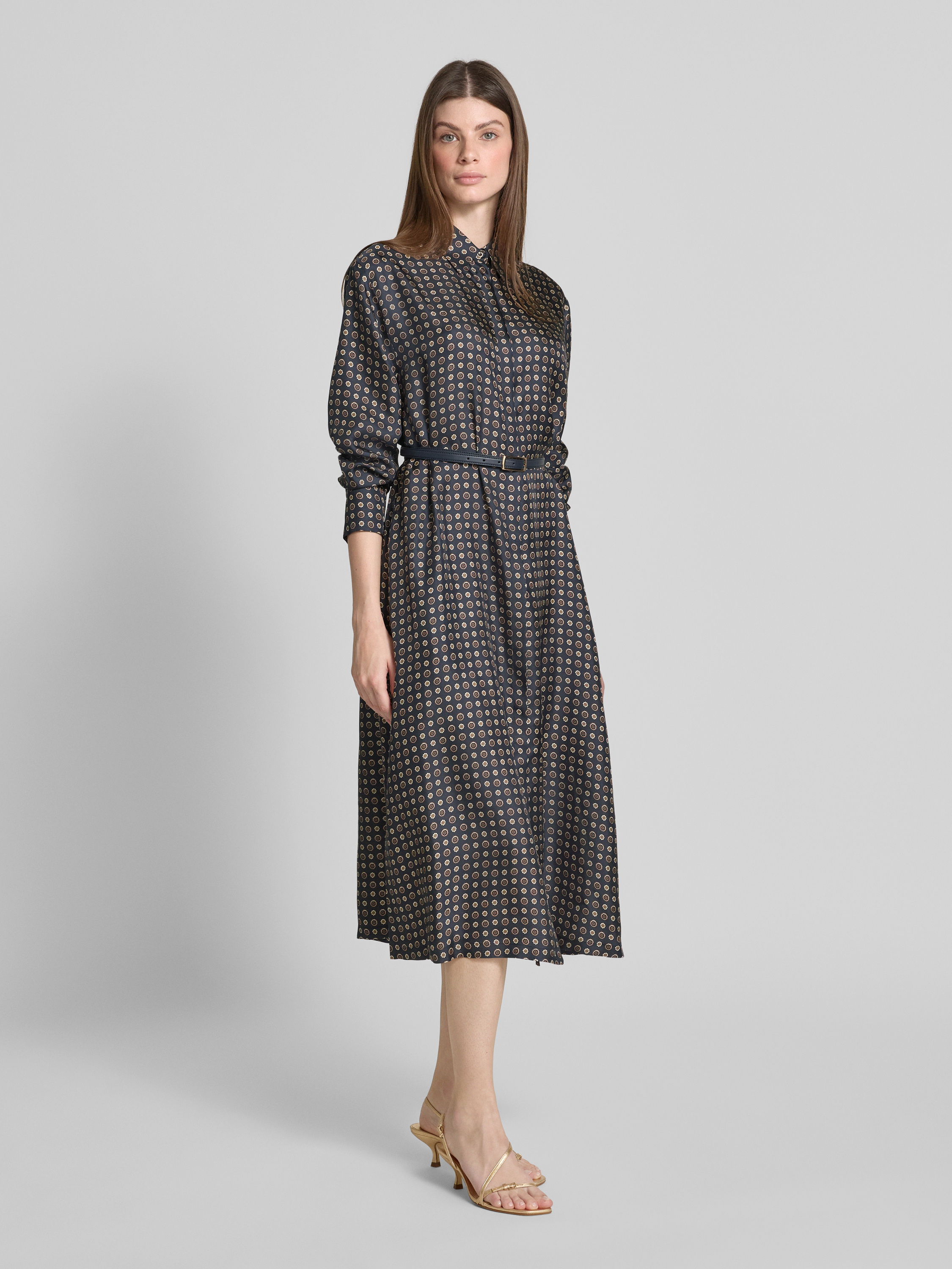 Sukienka koszulowa taliowana z czystego jedwabiu model ‘MISTER’ - granatowy