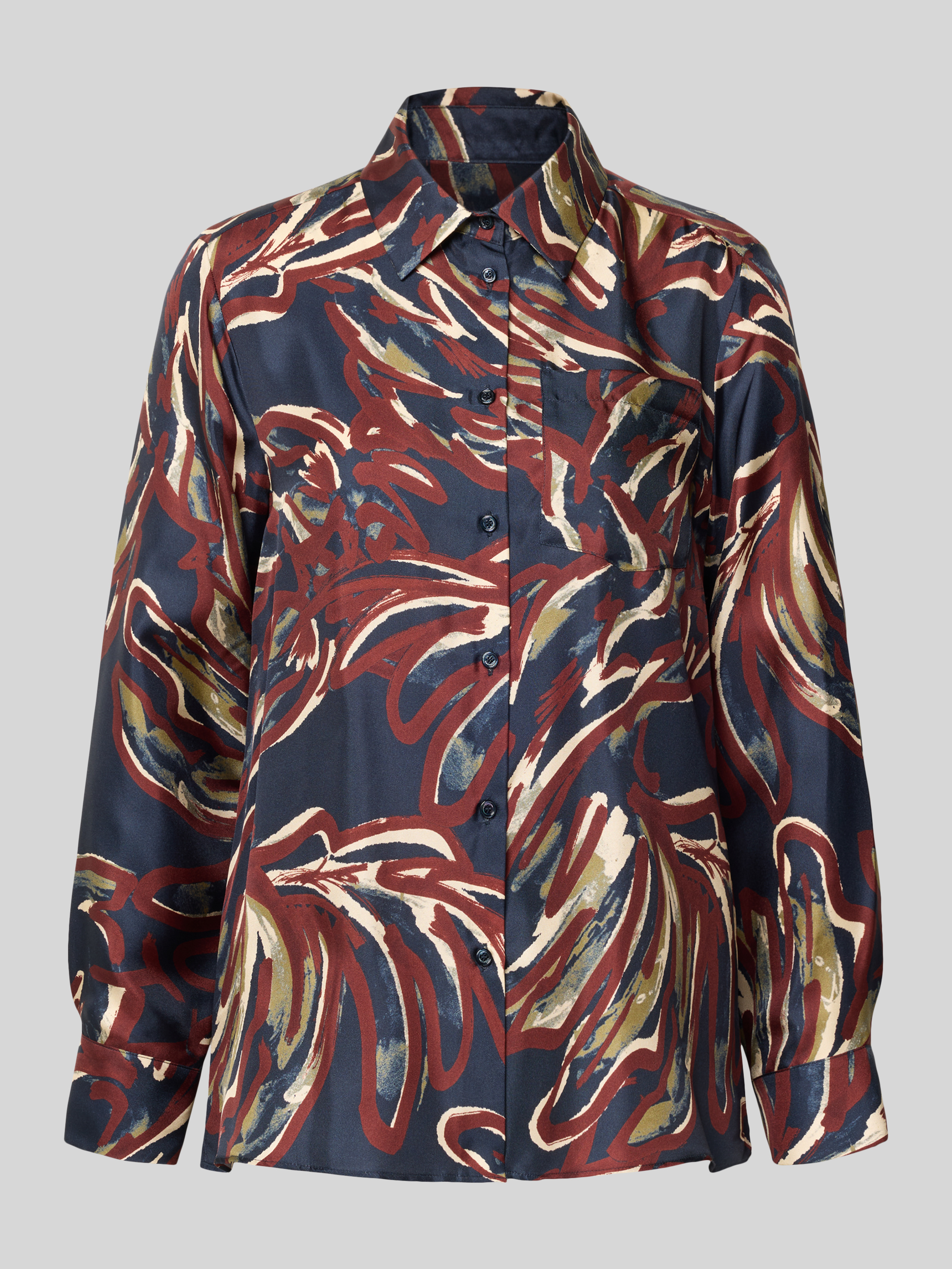 Bluzka koszulowa o kroju regular fit z czystego jedwabiu model ‘RIVE’ - granatowy