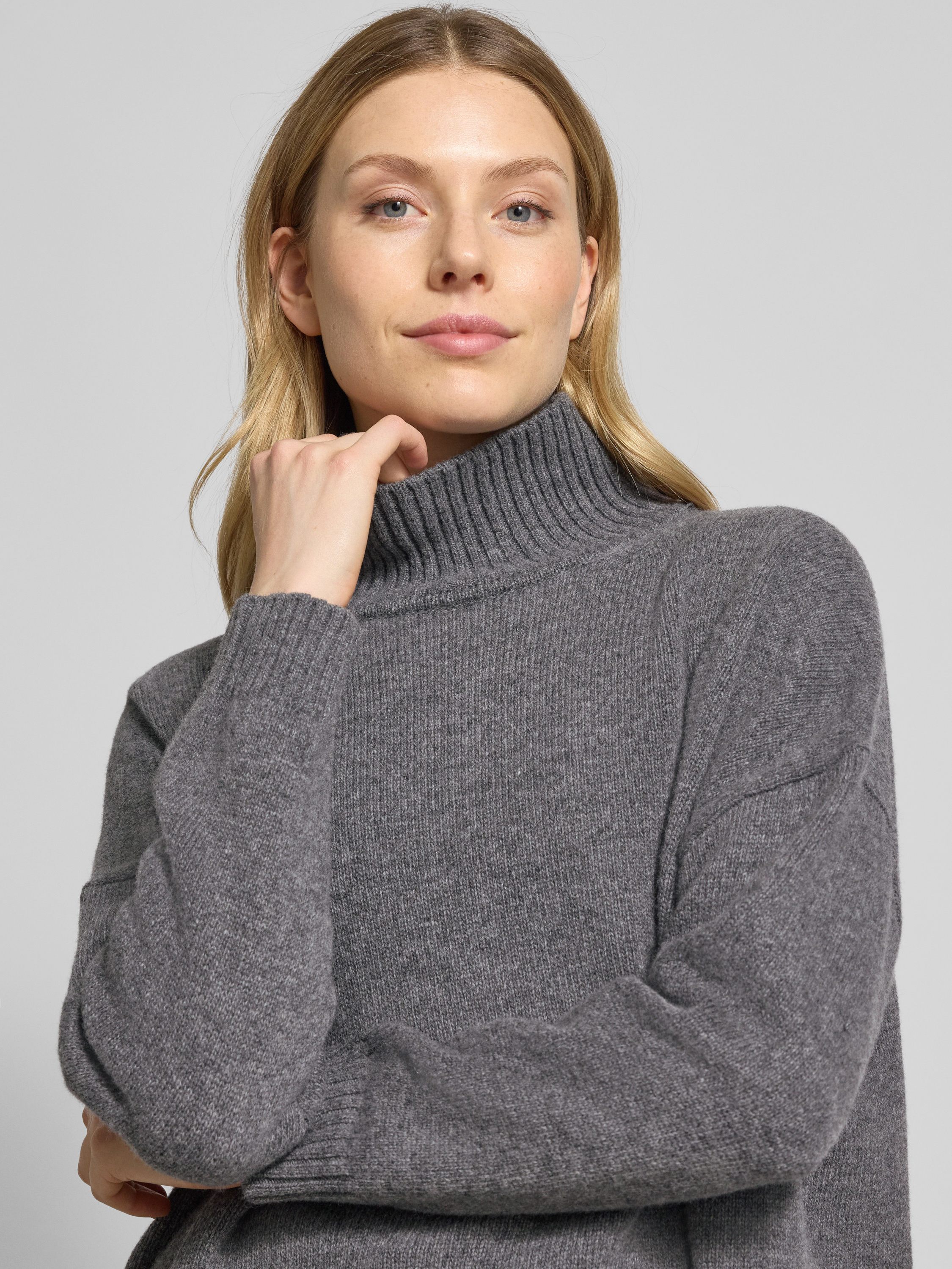Golf o kroju oversized z czystej żywej wełny model ‘BORGIA’ - antracytowy