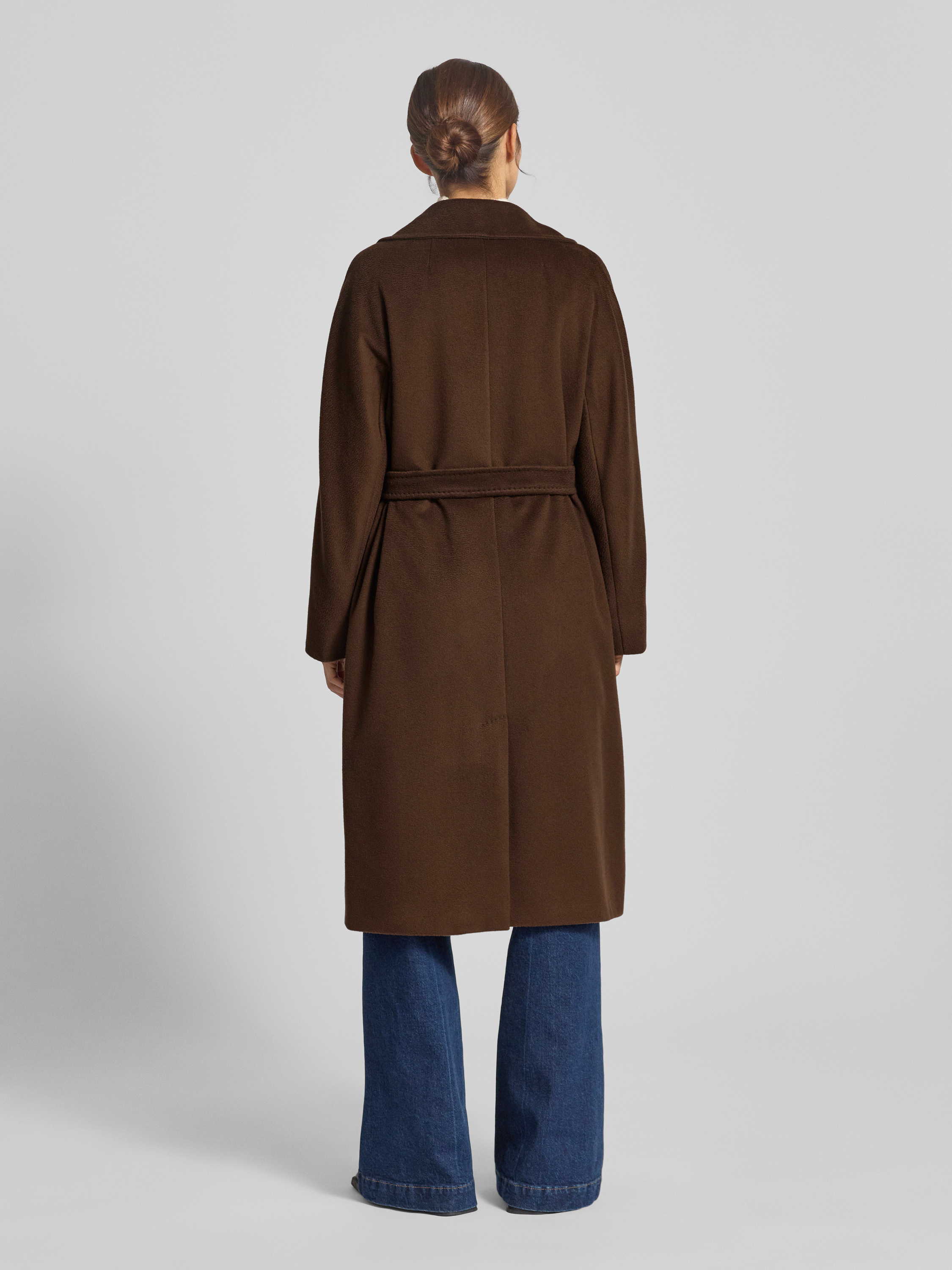 Płaszcz wełniany o kroju regular fit z czystej żywej wełny model ‘RESINA’ - czekoladowy