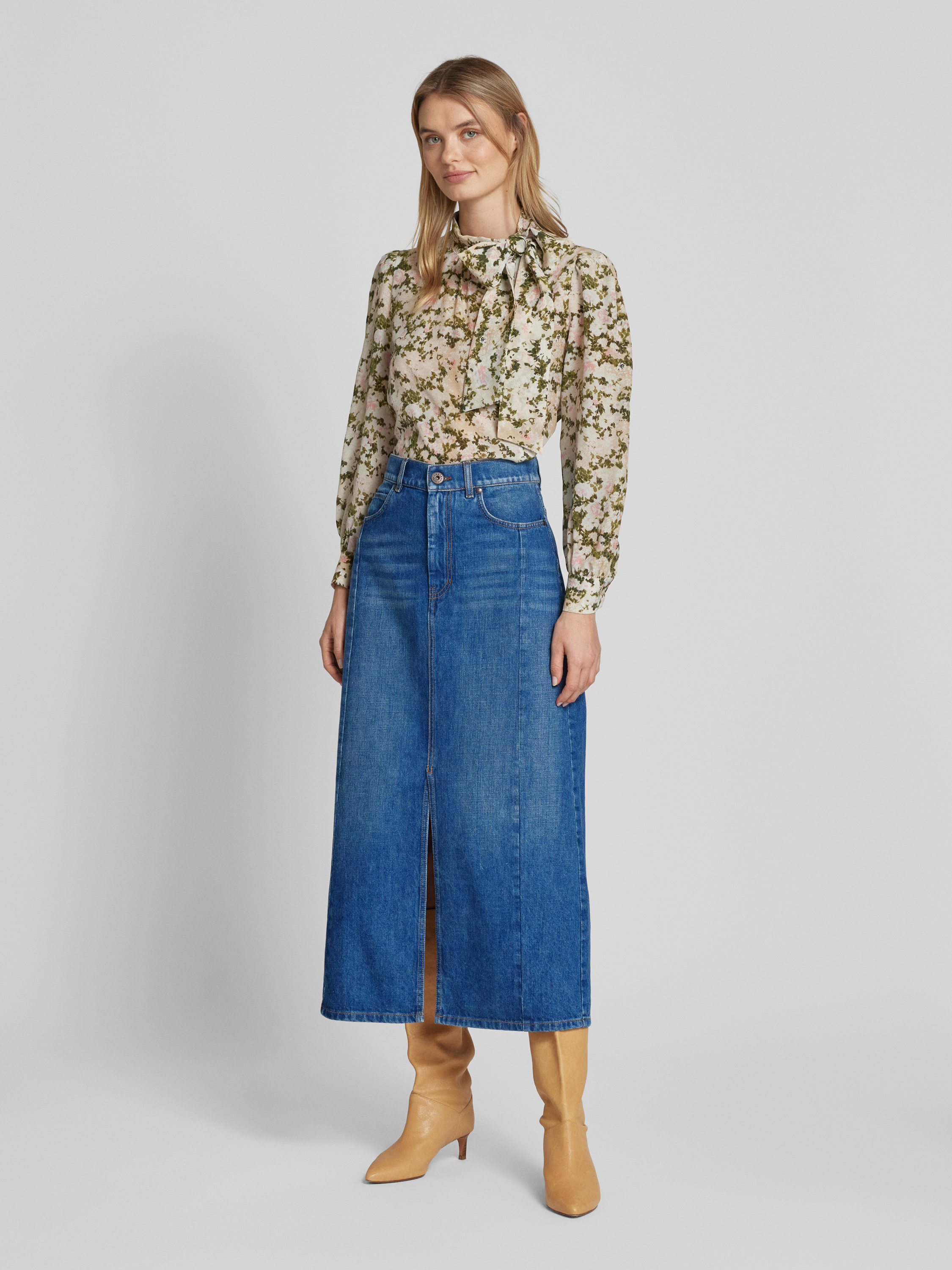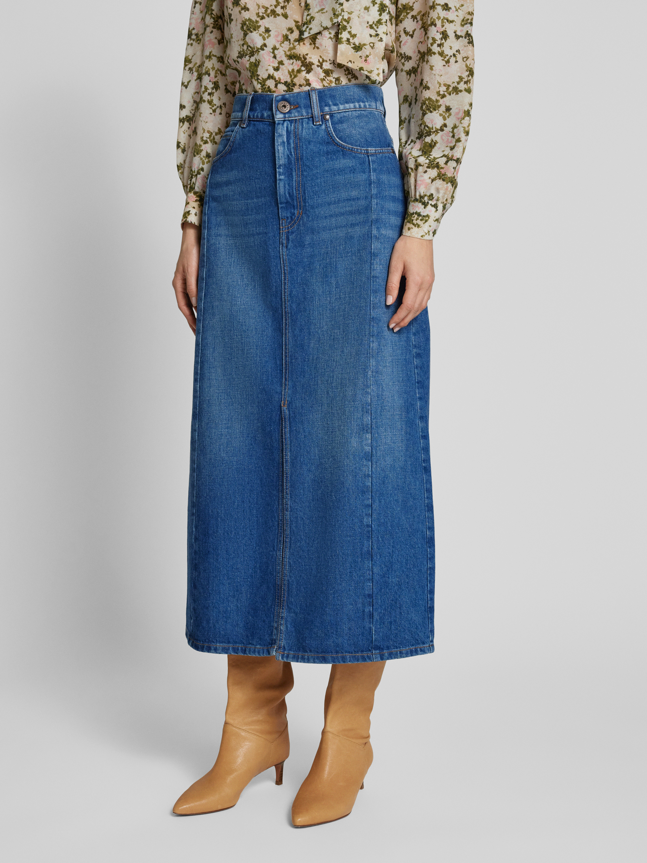 Spódnica jeansowa z 5 kieszeniami model ‘GESSO’ - niebieski