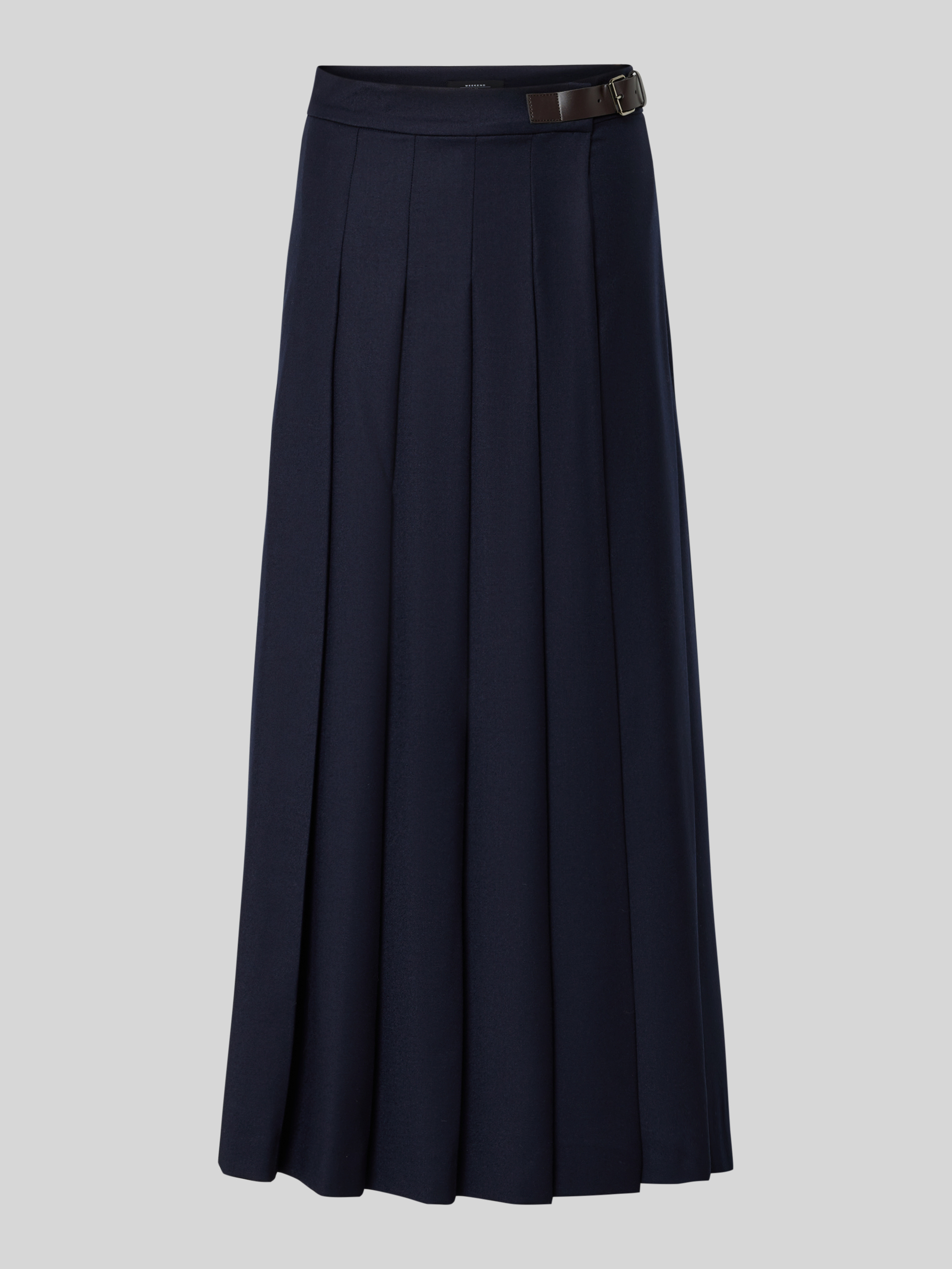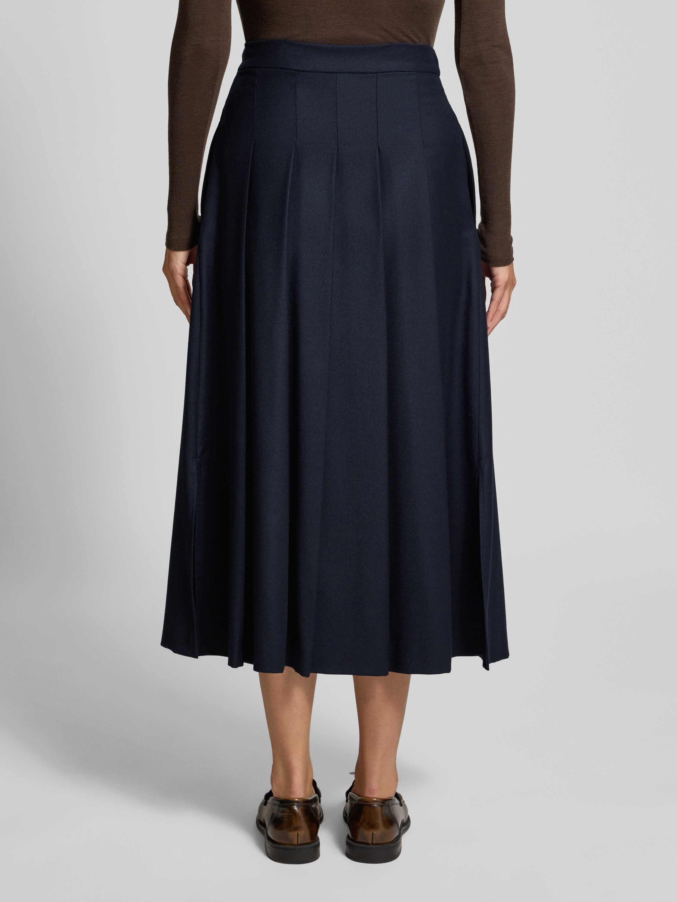 Spódnica kopertowa rozkloszowana z mieszanki żywej wełny model ‘FASTOSO’ - granatowy
