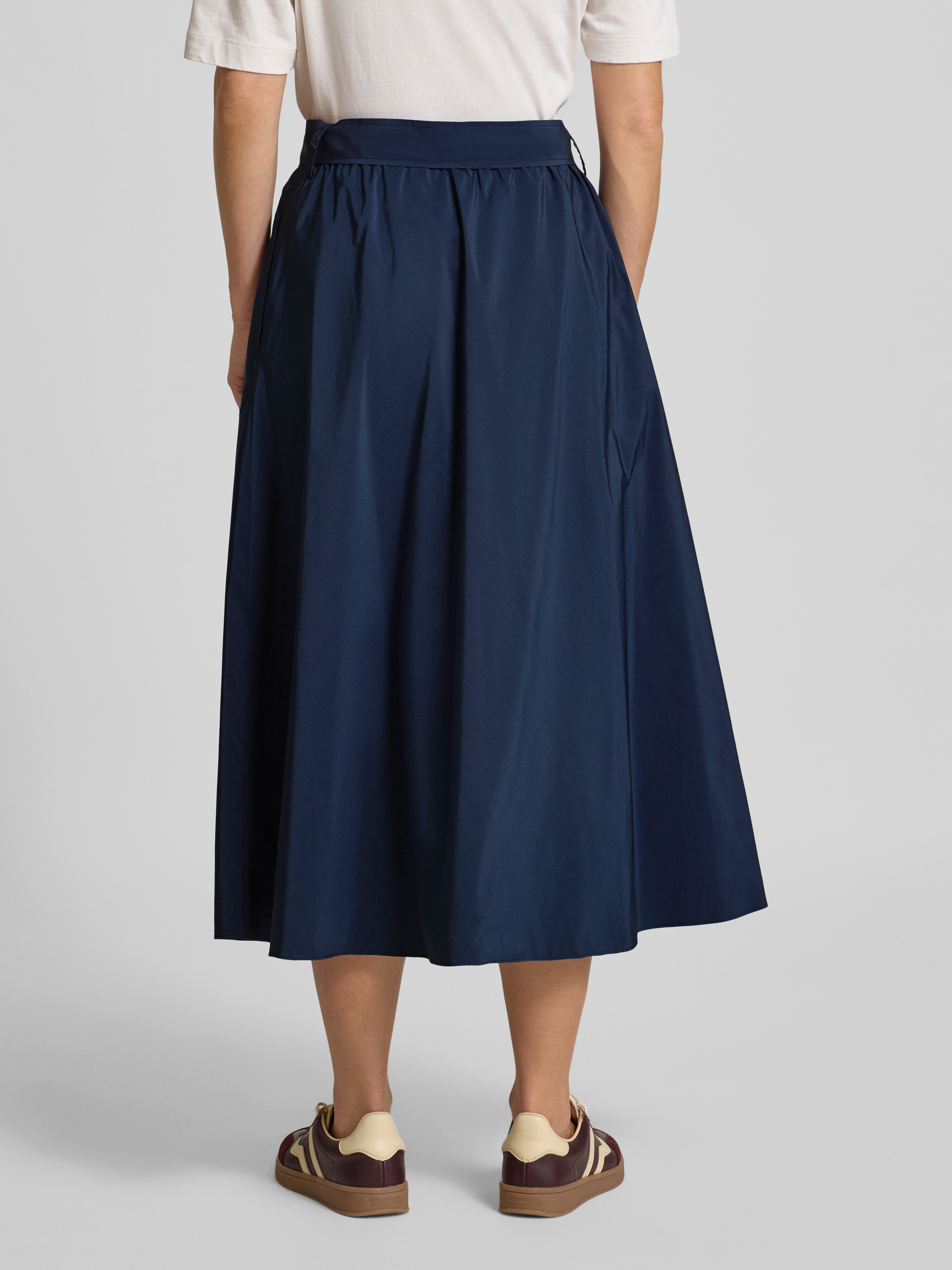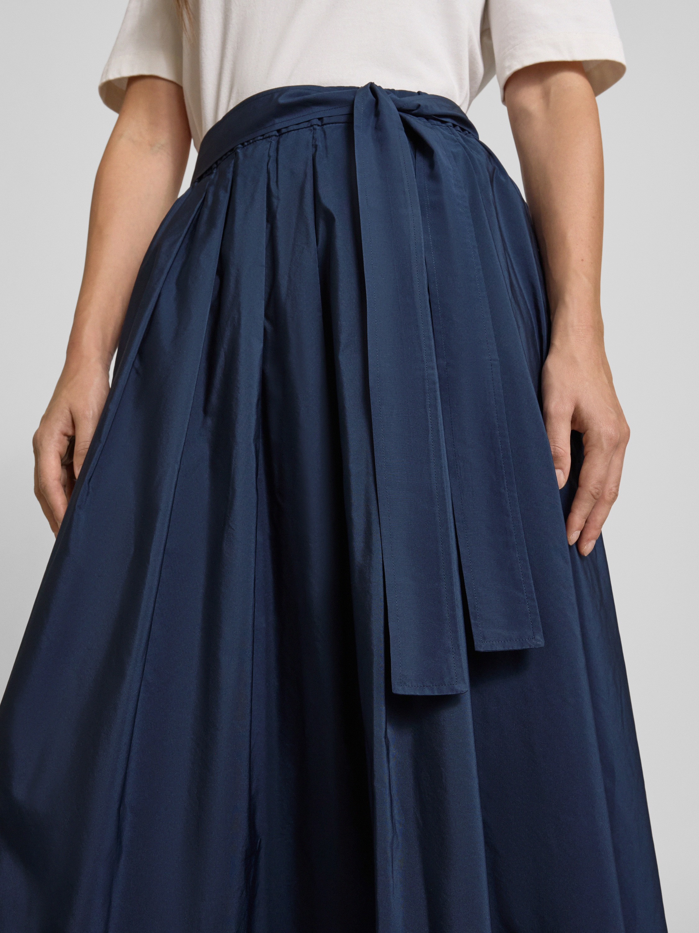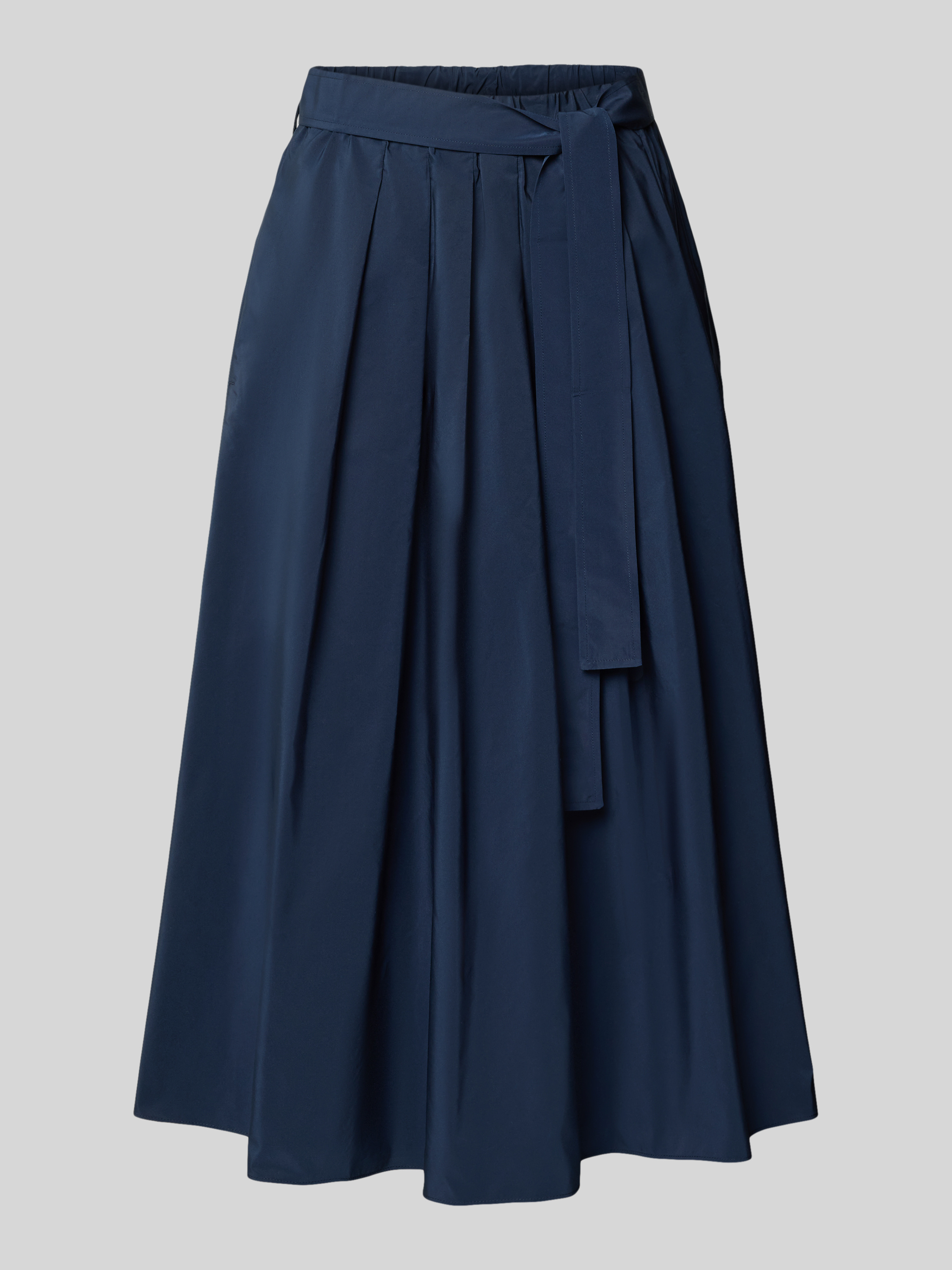 Spódnica midi rozkloszowana z paskiem w talię - granatowy