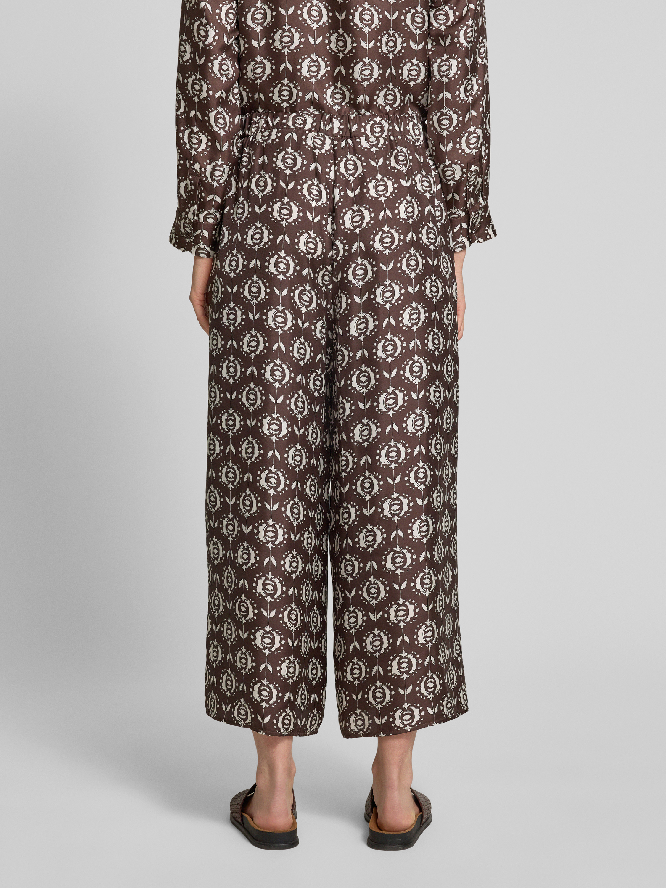 Spodnie materiałowe z czystego jedwabiu model ‘TORTONA’ - ciemnobrązowy
