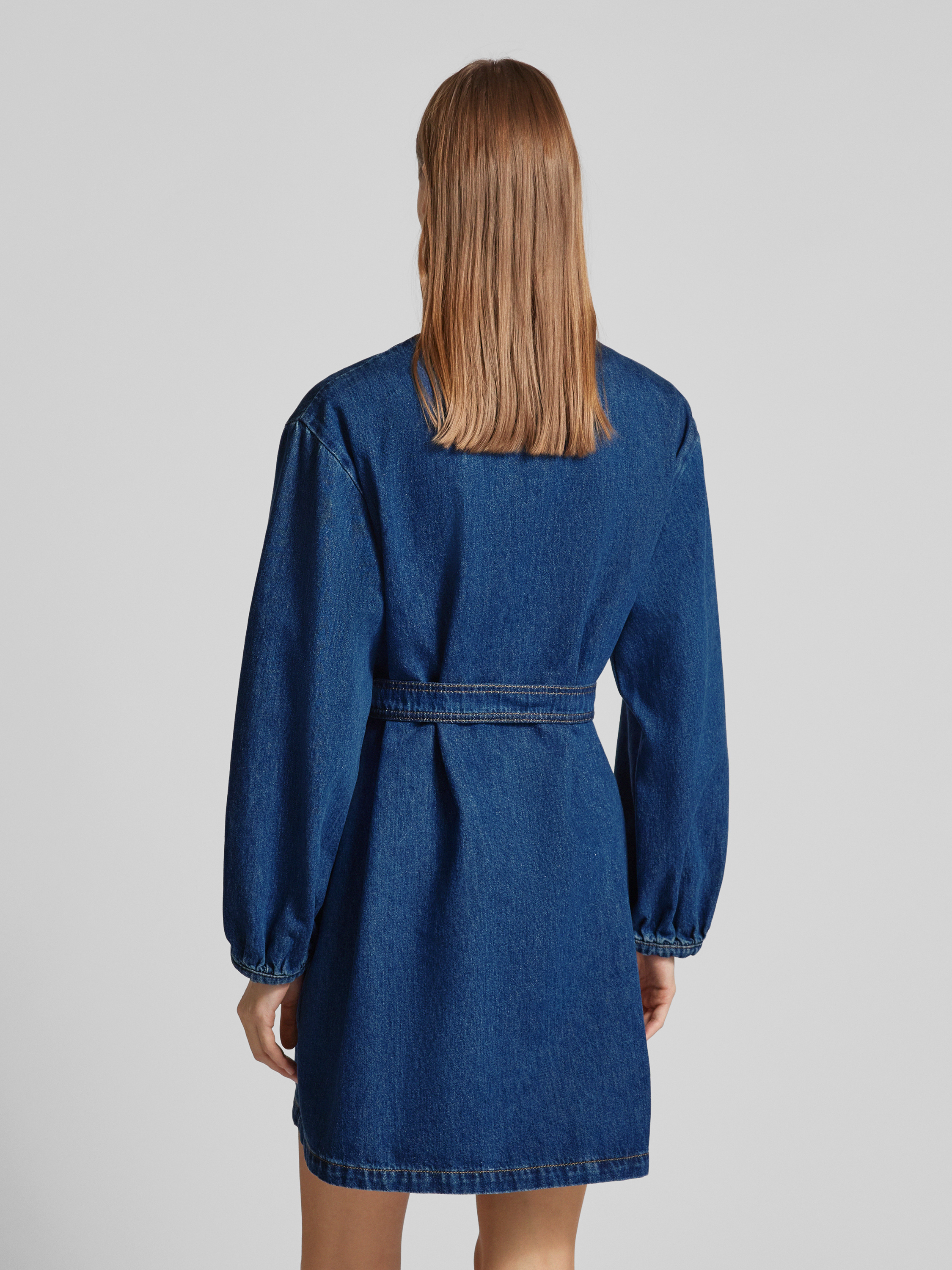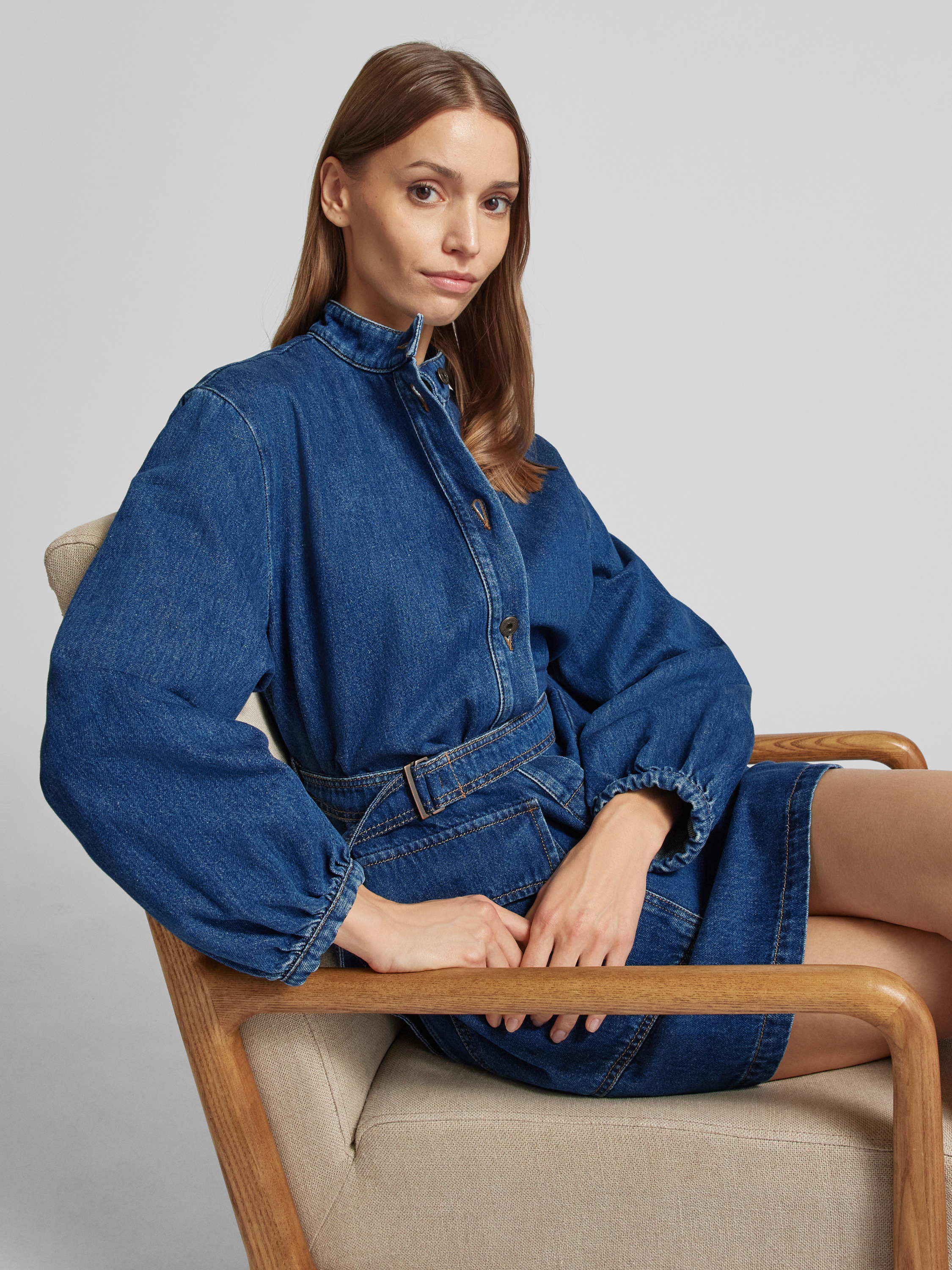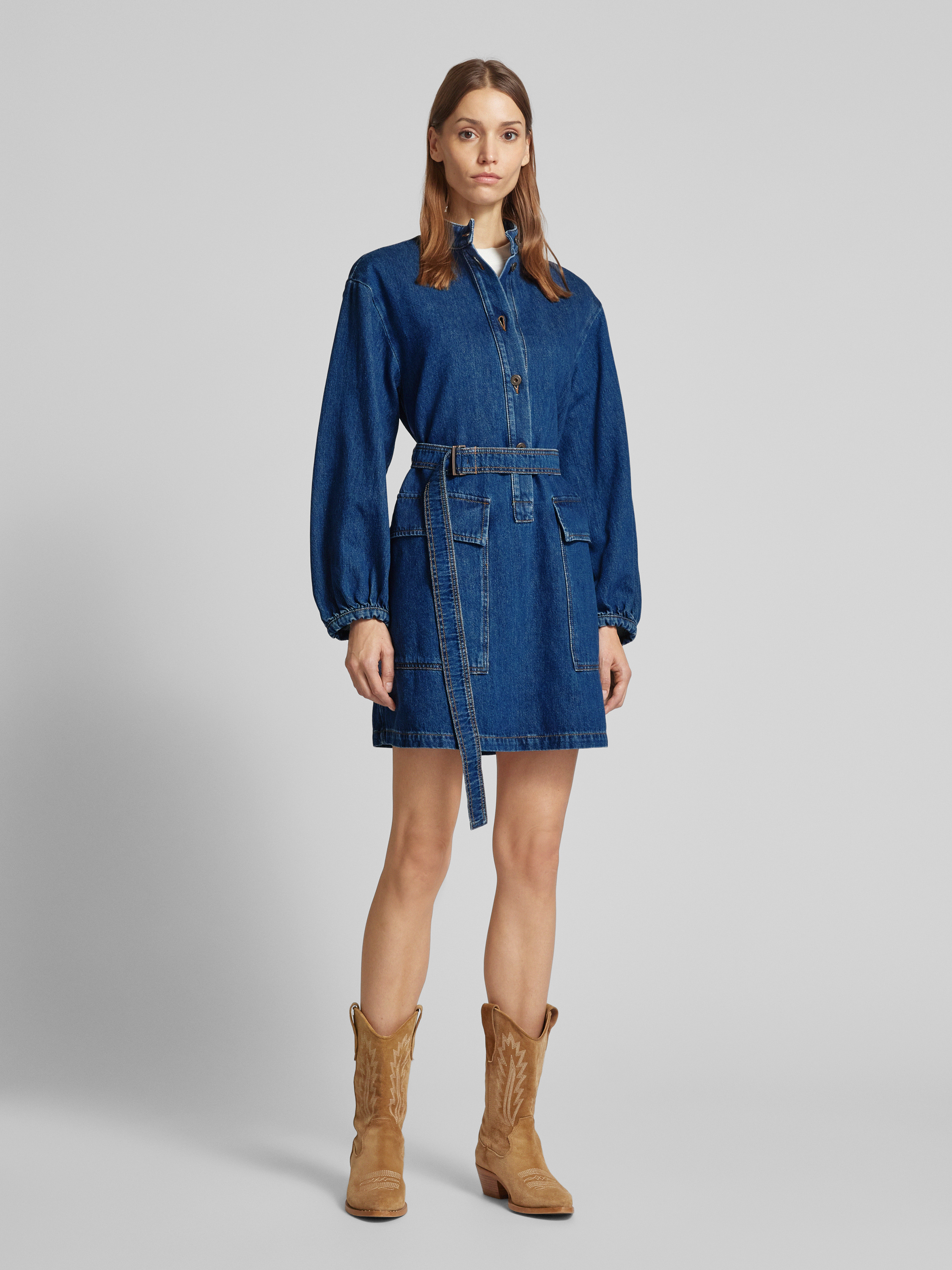 Sukienka jeansowa z paskiem w talii model ‘EURO’ - niebieski